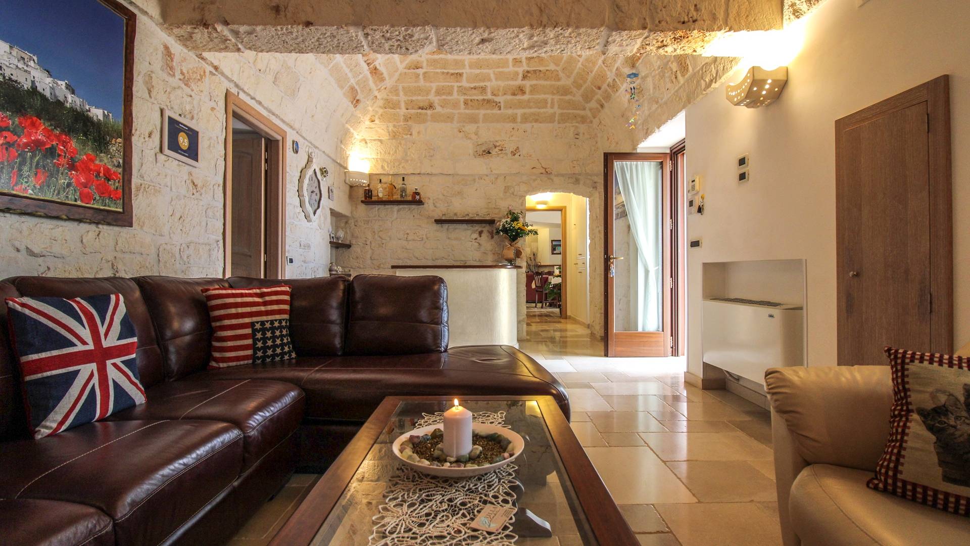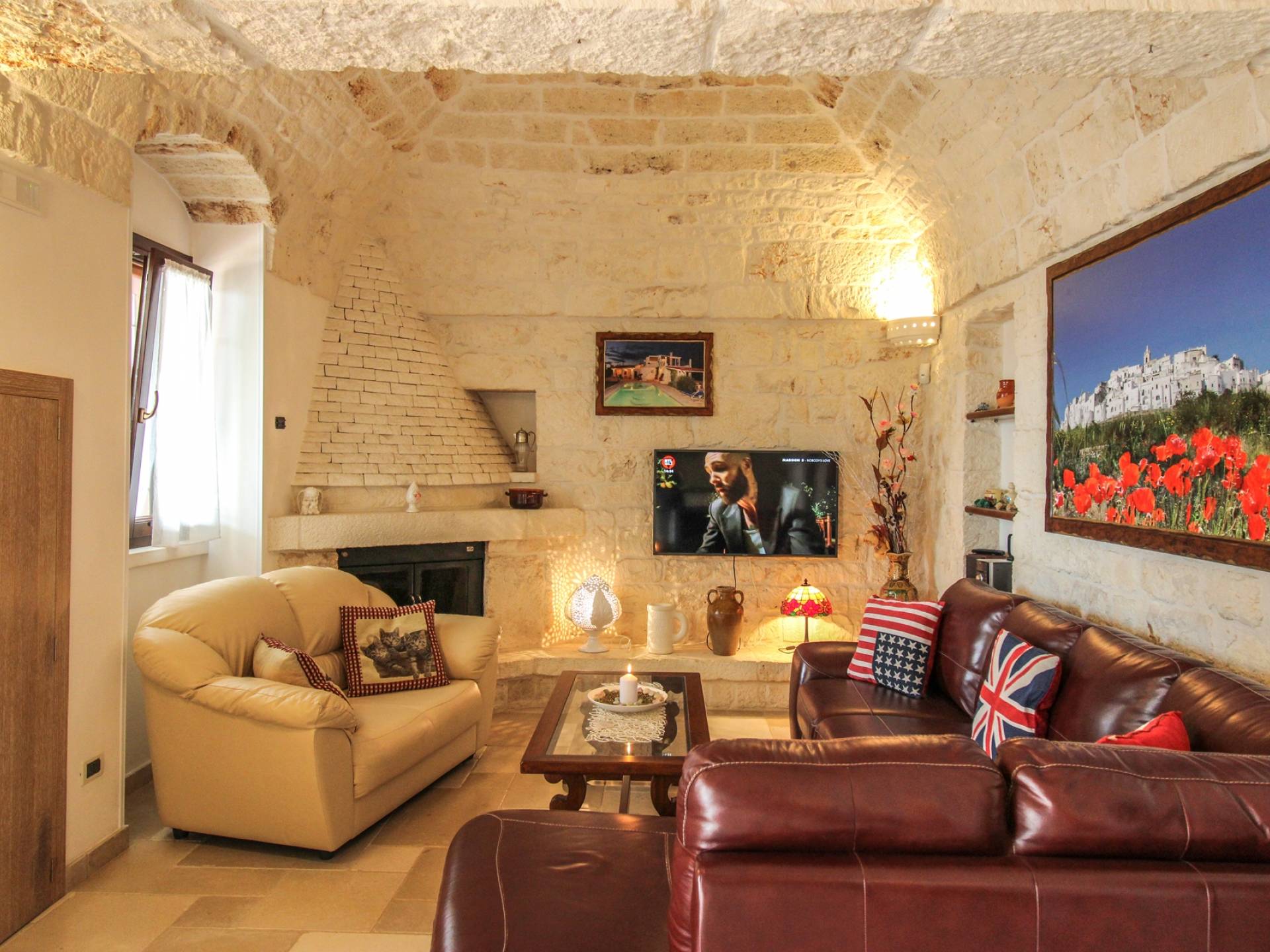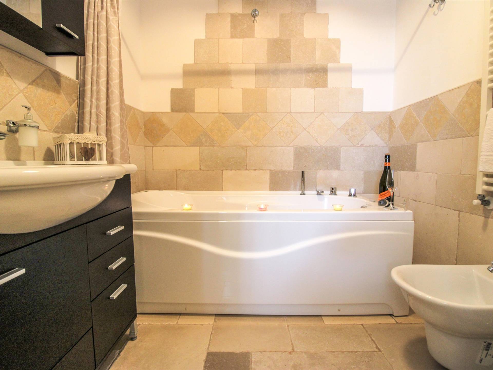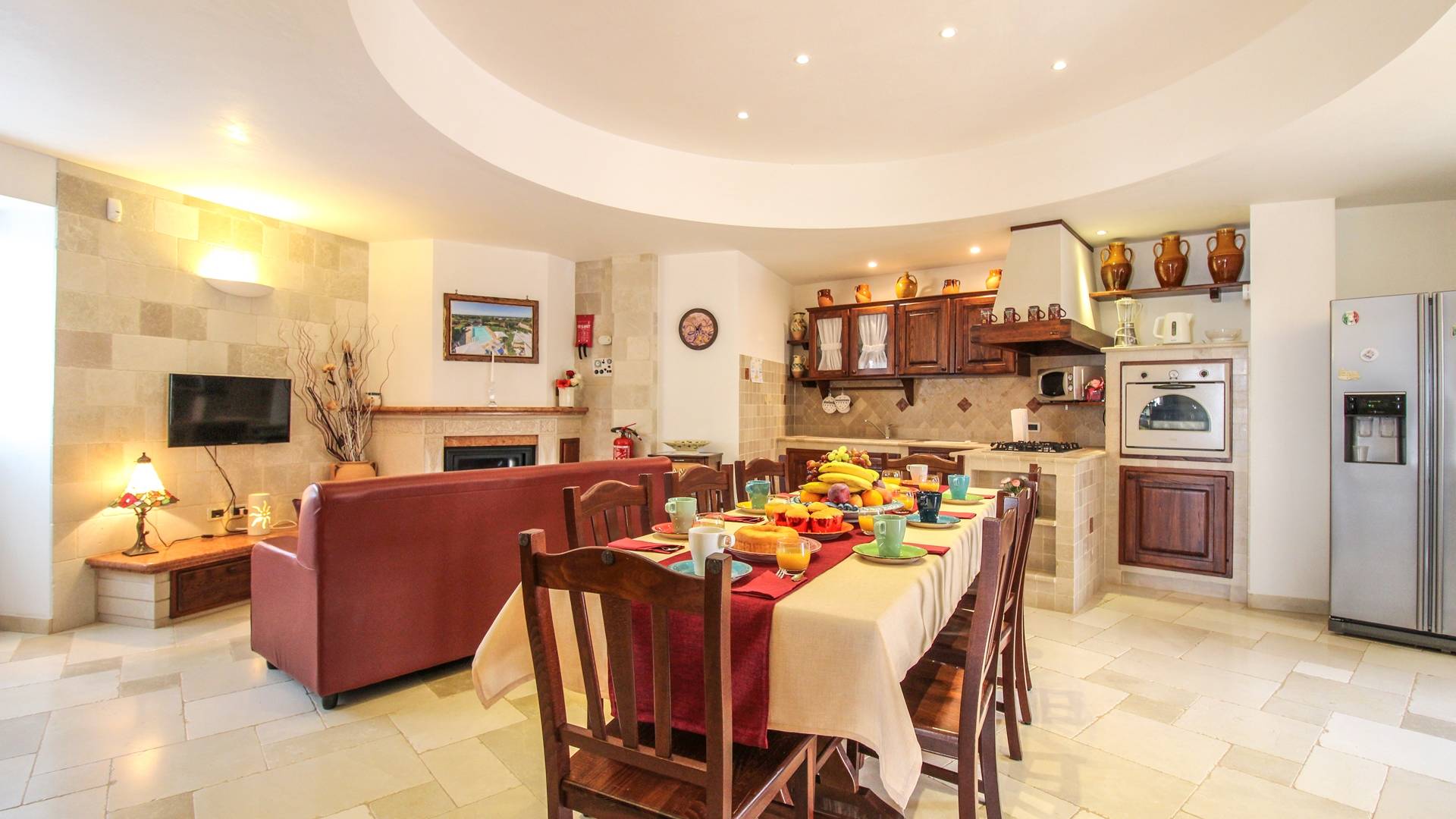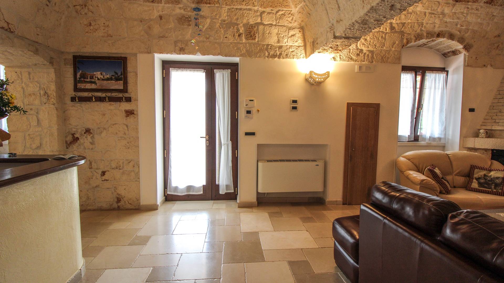 All the outdoor spaces are to be experienced, with the verdant garden in the center of which you will find the large double-bottomed swimming pool, the solarium with sun loungers and umbrellas, the patio where you can spend moments in the company and in joy, a comfortable gazebo with a low table, sofas, and armchairs. Inside, however, you will be welcomed by a charming living room with vaulted stone walls and ceilings, equipped with a fireplace and a large leather corner sofa. You will feel the embrace of one of the typical houses in the area. The large space also reserves a pleasant corner bar.