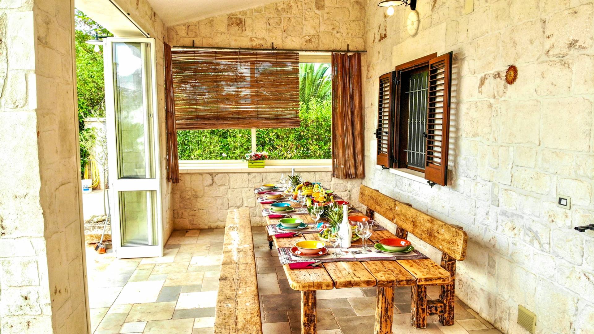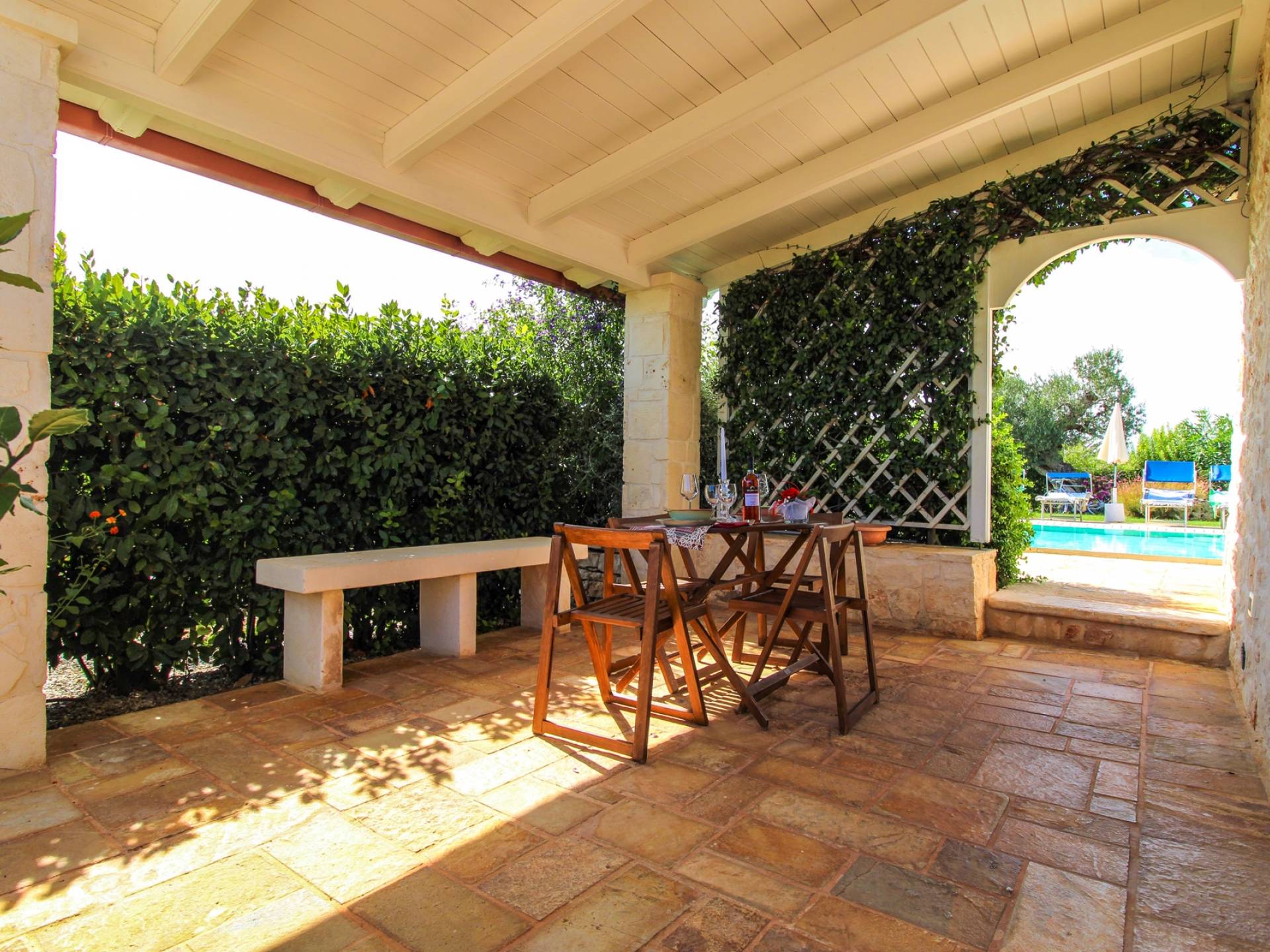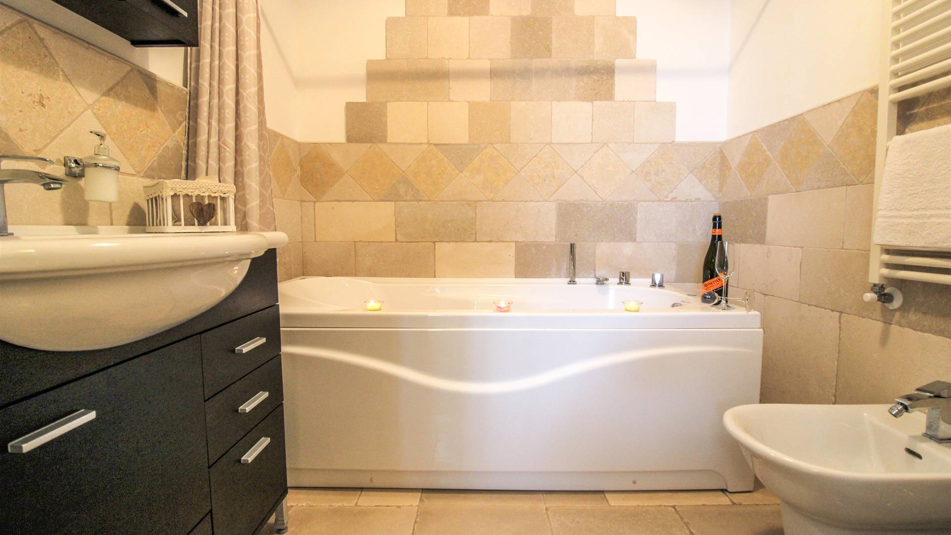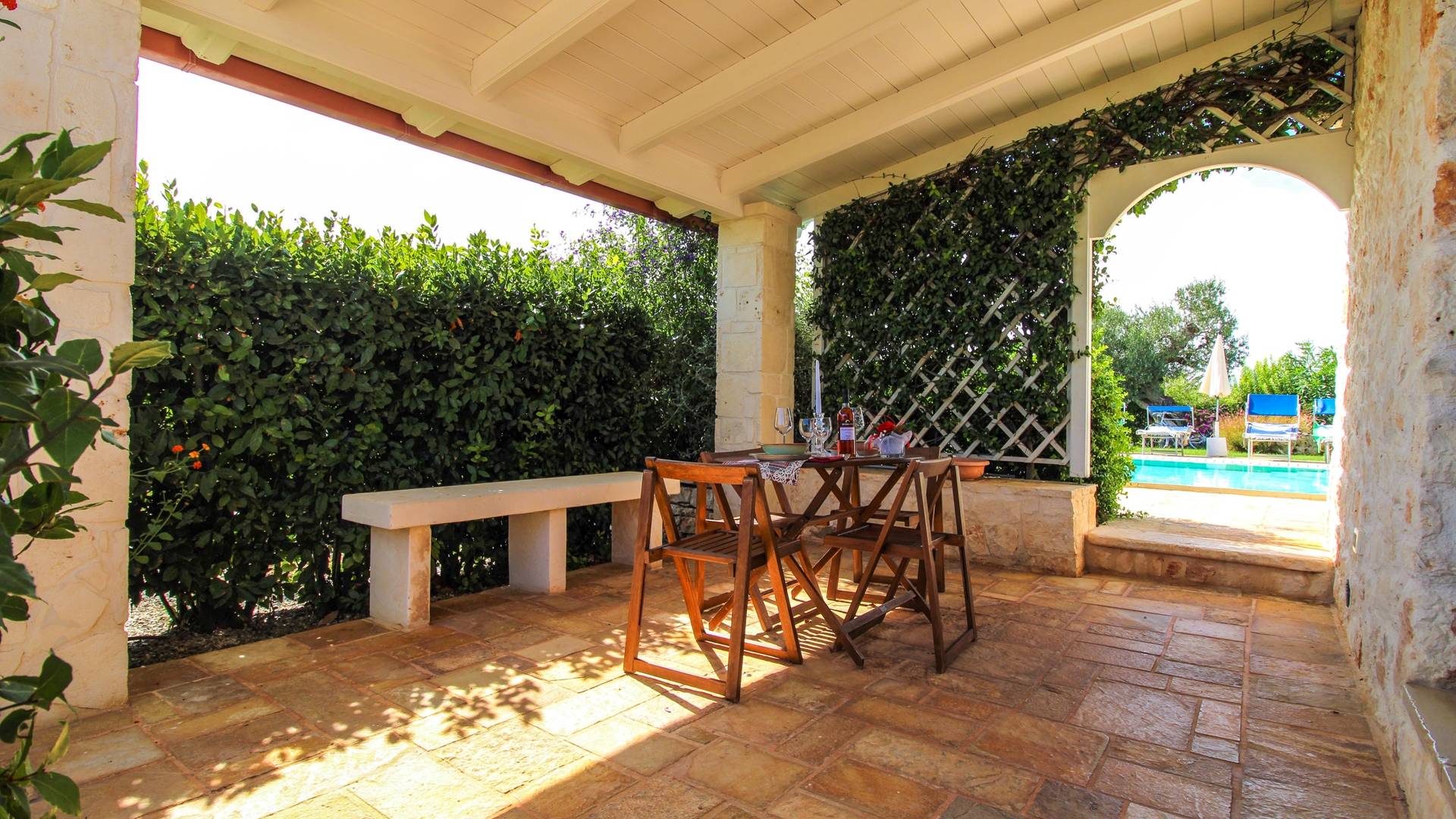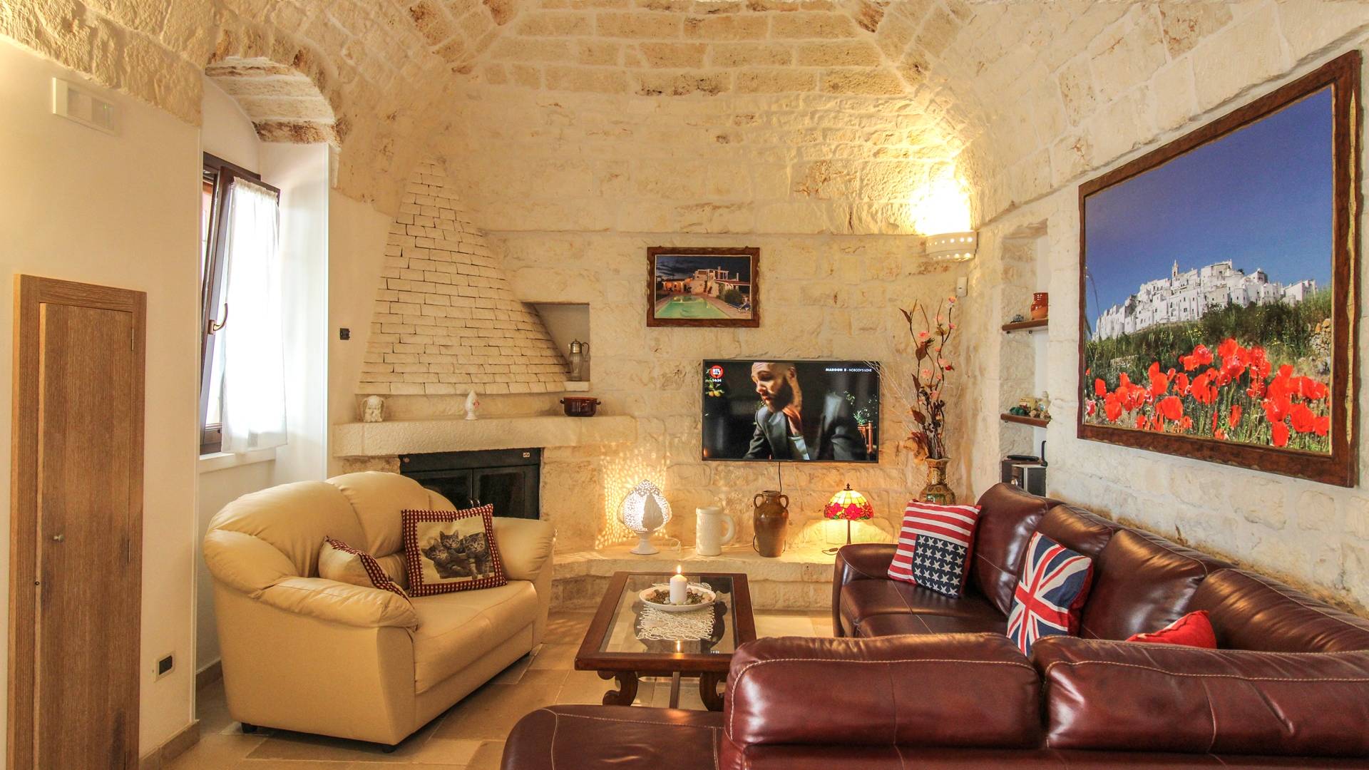 All the outdoor spaces are to be experienced, with the verdant garden in the center of which you will find the large double-bottomed swimming pool, the solarium with sun loungers and umbrellas, the patio where you can spend moments in the company and in joy, a comfortable gazebo with a low table, sofas, and armchairs. Inside, however, you will be welcomed by a charming living room with vaulted stone walls and ceilings, equipped with a fireplace and a large leather corner sofa. You will feel the embrace of one of the typical houses in the area. The large space also reserves a pleasant corner bar.