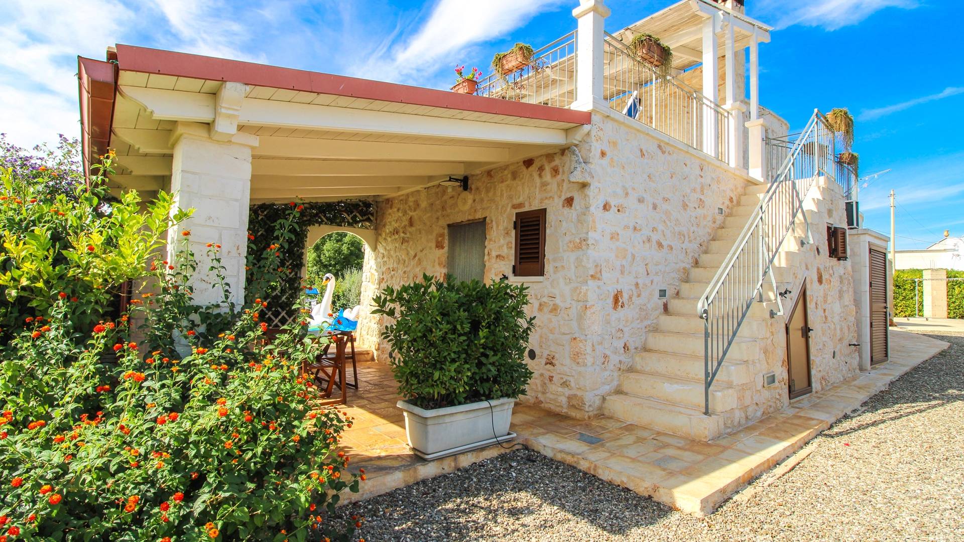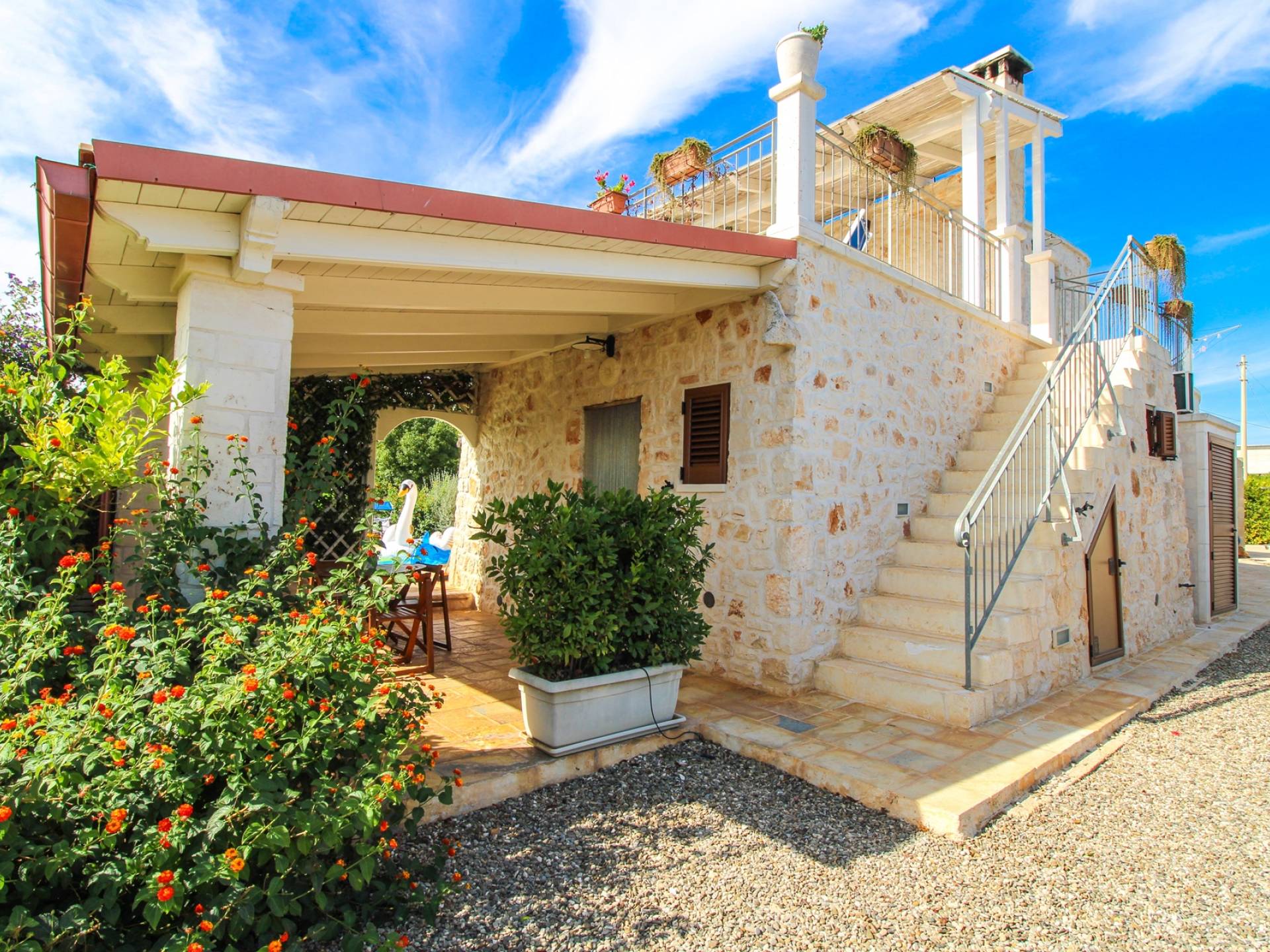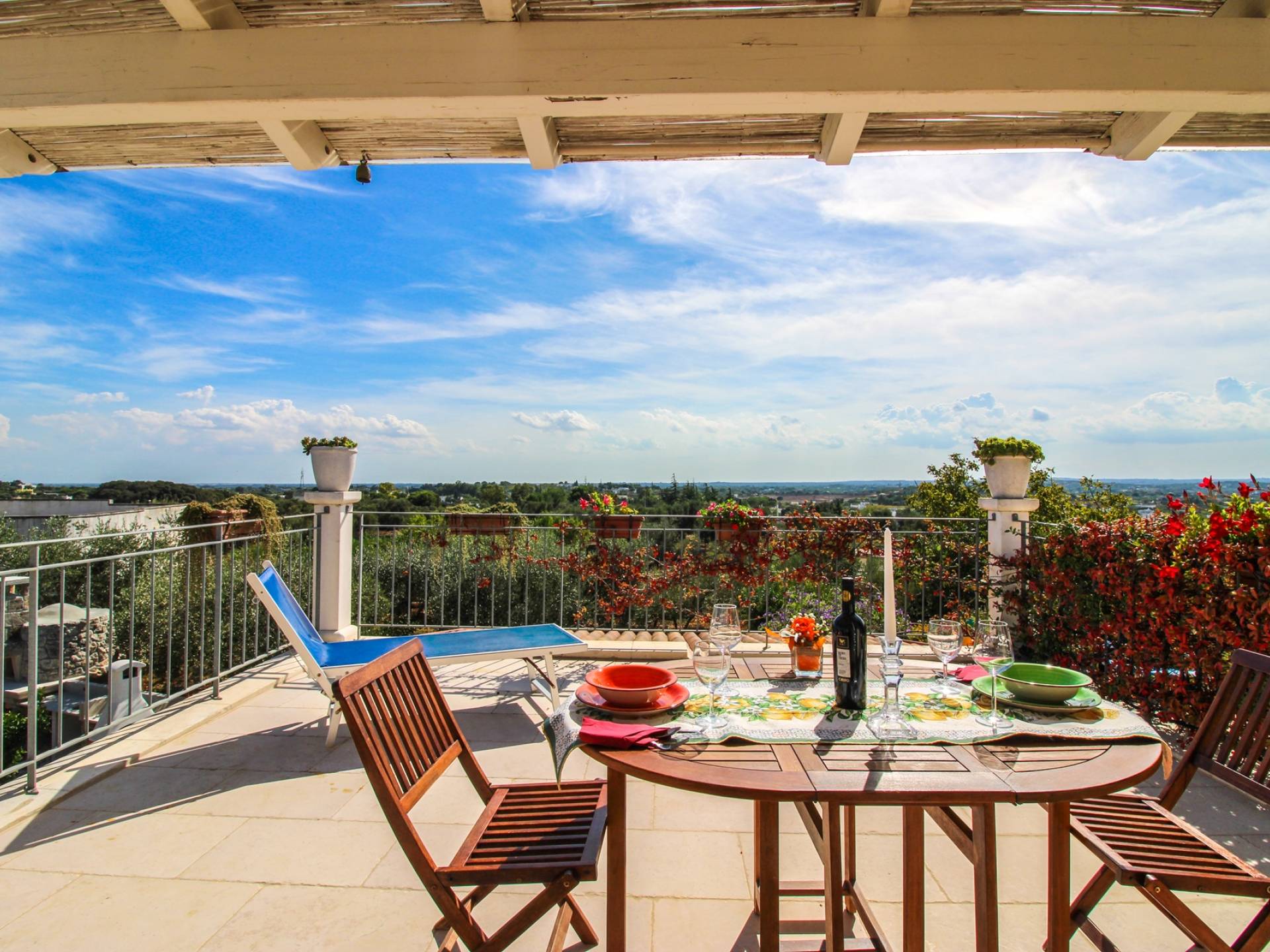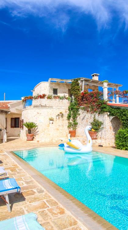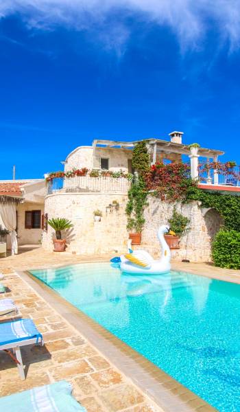 A stone's throw from the center of the white city of Ostuni, and a few kilometers from the Costa Merlata, Villa Taralla is a comfortable home where the blue of the sky, the green of the olive trees, and the red of the rich land of Puglia meet. Equipped with 4 bedrooms and 4 bathrooms, it can accommodate up to 8 people.