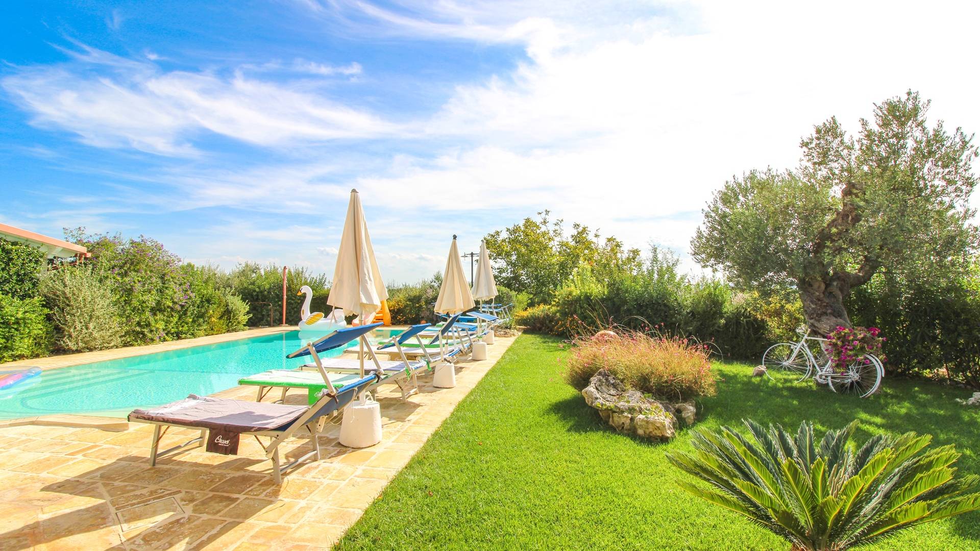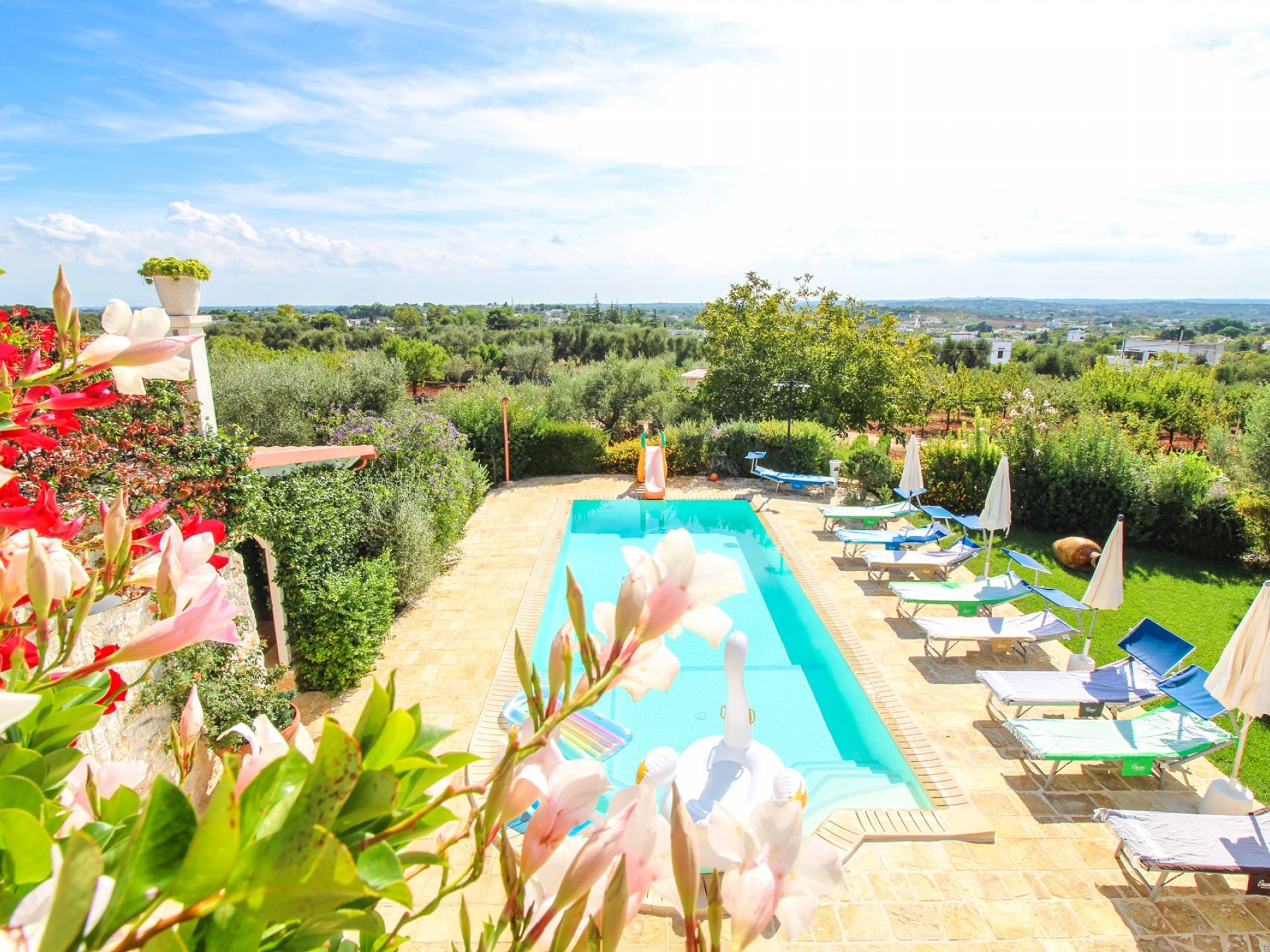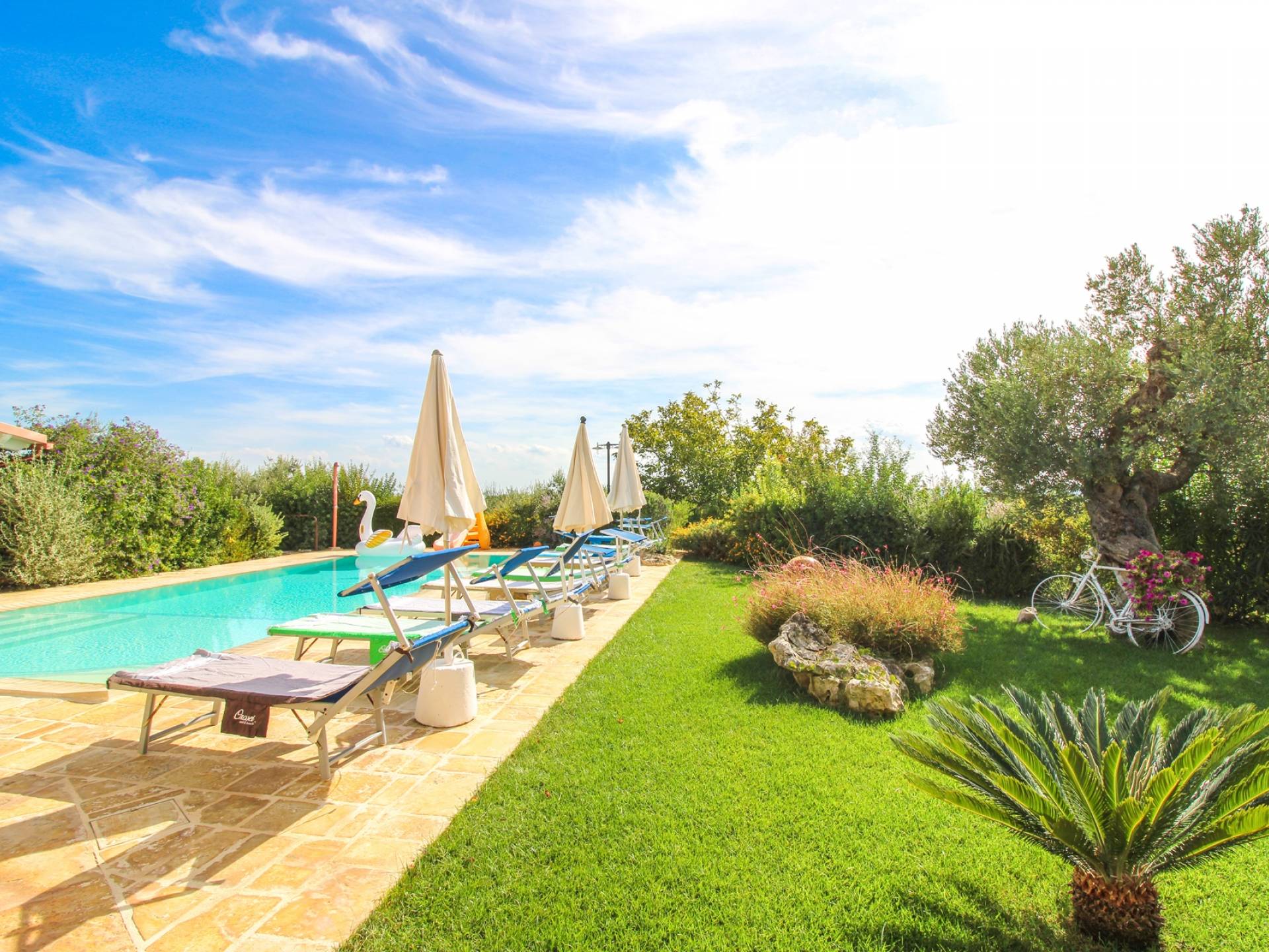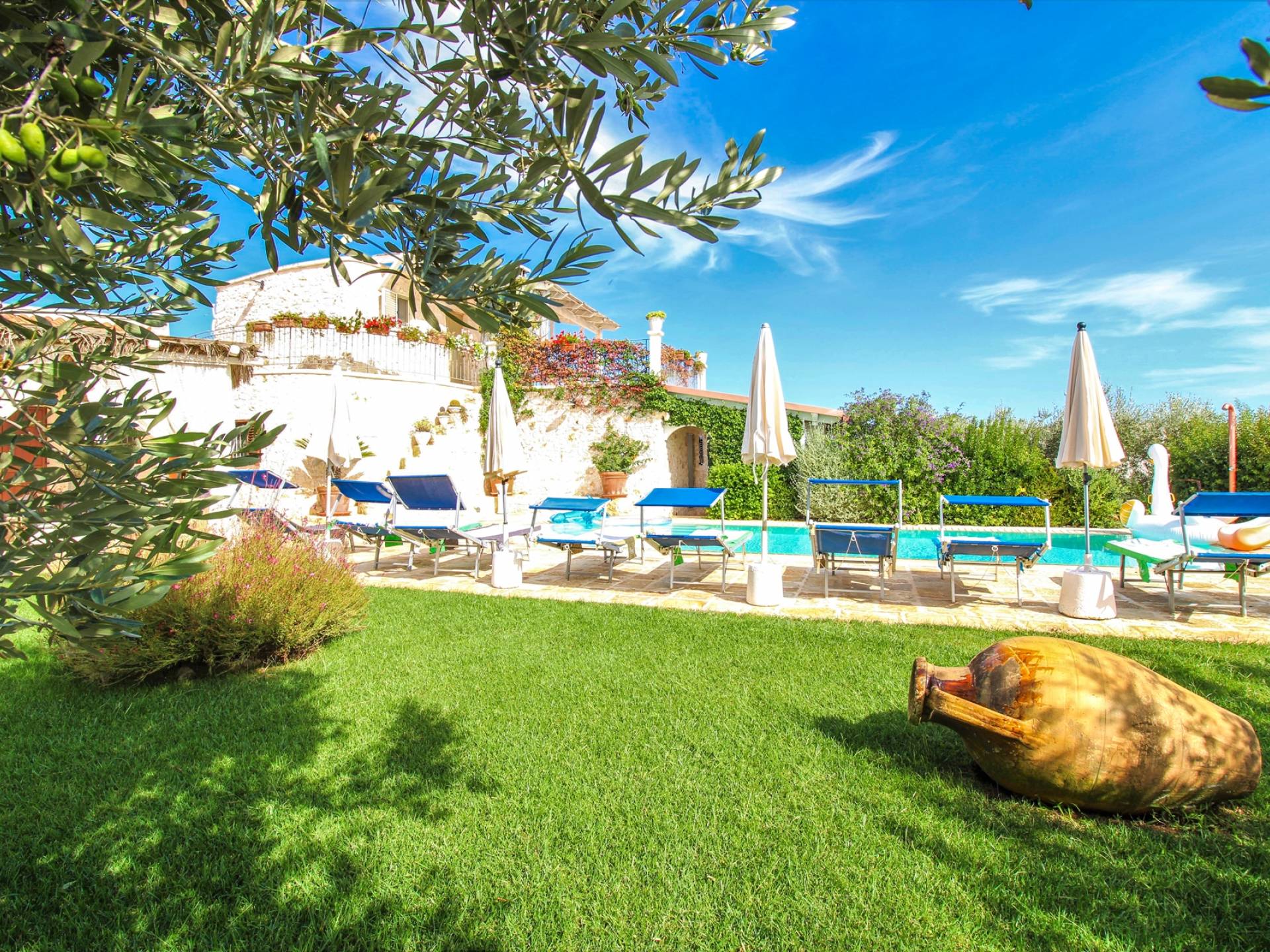 In the surroundings, you will find several beaches. Among the best known there is the free one of Plaia, the bay of Camerini but also the Costa Merlata, Cala Diana, and Torre Pozzelle. The Torre Guaceto nature reserve, for lovers of the environment, is only 17 kilometers away. The center of Ostuni is about one kilometer away.