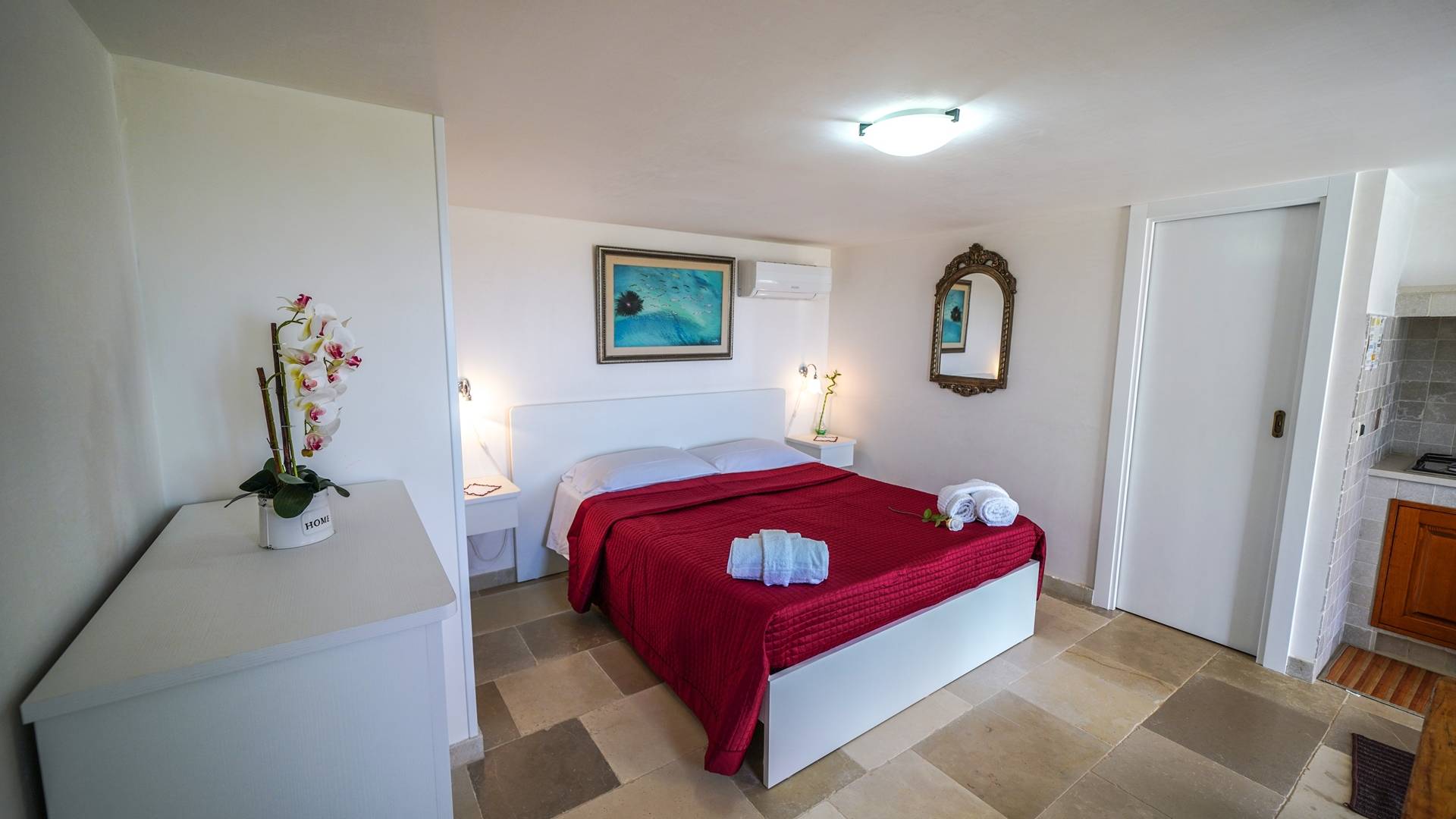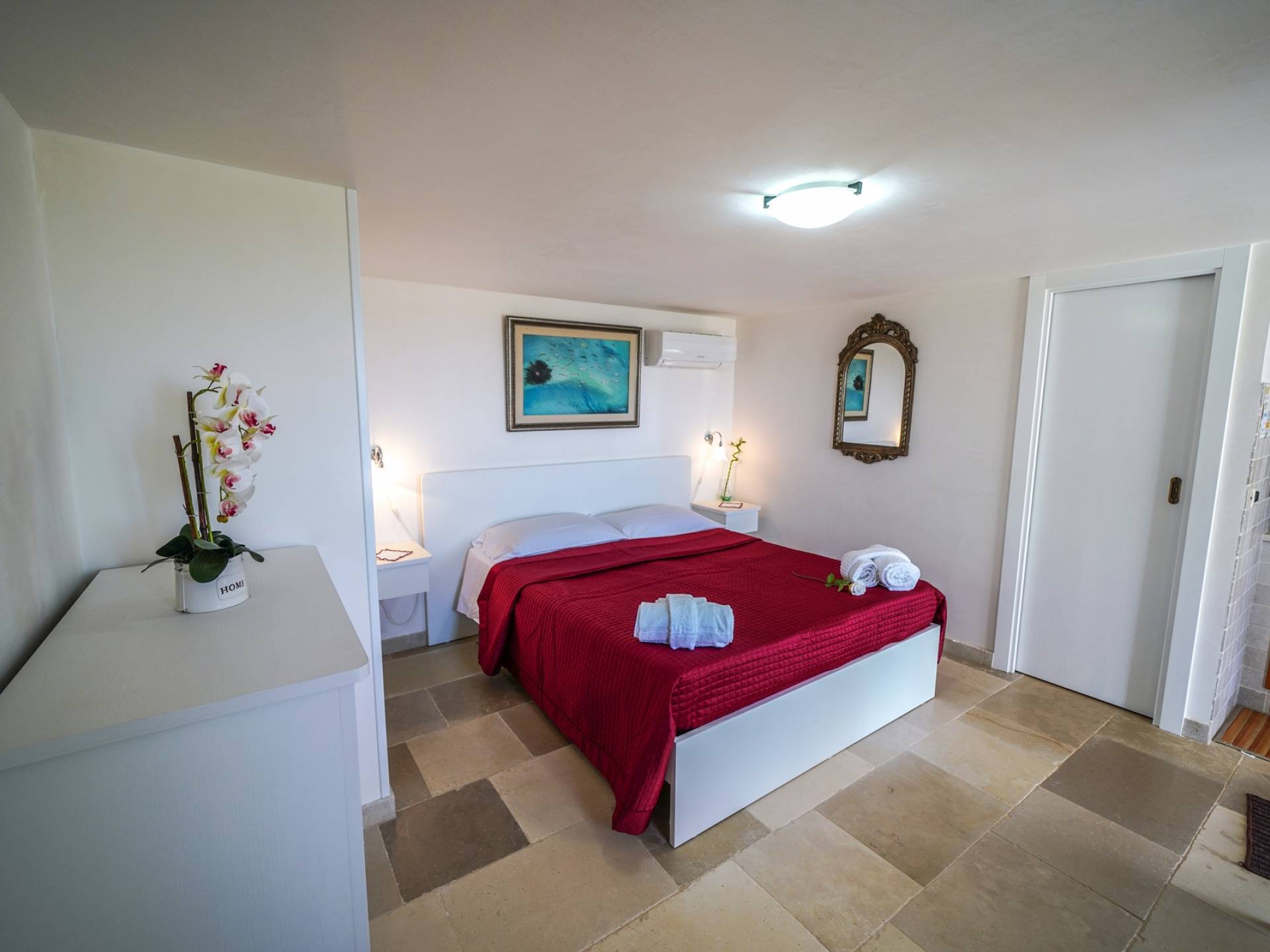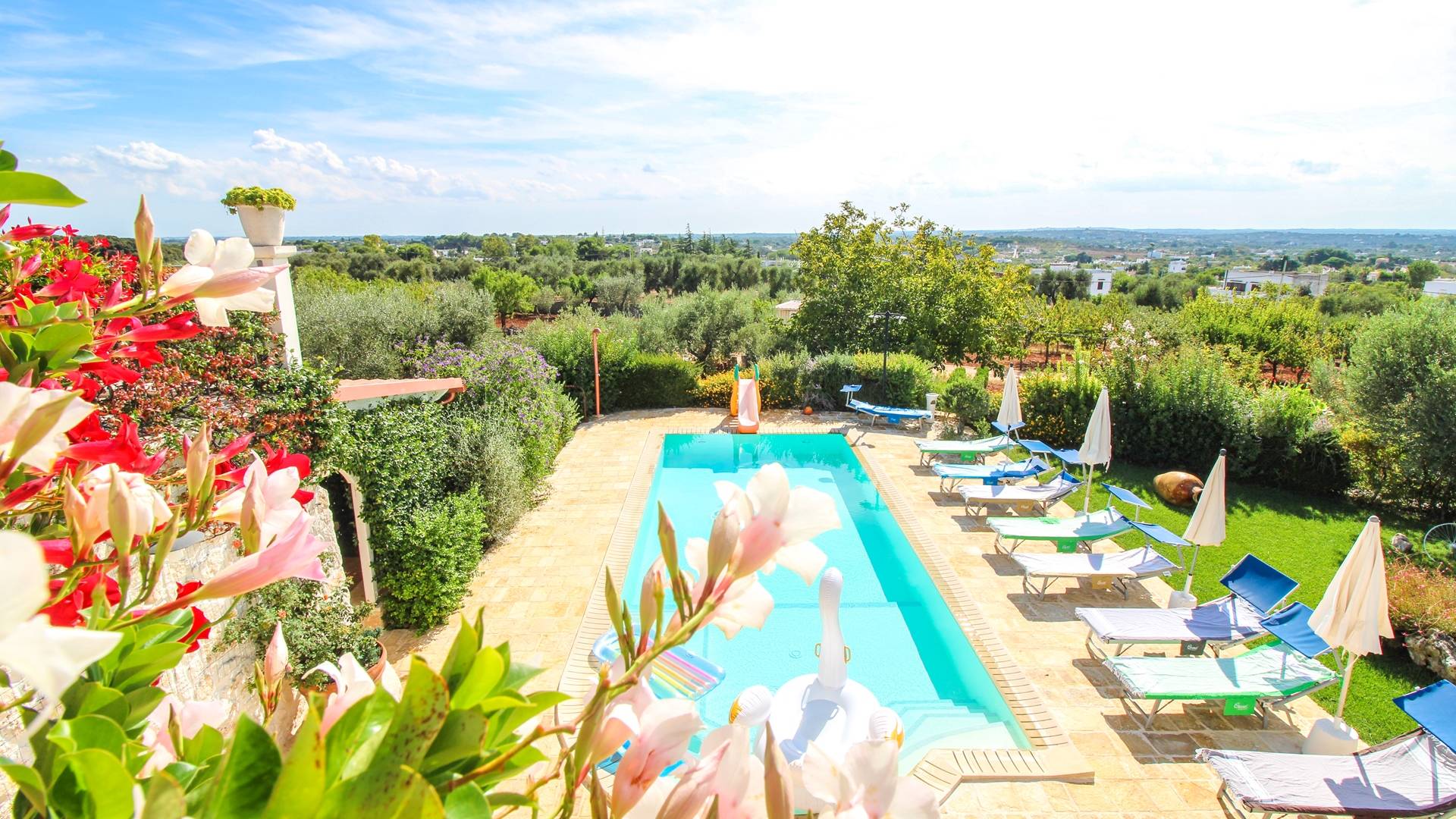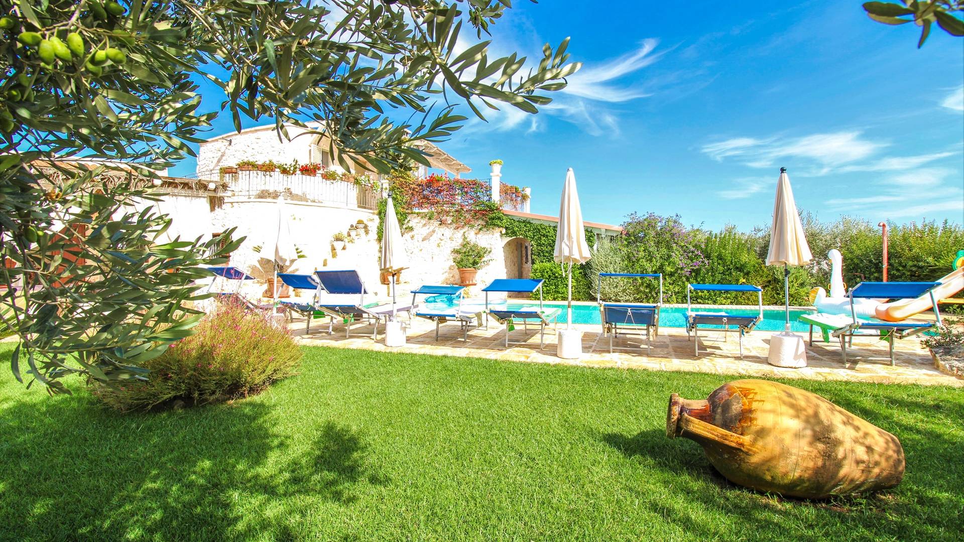 In the surroundings, you will find several beaches. Among the best known there is the free one of Plaia, the bay of Camerini but also the Costa Merlata, Cala Diana, and Torre Pozzelle. The Torre Guaceto nature reserve, for lovers of the environment, is only 17 kilometers away. The center of Ostuni is about one kilometer away.
