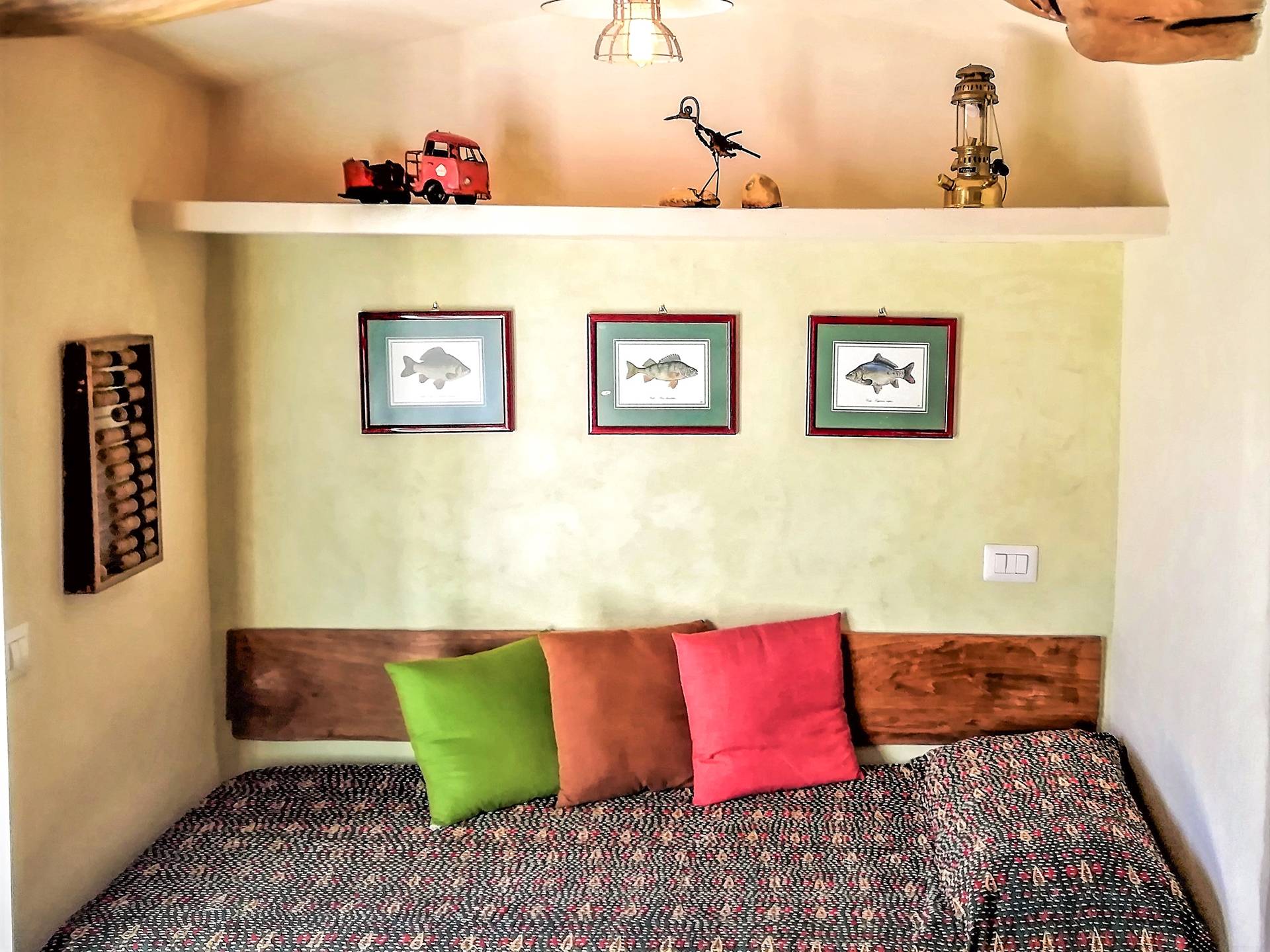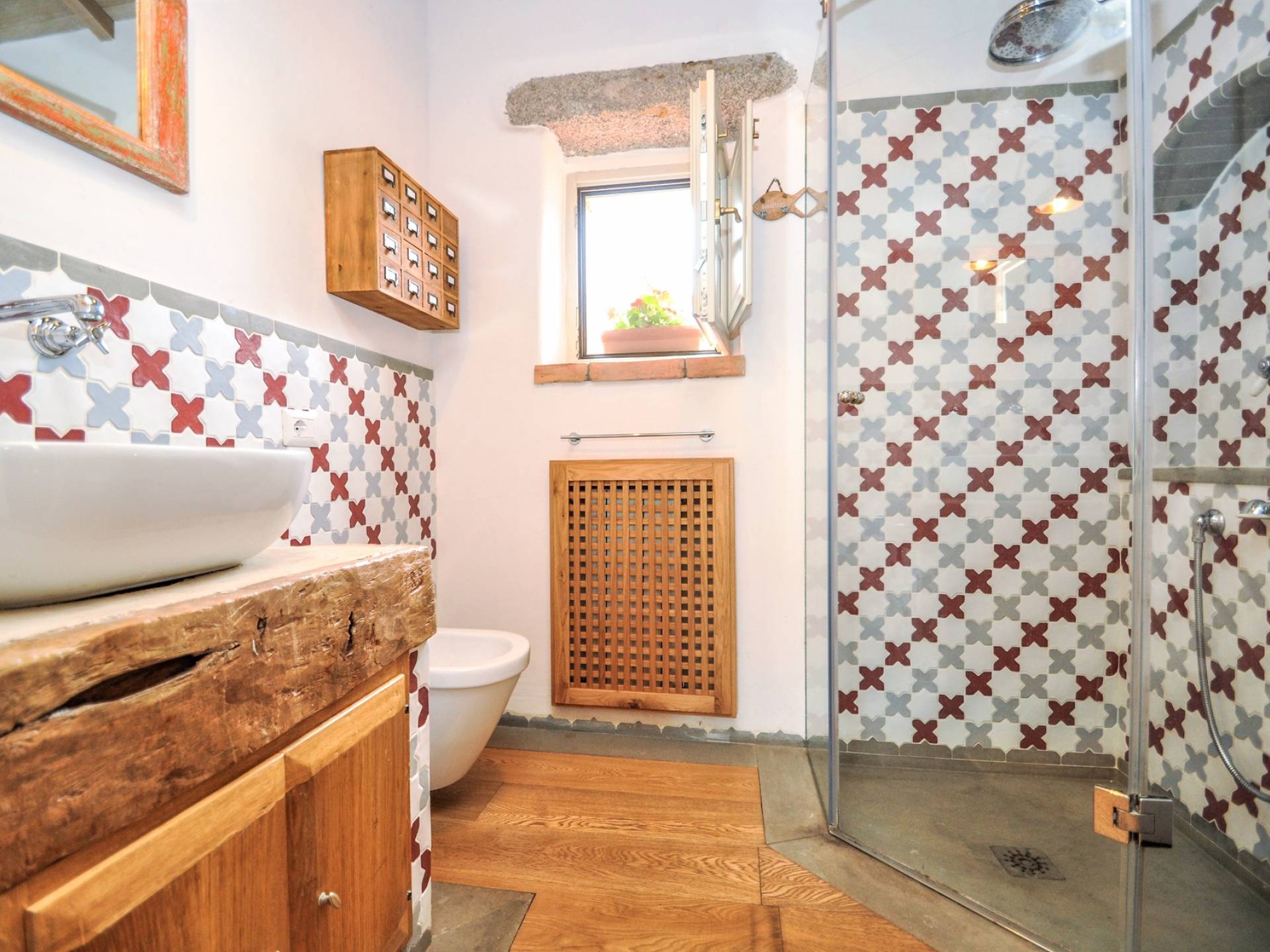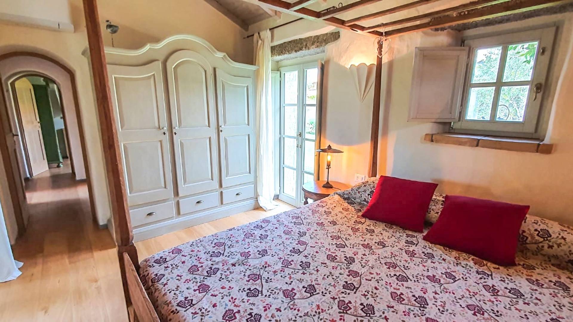 The outdoor veranda overlooks the swimming pool and the garden, which can be accessed by going down a few steps. Here, in addition to a relaxation area with armchairs, a sofa, and a coffee table, you will also find a large barbecue area with oven and stone table where you can have lunch and dinner enjoying the coolness of a straw ceiling. In the outbuilding, once born as an ancient horse shelter, you will live in an enchanting "stazzo", perfectly restored where a sweet romantic atmosphere encloses the warmth of a typical house in Gallura. A large master bedroom with a provencal canopy bed and the panorama of a green olive wood accompany pleasant and long rests. A cozy double room with an enchanting bathroom completes the sleeping area.