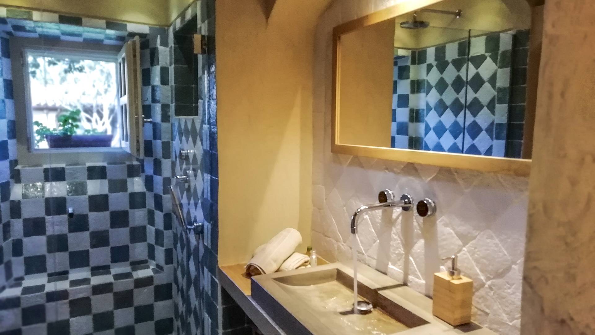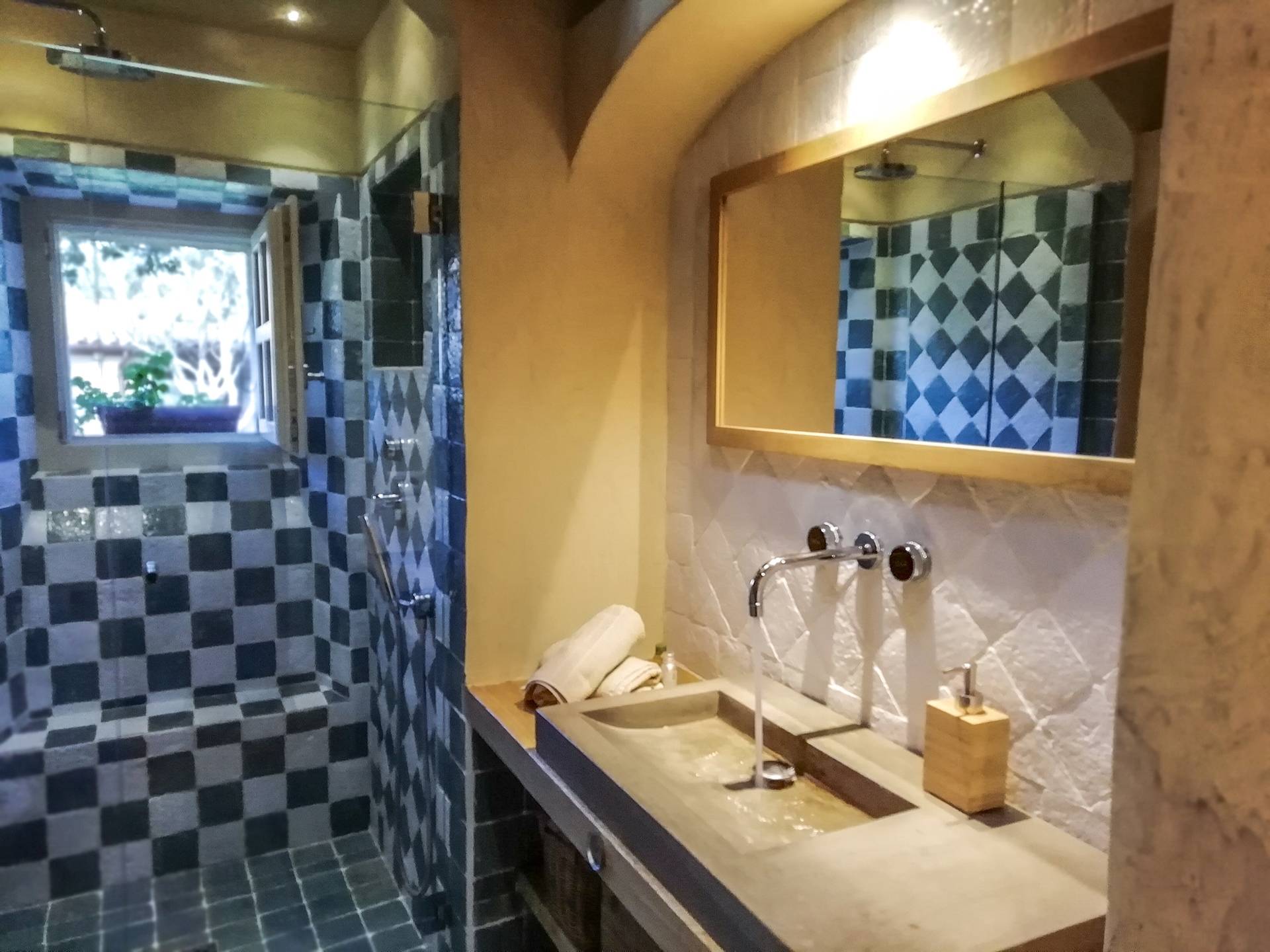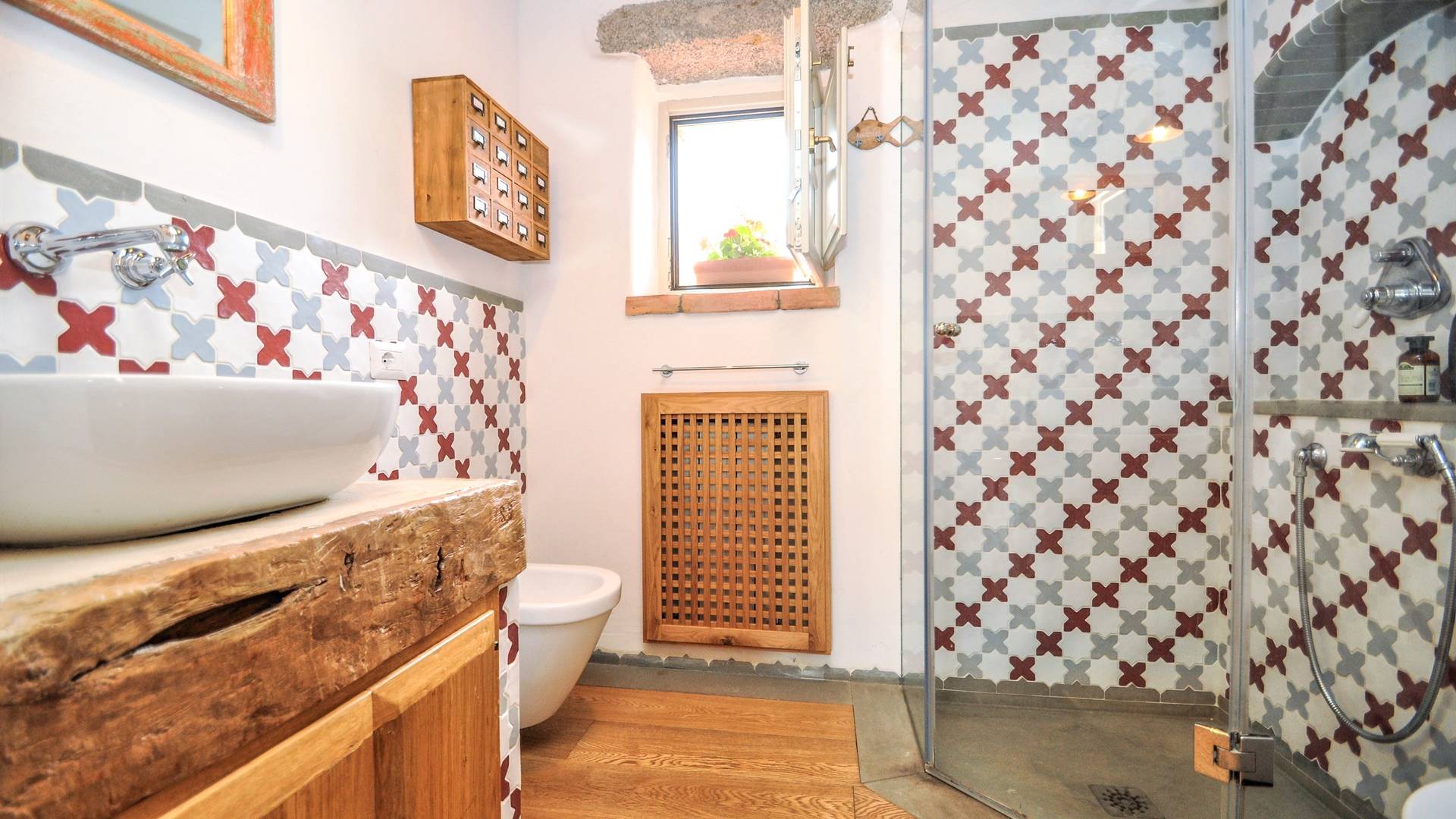 In this area of the house, there are two double bedrooms with a private bathroom and with the possibility of using them as double beds. The intermediate room in the building also has an odd mezzanine area for an eventual extra single bed. An internal patio, with large French windows and a beautifully decorated floor, is interposed in one of the suites.