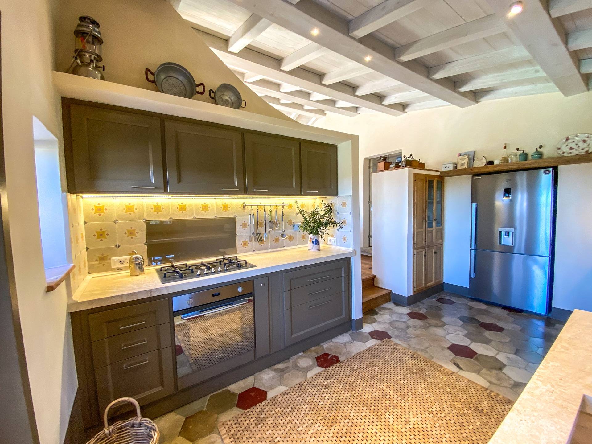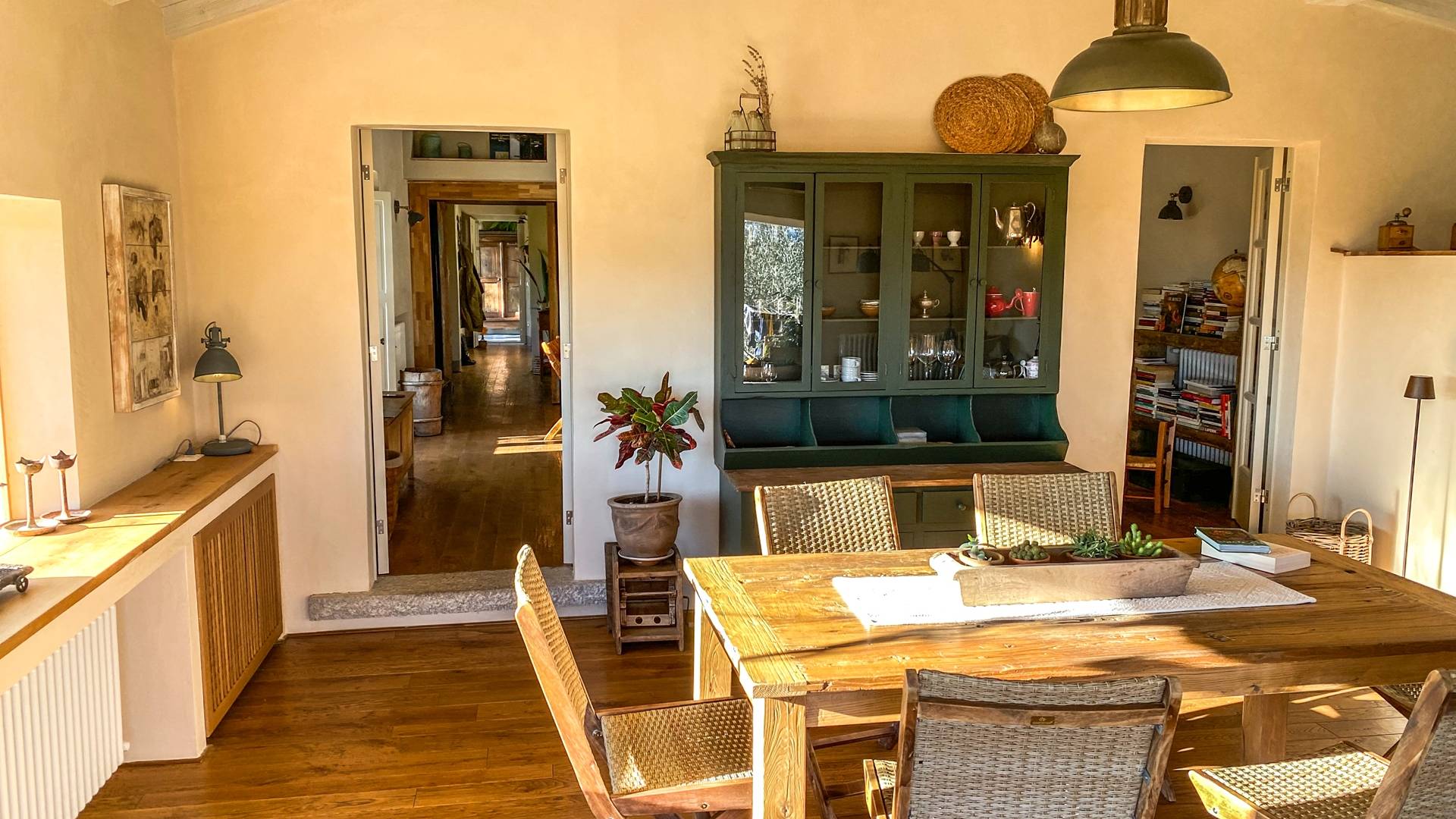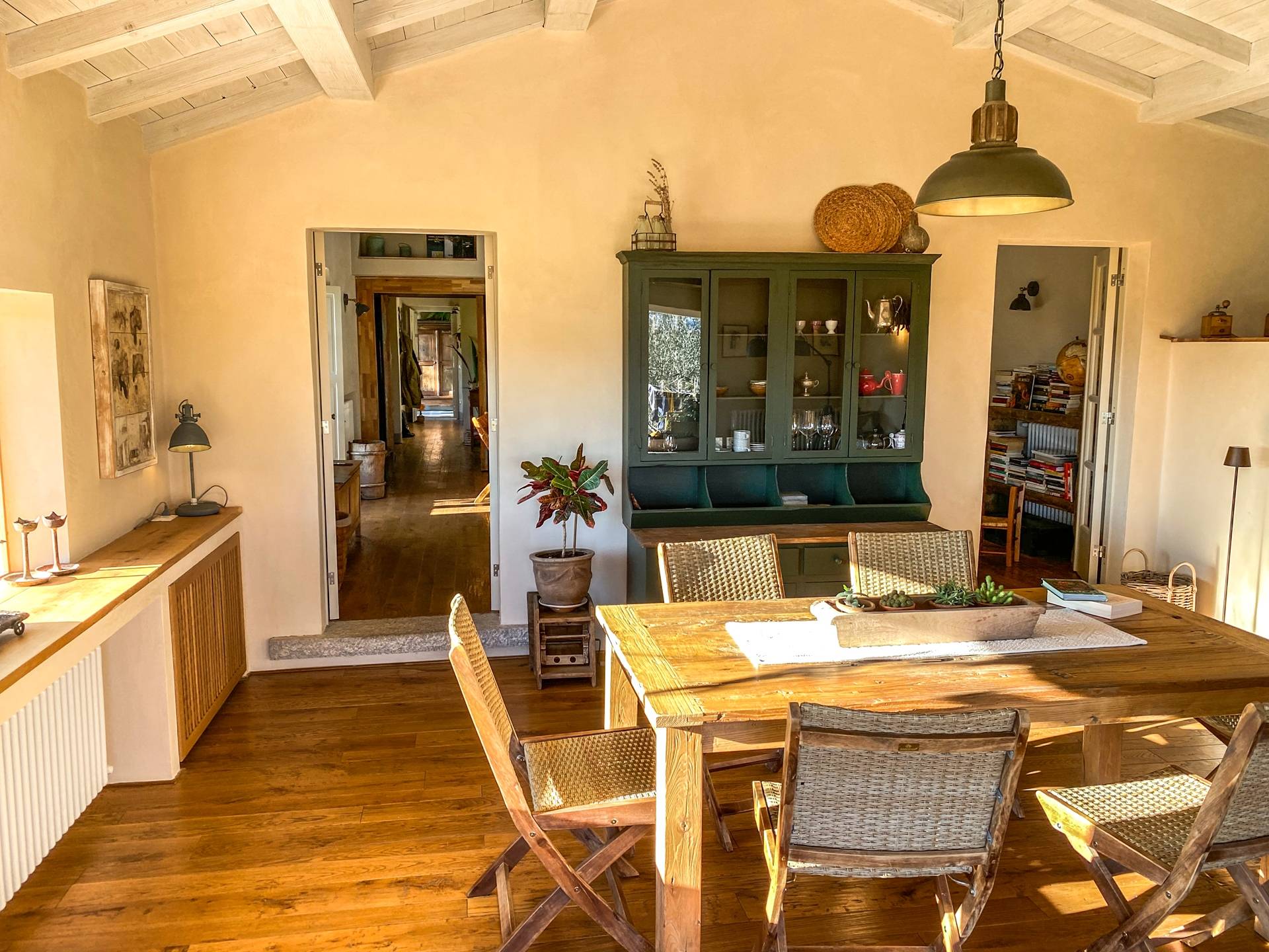 The floors made with large wooden planks, the exposed ceiling beams, and the large and bright openings, represent the real visiting card of the welcome in this residence of great charm where everything seems to have been made to be breathed and lived because the scent of things and time give us this gift.