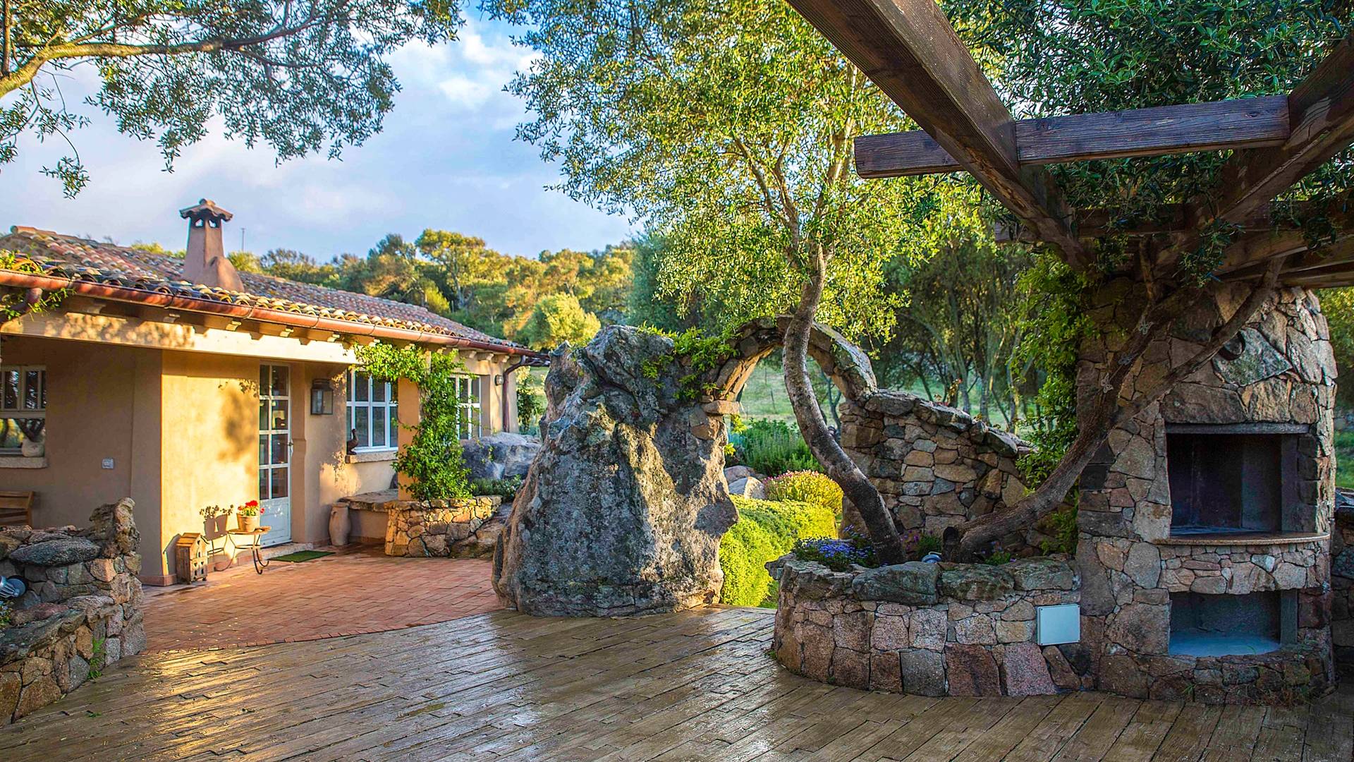 The main residence, together with its beautiful dependence, represents the past translated into the present and truly offers a refuge from the chaos of everyday life in Sardinia, a unique land in the world. Here three of the four elements - earth, air, and water - have found their true habitat. Here is where the large manor house is located, convenient and comfortable, with exits to the garden in every room. A large hall with its hand-carved stone fireplace in the early twentieth century awaits you. The house is arranged on one level and in the living area there is a romantic kitchen and a dining area with a large terrace overlooking the beautiful kitchen where you can turn your gaze towards the imposing mountains of San Pantaleo.