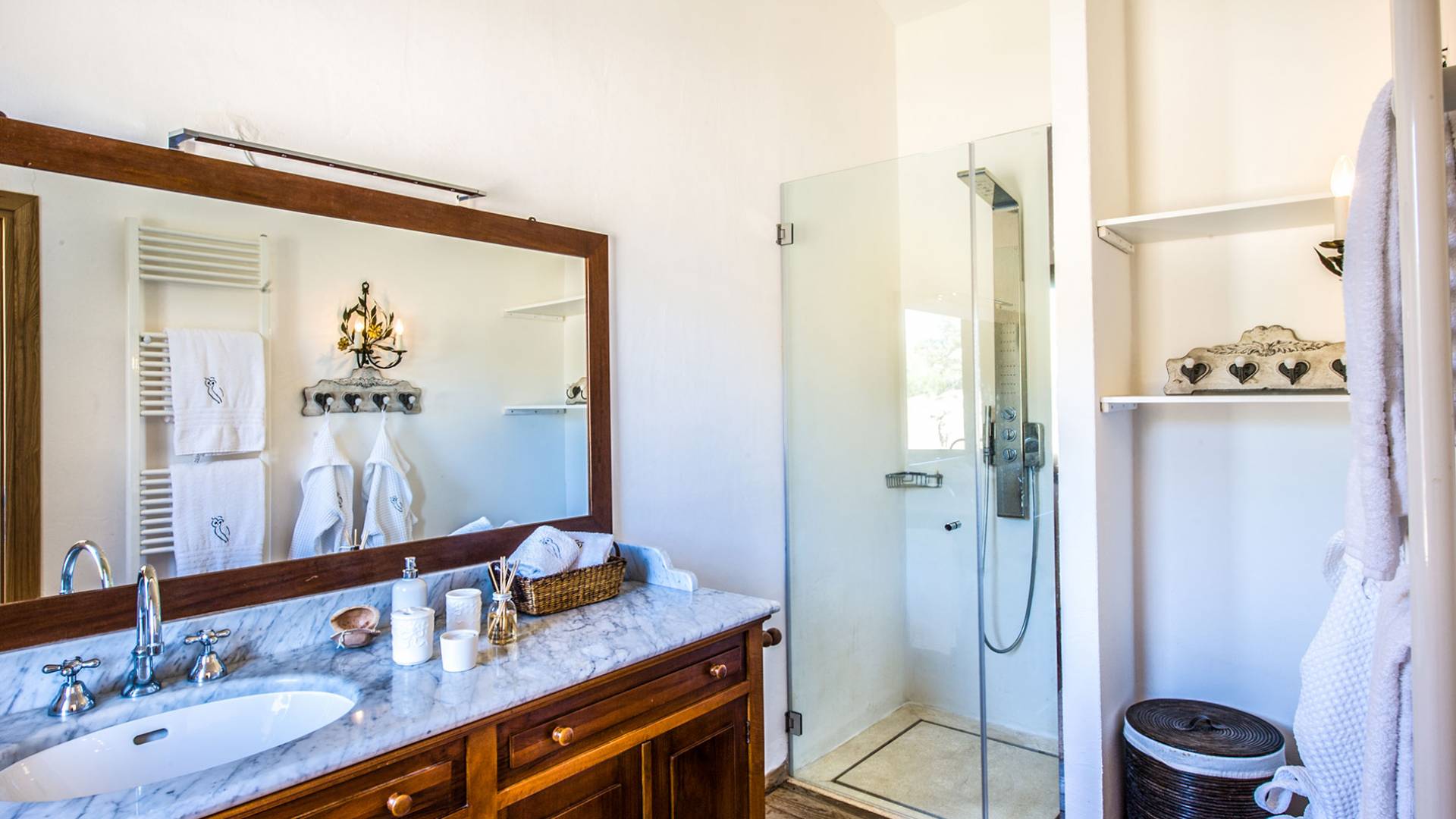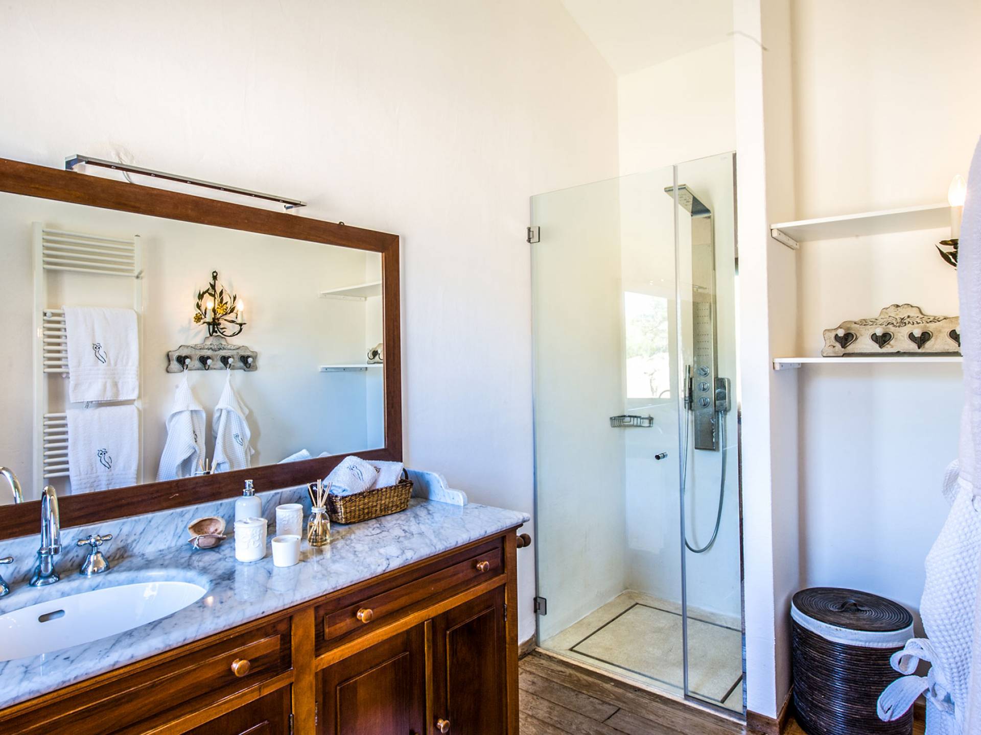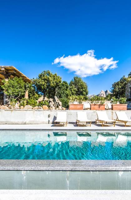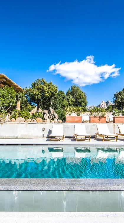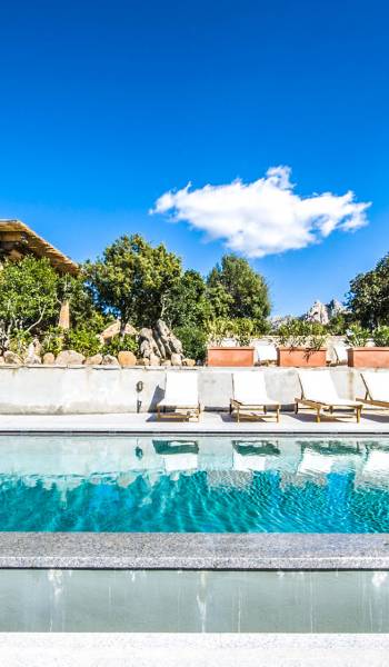 The buildings comprise a master suite, two guest suites, a pool house, one important living area and dining areas, a fully equipped professional kitchen and facilities, several covered terraces, a lap pool of 25 meters, and a bowling green. Close to Villa Splendida Sardinia, yet in a comfortable and secluded location, a beautiful and large terrace on two levels with alfresco dining overlooks the beautiful lap-pool of 25 metres, with a stunning view of the surrounding countryside. A wood-burning oven and outdoor kitchen make it the ideal place for entertaining, we can host special selected events for up to 300 people (external).