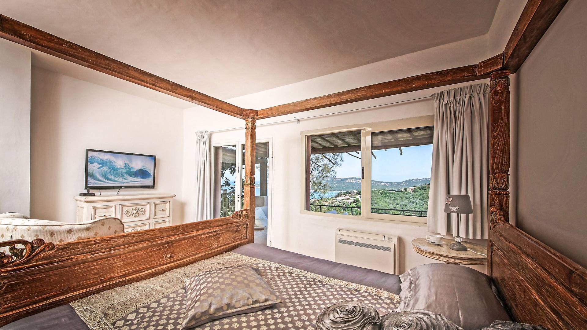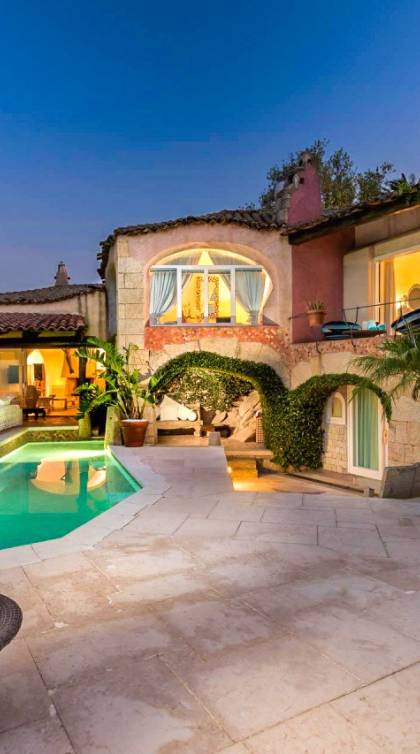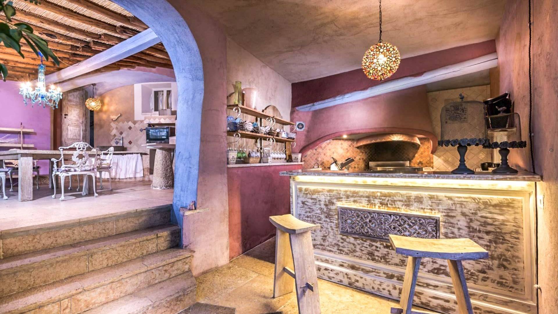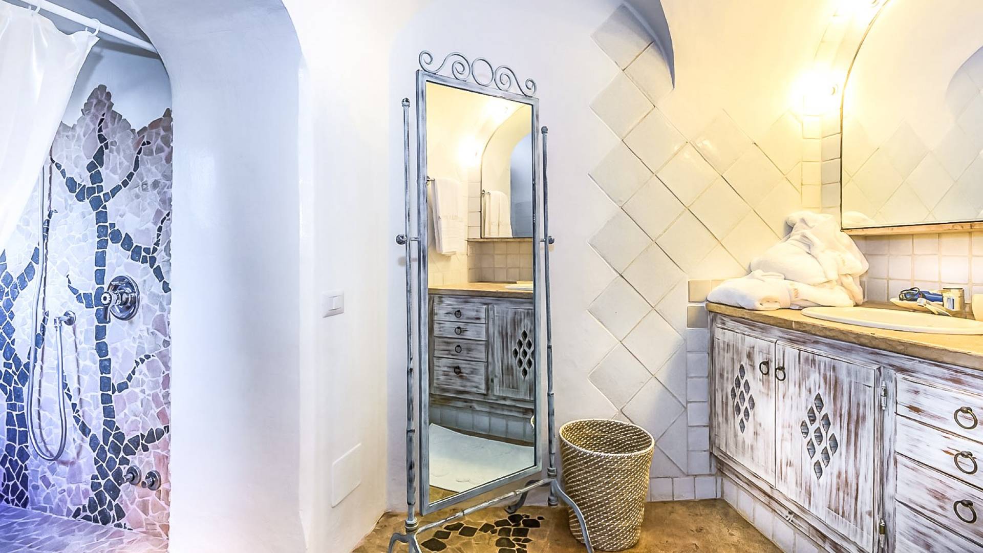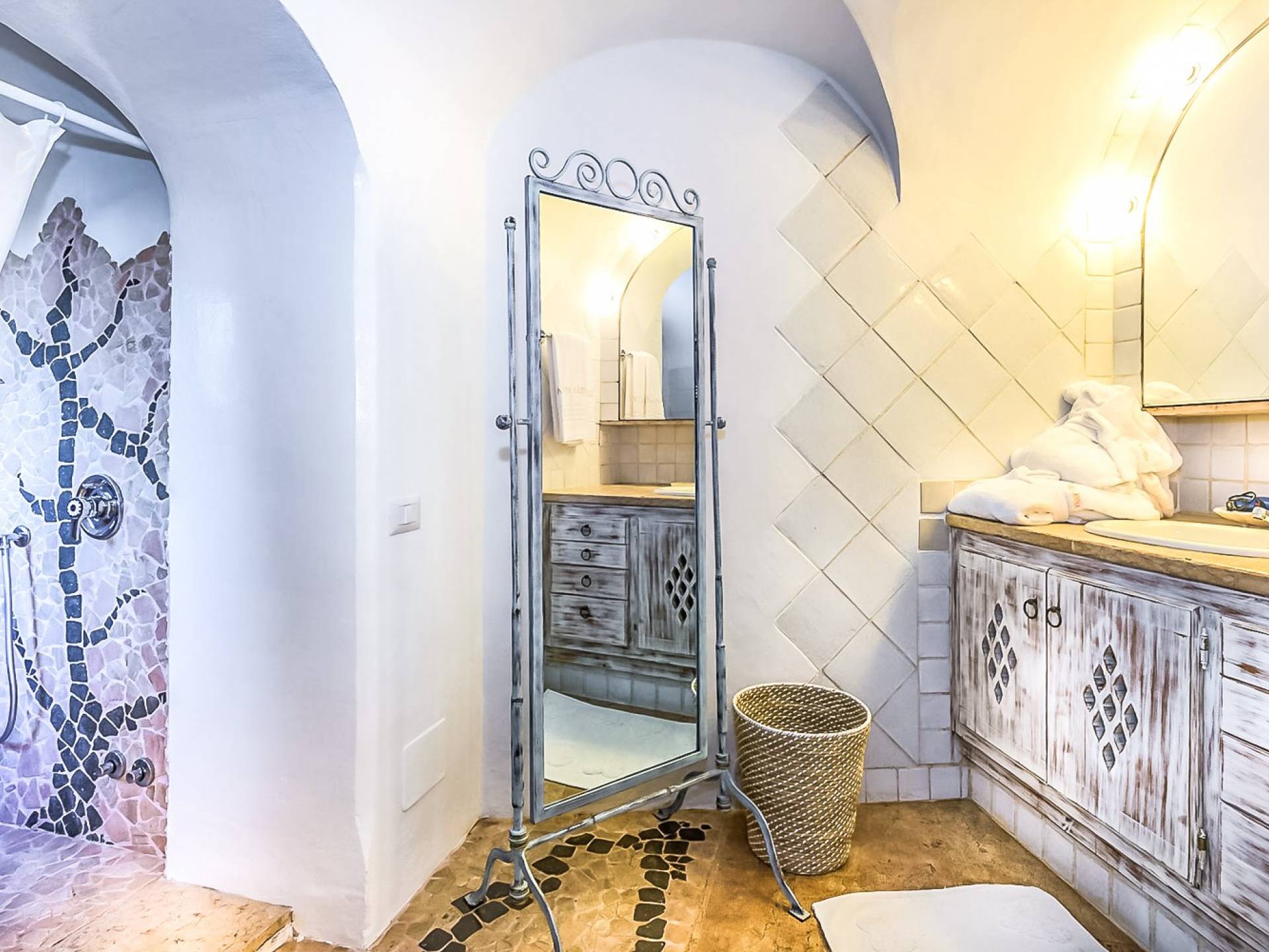 The charming mansion, designed by the famous architect Savin Couelle, is on two levels. You will be welcomed by a large living room connected to a kitchen with direct access to the barbecue area and outdoor spaces. The living room with fireplace and white leather sofas and high ceilings with exposed wooden beams will make you feel wrapped in a warm embrace. In the sleeping area, you will find at your disposal 6 ensuite bedrooms, two of which with independent entrances, capable of accommodating up to 13 guests. Particularly bright and very clean and refined are the interior spaces with furniture and linens that recall the tradition of the island.
