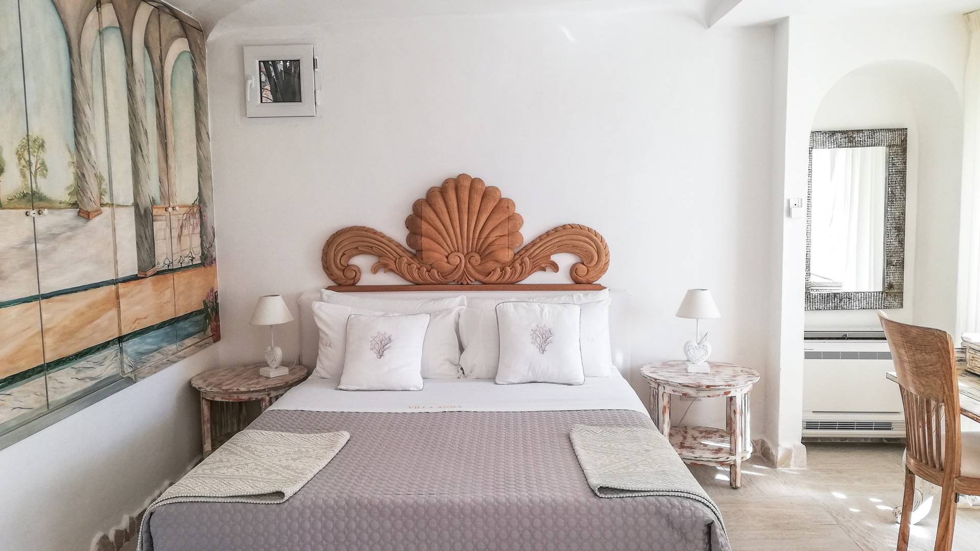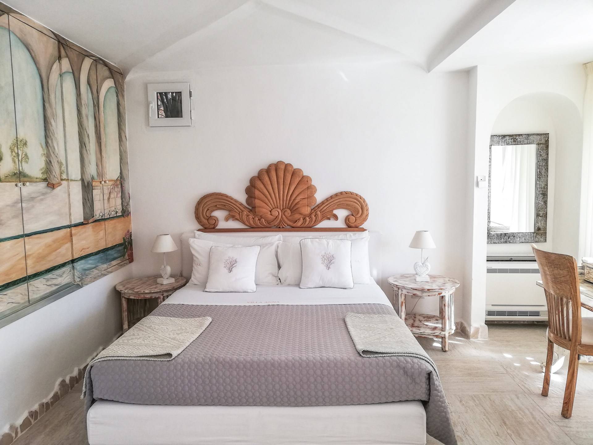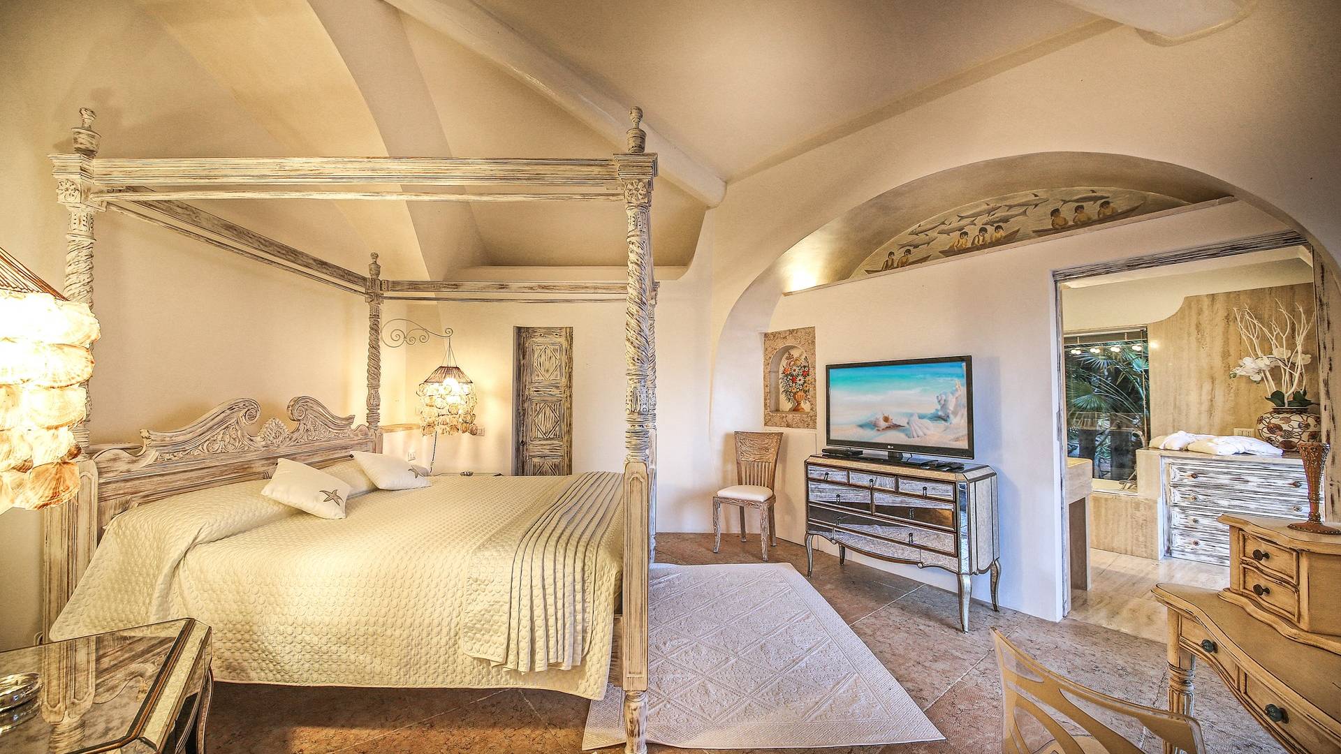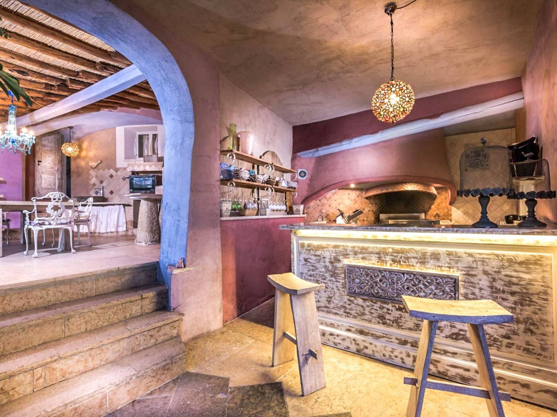 The charming mansion, designed by the famous architect Savin Couelle, is on two levels. You will be welcomed by a large living room connected to a kitchen with direct access to the barbecue area and outdoor spaces. The living room with fireplace and white leather sofas and high ceilings with exposed wooden beams will make you feel wrapped in a warm embrace. In the sleeping area, you will find at your disposal 6 ensuite bedrooms, two of which with independent entrances, capable of accommodating up to 13 guests. Particularly bright and very clean and refined are the interior spaces with furniture and linens that recall the tradition of the island.