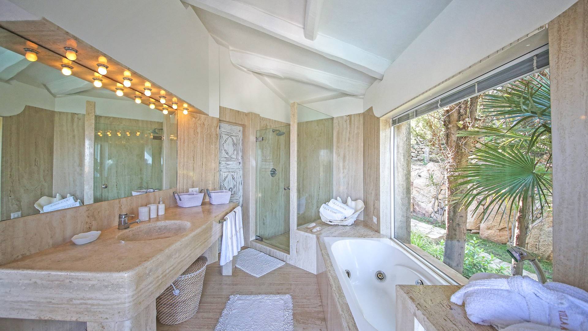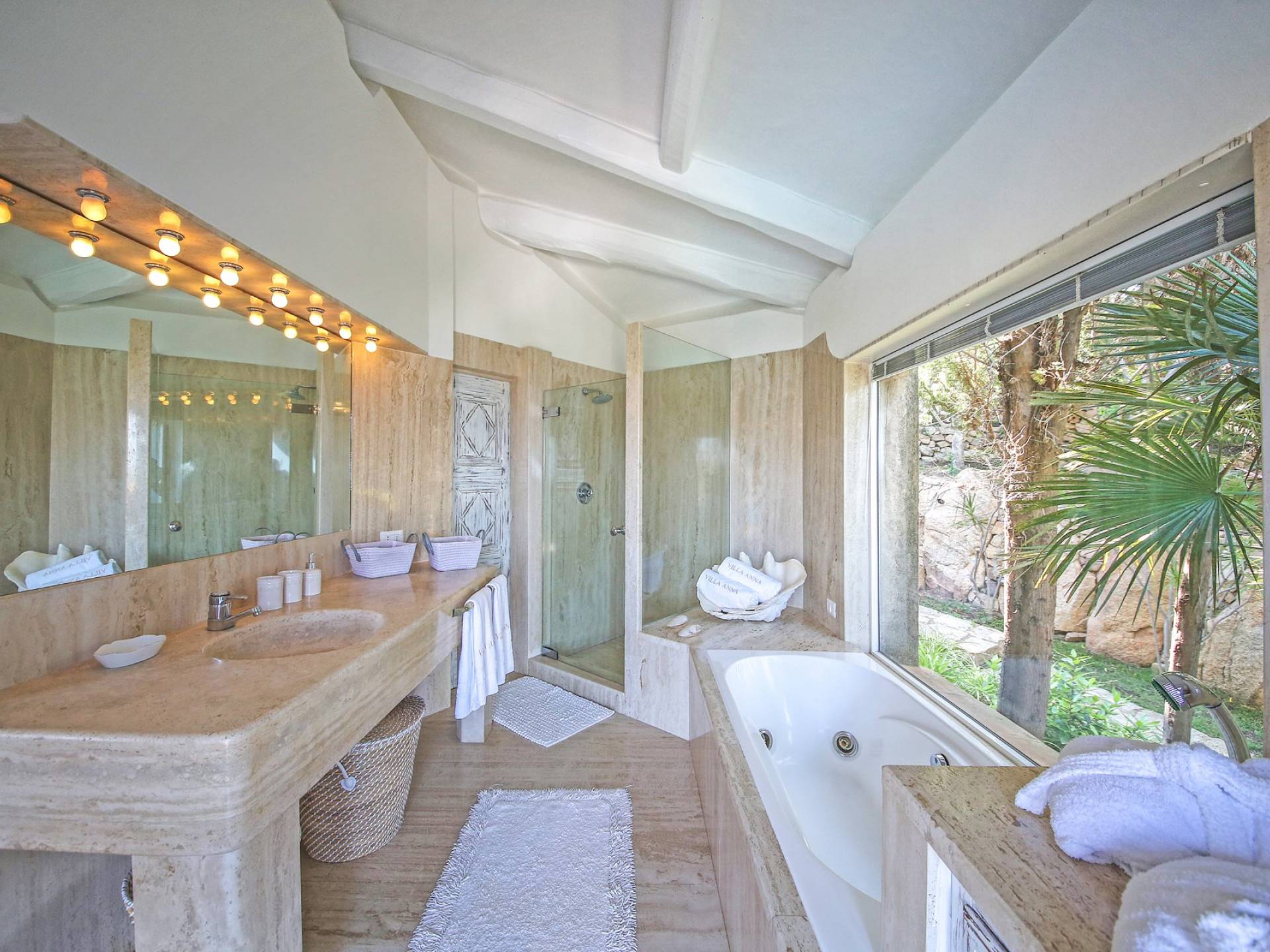 Outside you will have at your disposal a Mediterranean garden of 5 thousand square meters and truly comfortable equipment with several relaxation corners equipped with sun loungers and deck chairs but also a lovely infinity pool suspended between the blue sky and the blue sea of Sardinia. Here you can spend hours and hours in good company, taking advantage of the large outdoor lounge with wicker sofas and low tables. Always outdoors, you can indulge in some physical activity by taking advantage of the gym. For your well-being, there is also a dedicated area with a sauna and massage bed. In addition, private parking and wifi connection throughout the villa. Naturally, two of the area's top attractions are Liscia Ruia and Spiaggia di Capriccioli. Olbia airport is half an hour away by car.