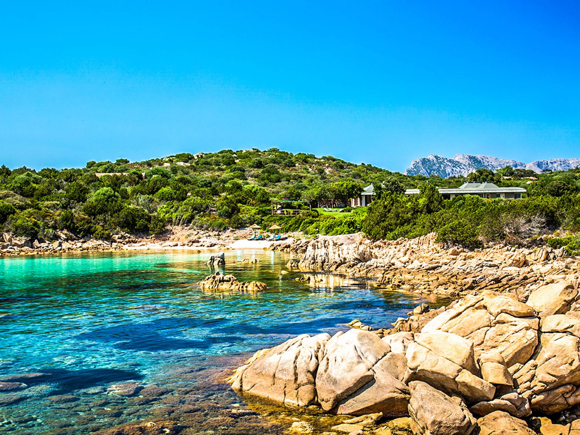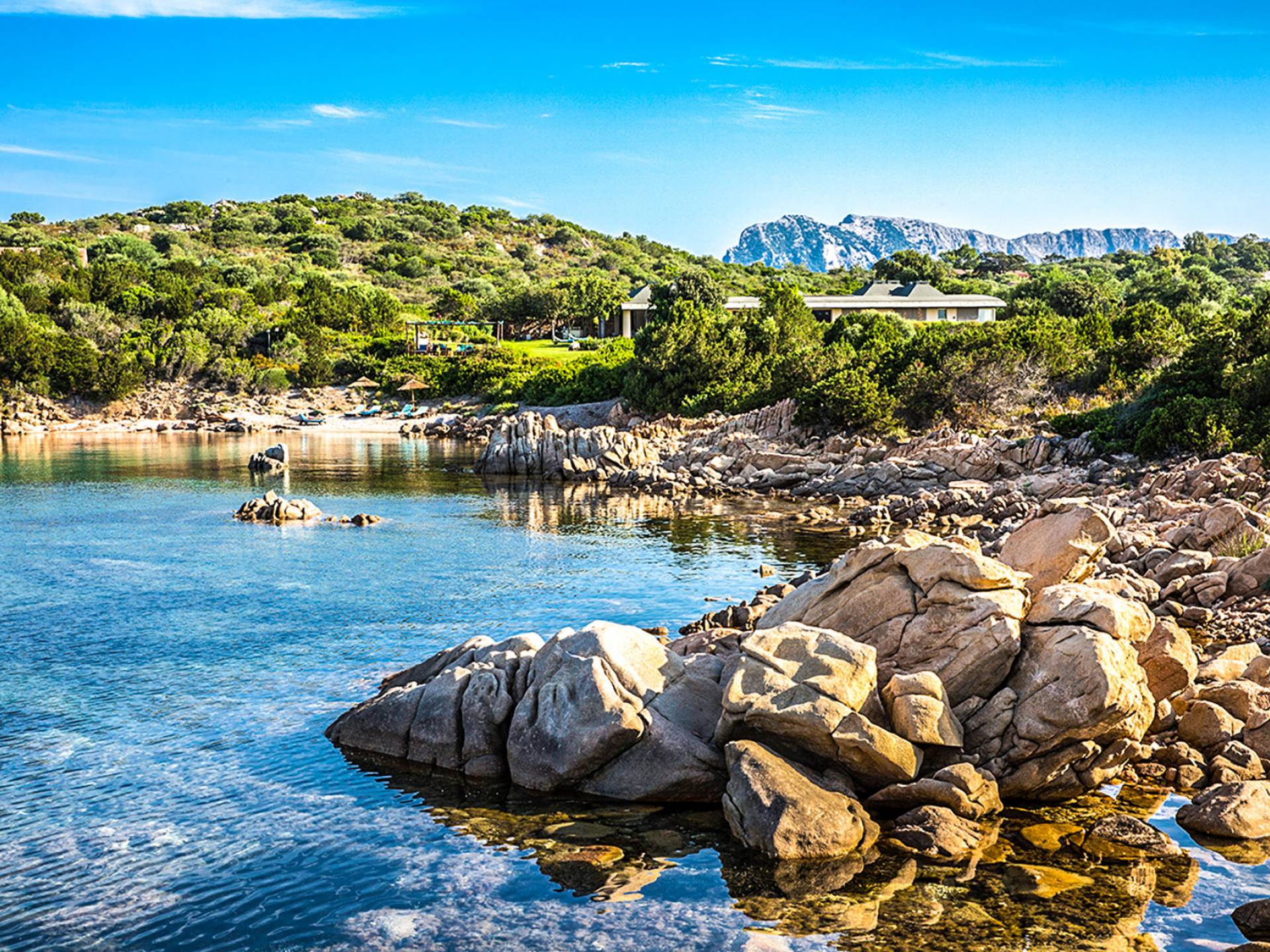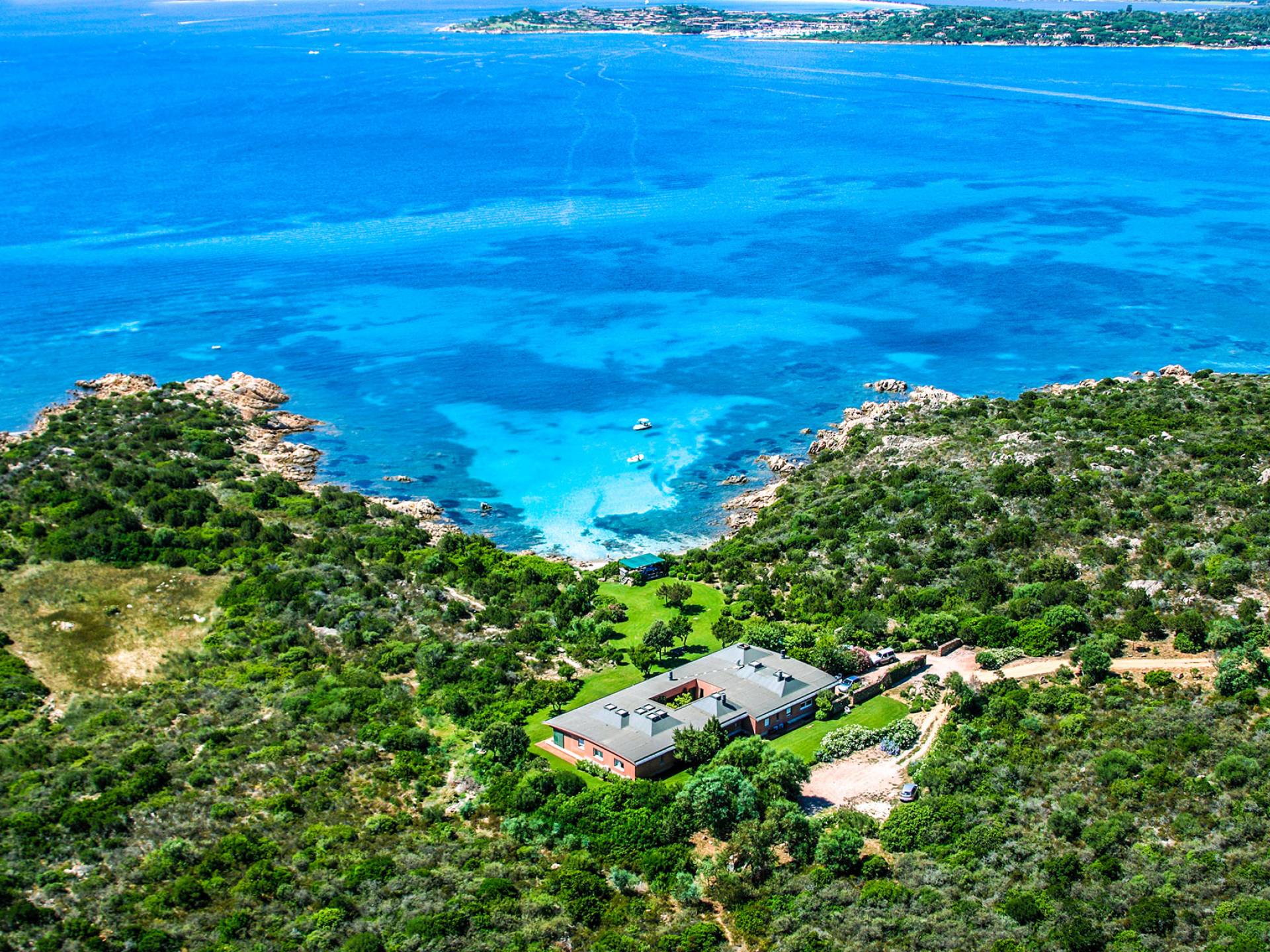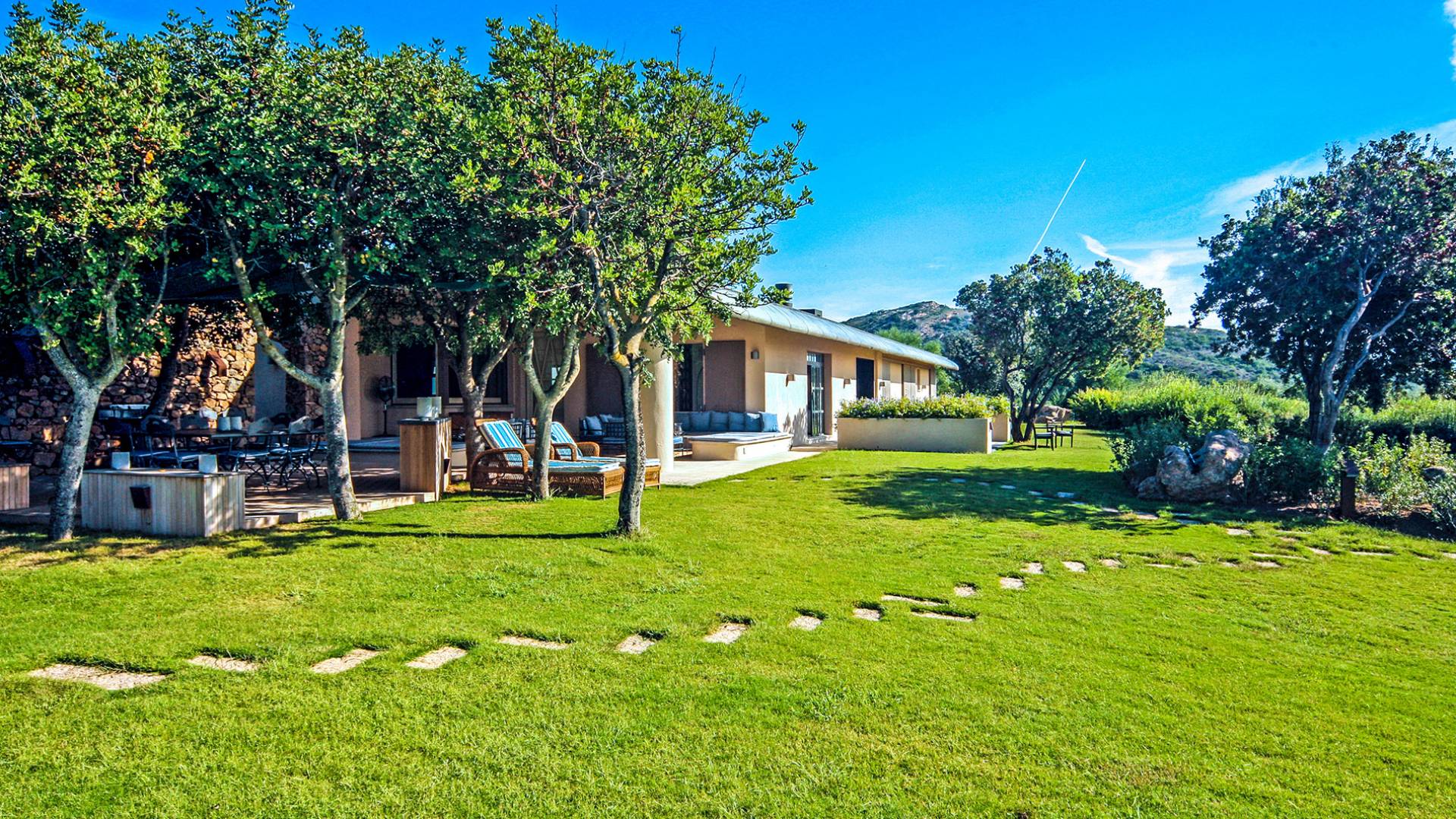 Villa Marina Sardinia fits in this context with great respect for nature taking benefit of the silence, the quiet, the sea-sight, and the view over the island of Tavolara. Other beautiful beaches like Cala Brandinchi and Lu Impostu are minutes away, Cala Suaraccia, Cala Salinedda, and Capo Coda Cavallo are gems of this area.