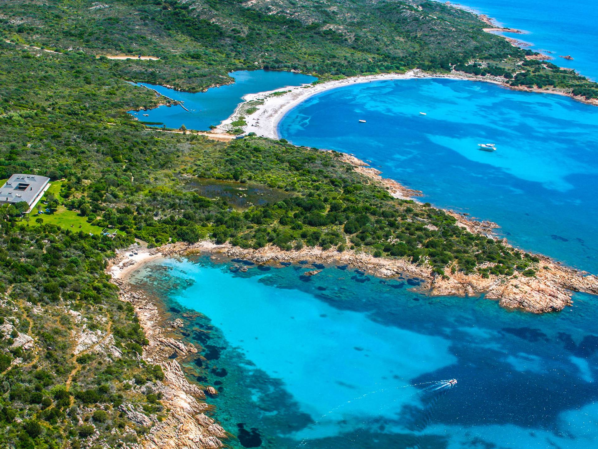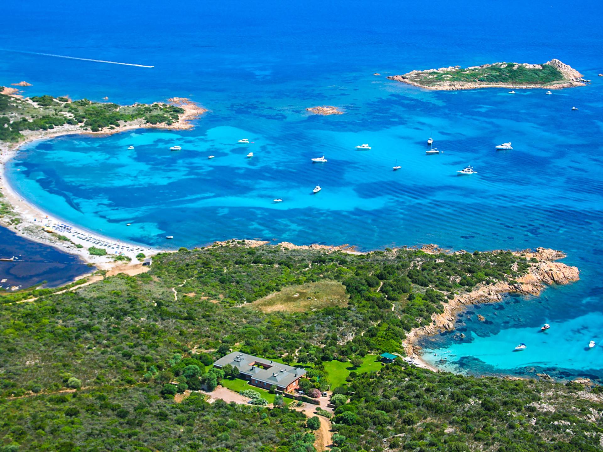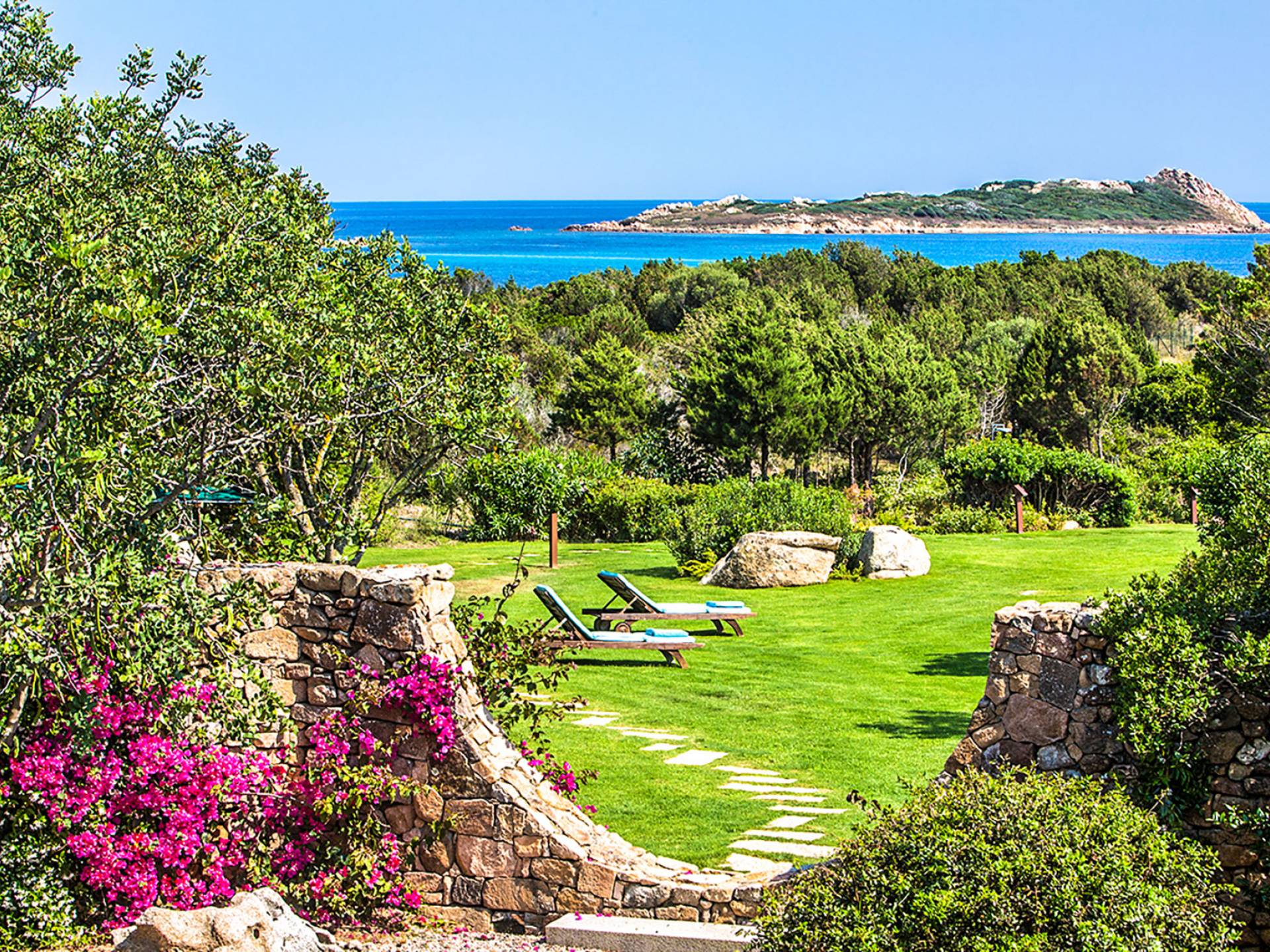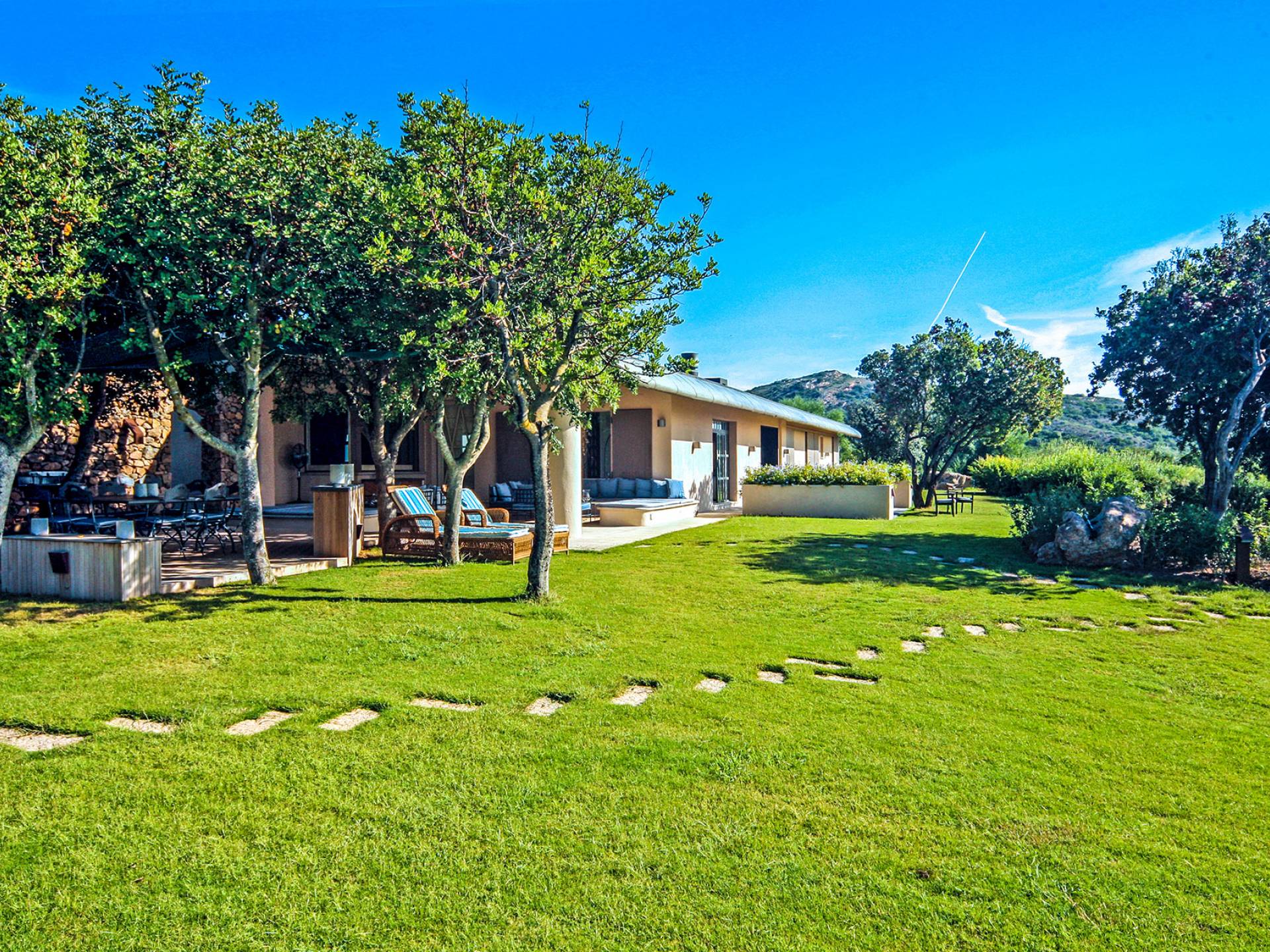Villa Marina Sardinia fits in this context with great respect for nature taking benefit of the silence, the quiet, the sea-sight, and the view over the island of Tavolara. Other beautiful beaches like Cala Brandinchi and Lu Impostu are minutes away, Cala Suaraccia, Cala Salinedda, and Capo Coda Cavallo are gems of this area.