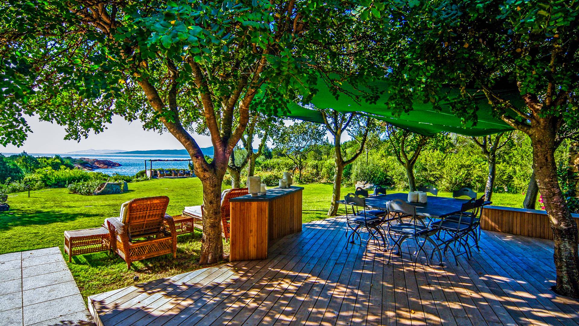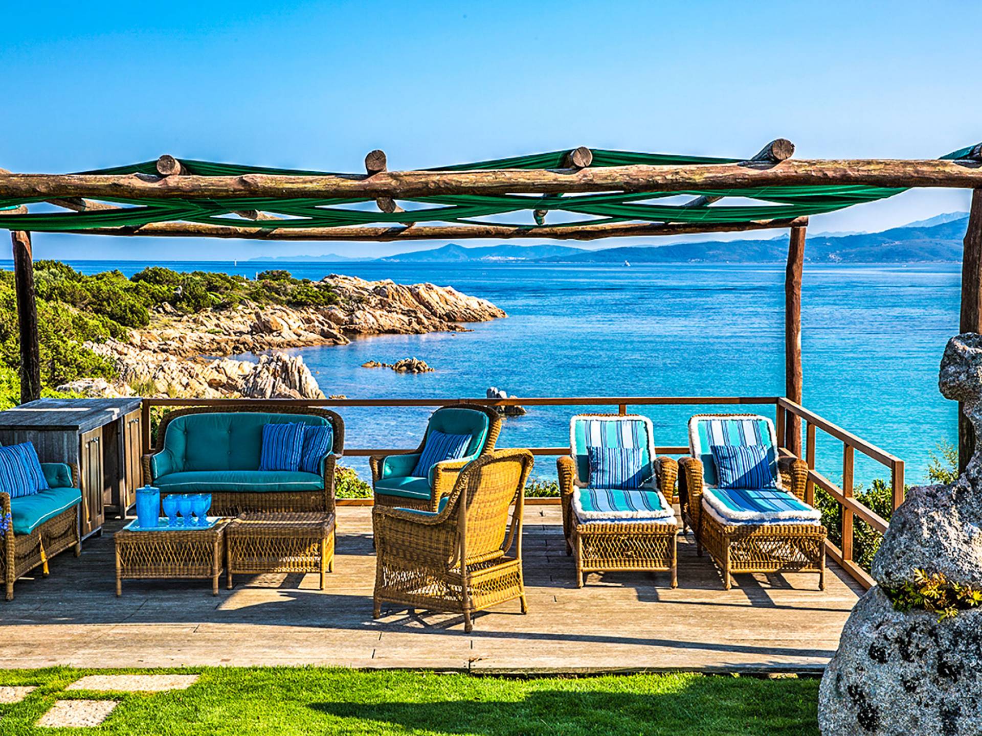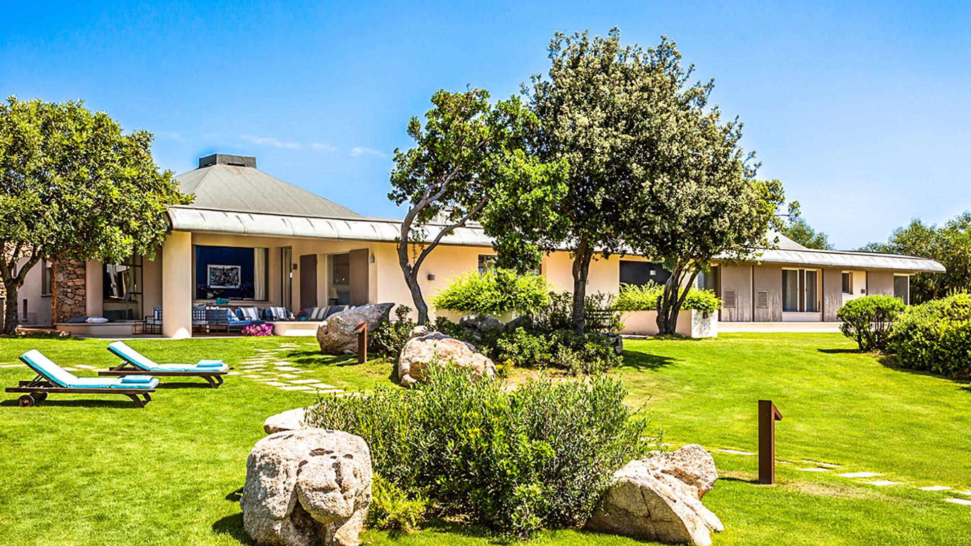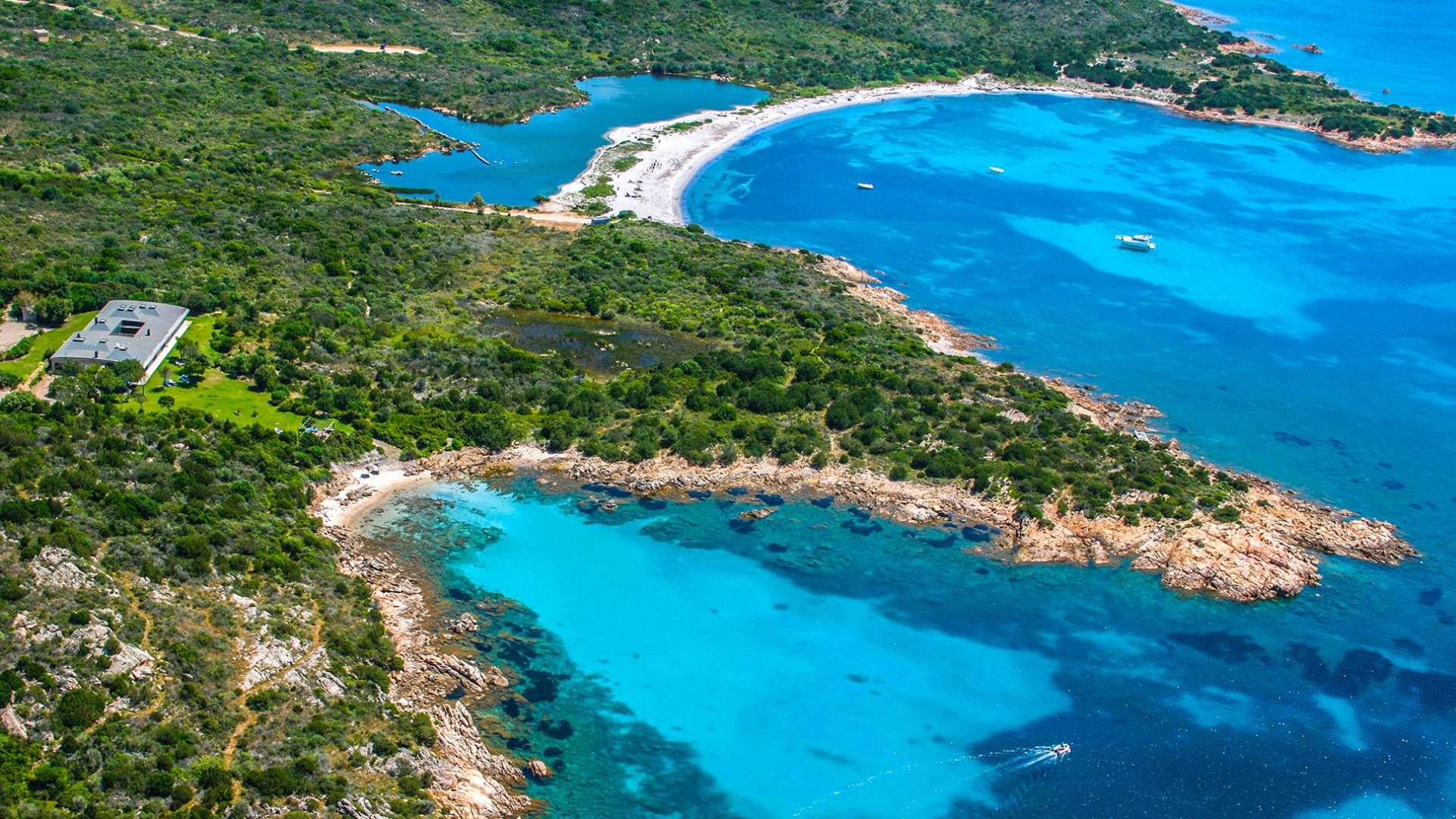 Villa Marina Sardinia fits in this context with great respect for nature taking benefit of the silence, the quiet, the sea-sight, and the view over the island of Tavolara. Other beautiful beaches like Cala Brandinchi and Lu Impostu are minutes away, Cala Suaraccia, Cala Salinedda, and Capo Coda Cavallo are gems of this area.