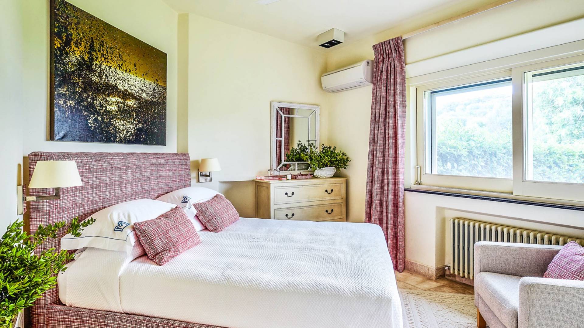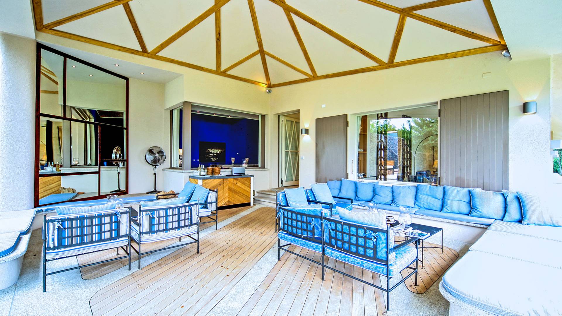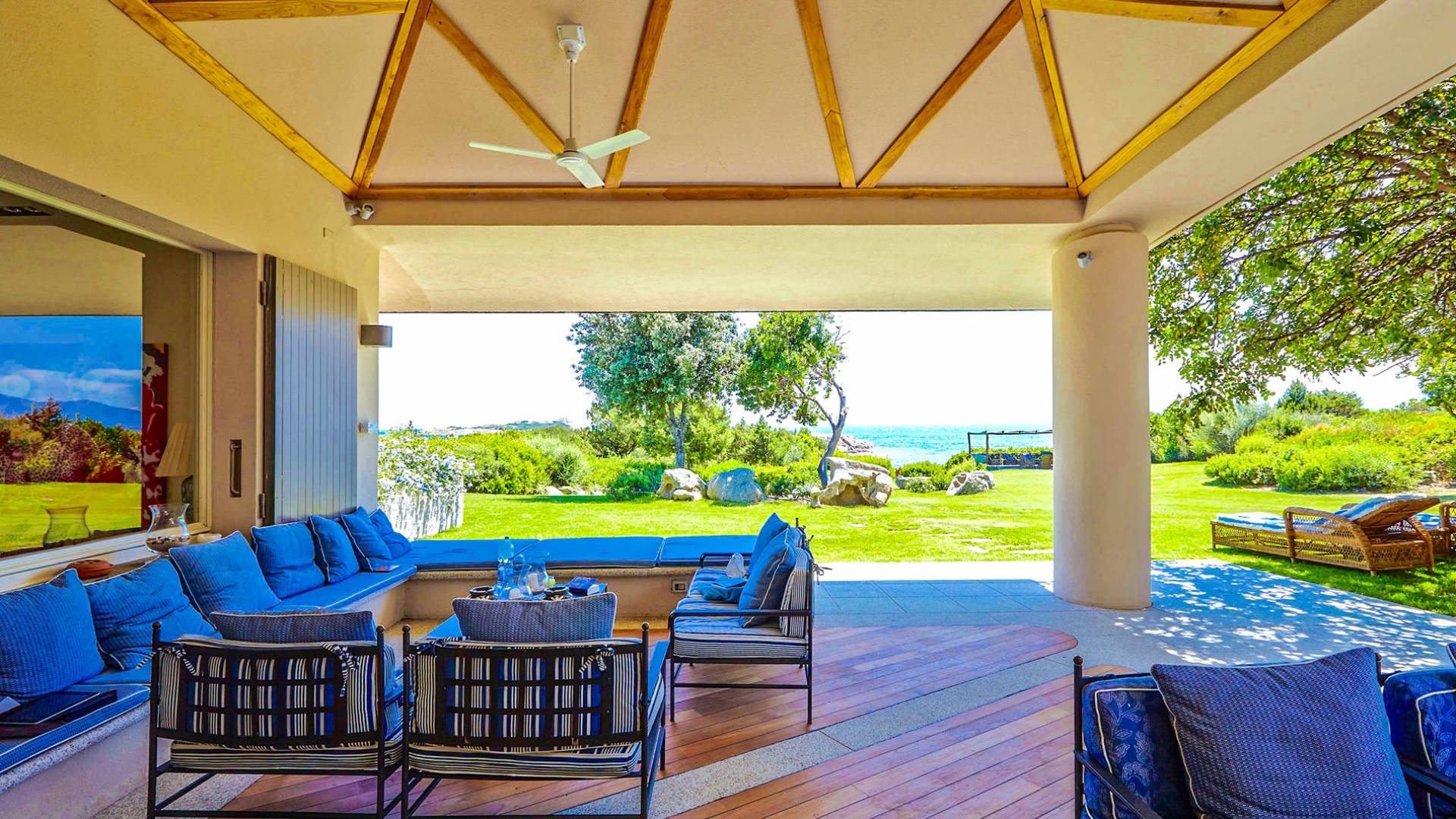 The nine bedrooms in this contemporary designed property are like the rest of the villa - spacious yet tranquil and exceptionally well-appointed, only 45 meters away from the beach. The villa benefits from sublime interiors and exteriors and it's perfect for alfresco dining. With every modern amenity, this one offers guests a pampered and luxurious stay, with exceptional views over a small bay forming a natural harbor even for larger yachts, it features a spacious patio, a separate covered terrace, and various interiors living areas equipped with TV and music system.