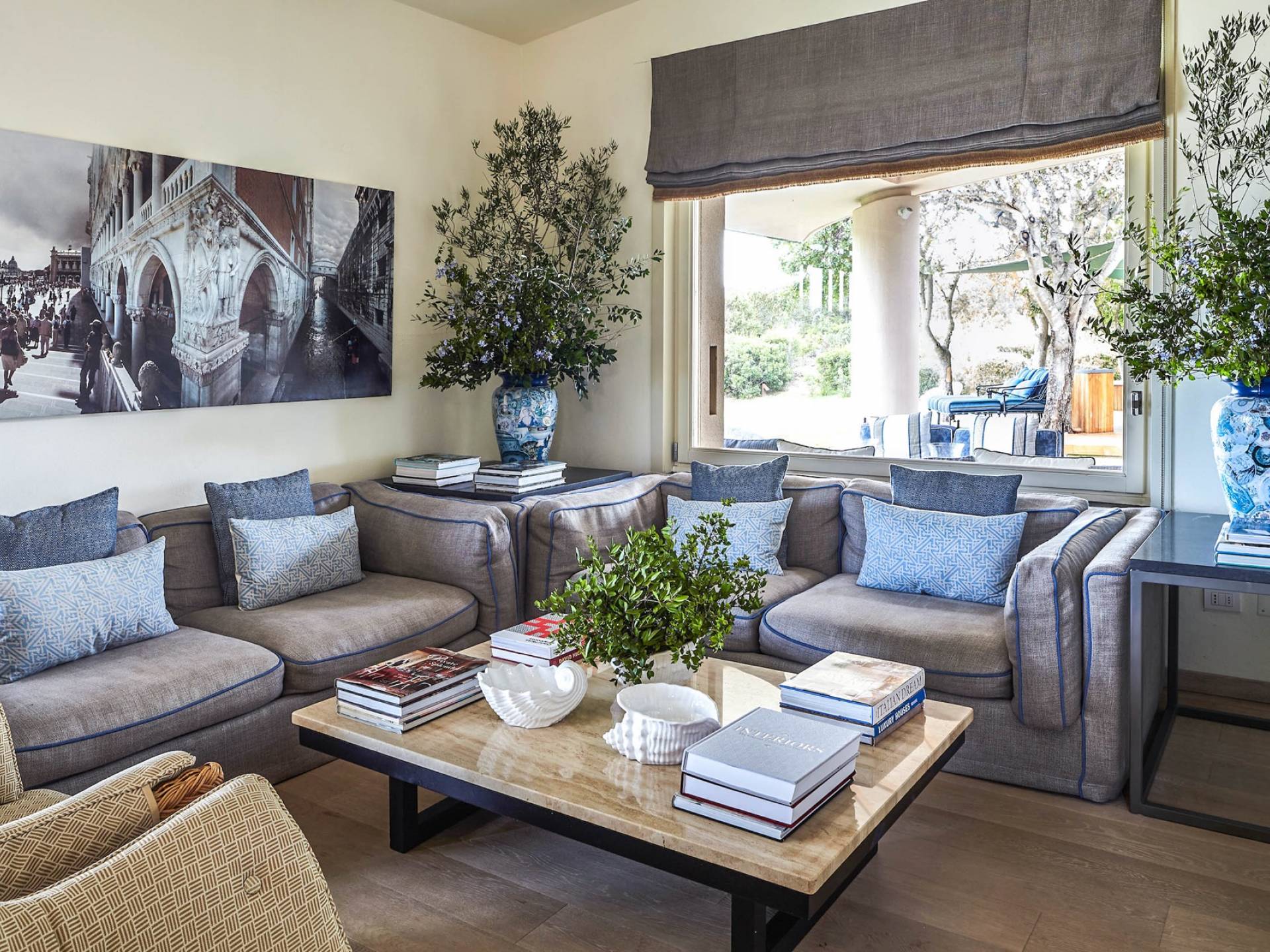 Villa Marina Sardinia also boasts a gym and a sauna, adjacent to one of the bedrooms, a well-equipped kitchen, and a dining room. A garden and lawn area of one acre provides ideal space for al fresco dining and the particularly favorable position of the villa allows to quickly reach the most beautiful beaches of the area: Baia Salinedda, Cala Suaraccia, Salina Bamba, Punta Est, and Cala Brandinchi above all. This bay where the villa is located in a unique place for the gorgeous scenery and the variety of beaches amongst the most beautiful in Sardegna.
