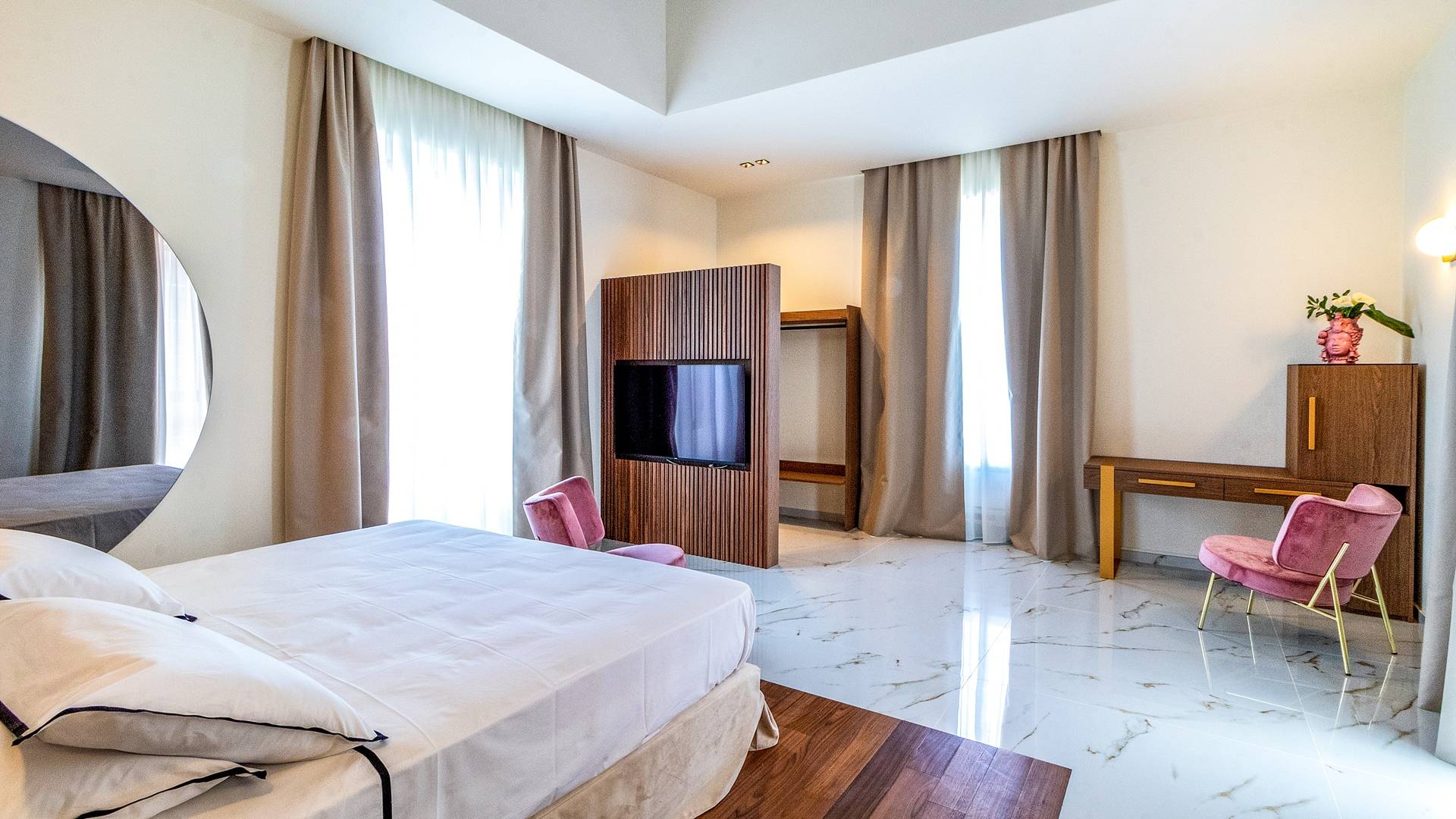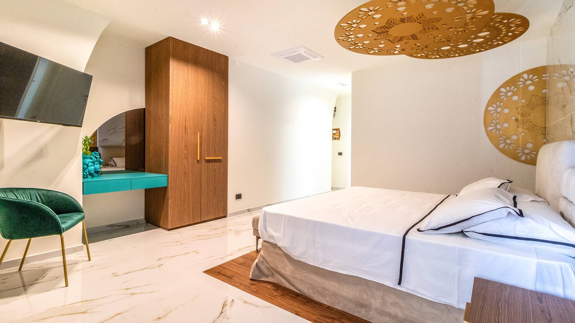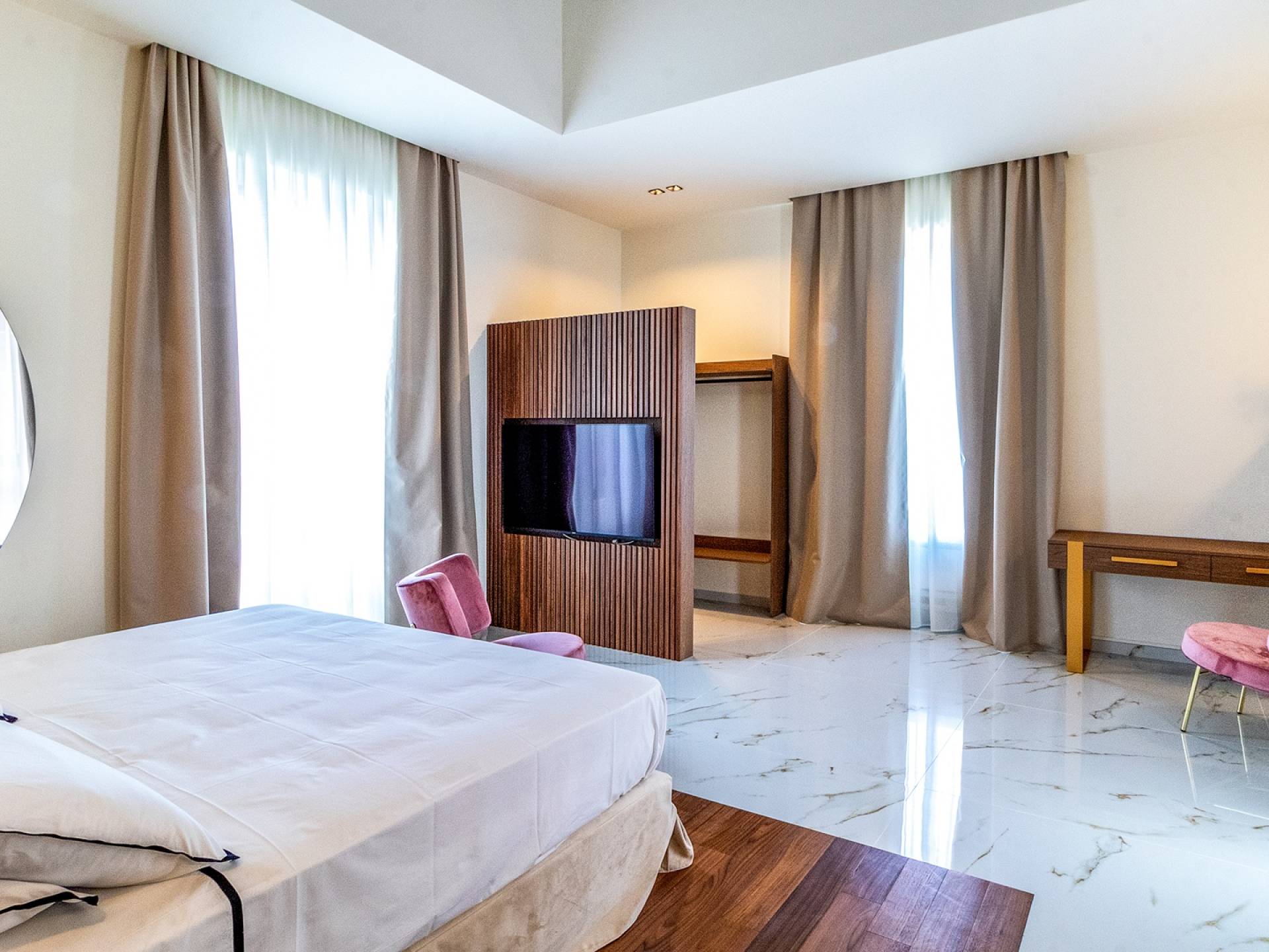 The current owners have renovated the villa and transformed it into a beautiful resort with 6 luxuriously furnished suites, a living room, kitchen all equipped with the best comforts such as air conditioning wi-fi TV safe, and sofa mini bar etc. Outside there is a park of 5,000 square meters with lawn gardens and ancient trees where you can relax in bees and walks and equipped with an outdoor summer pool, cinema room, billiard room, gym, heated indoor pool, solarium with jacuzzi, sauna, massage room.
