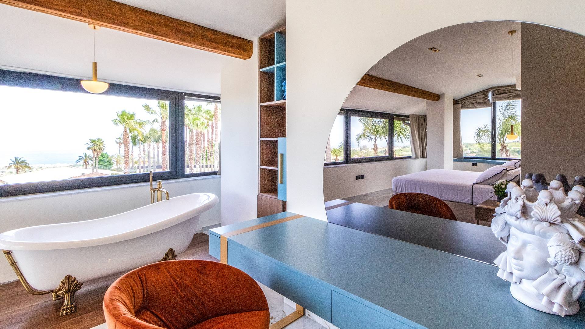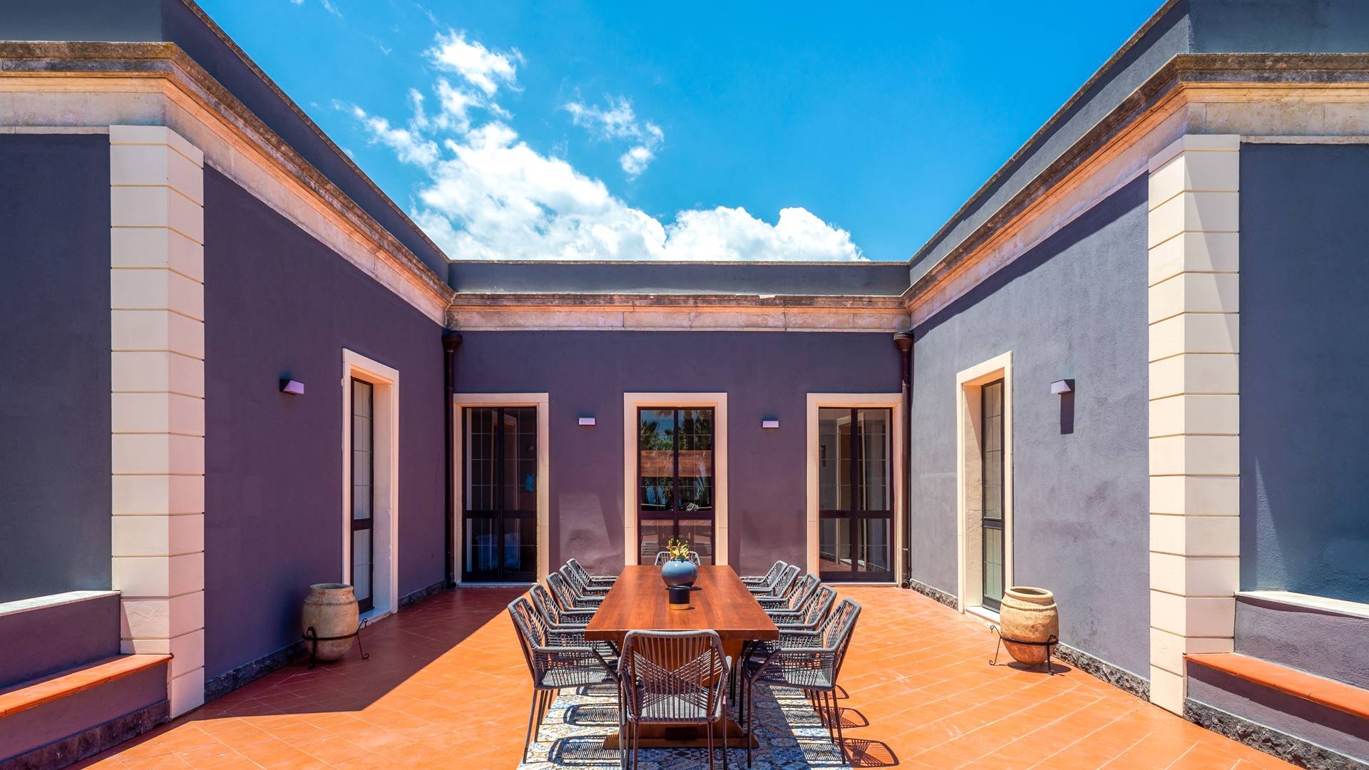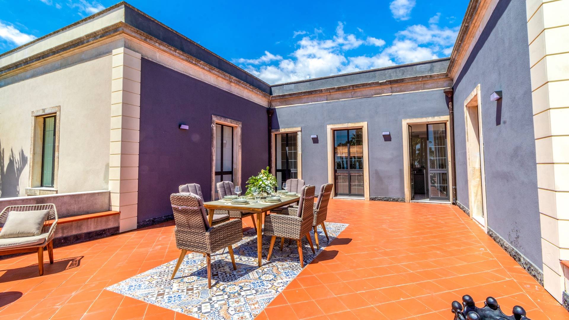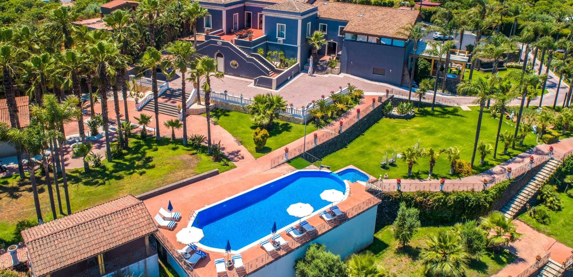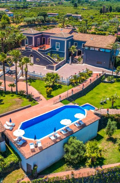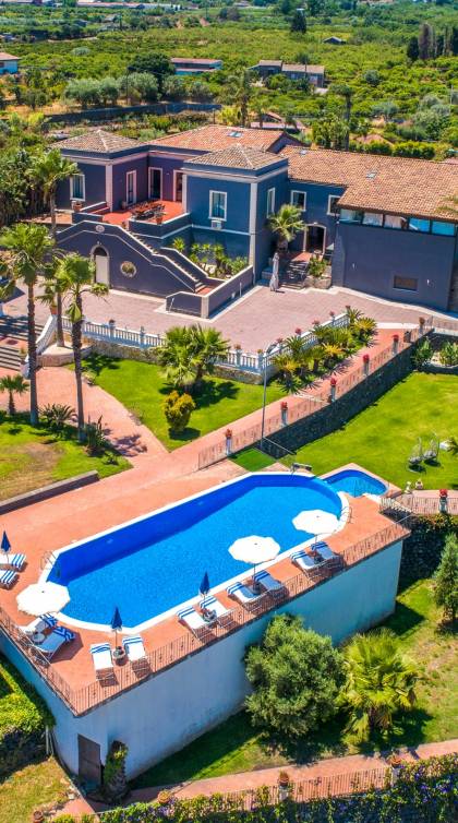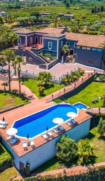 The resort was obtained from an ancient villa built in 1845 immersed in the rural nature of eastern Sicily and at the foot of the Etna Volcano and near the beautiful city of Acireale, it was the manor house that dominated the feud and the vineyard below, over the years it was divided and the structure was used for catering and catering until 2017.