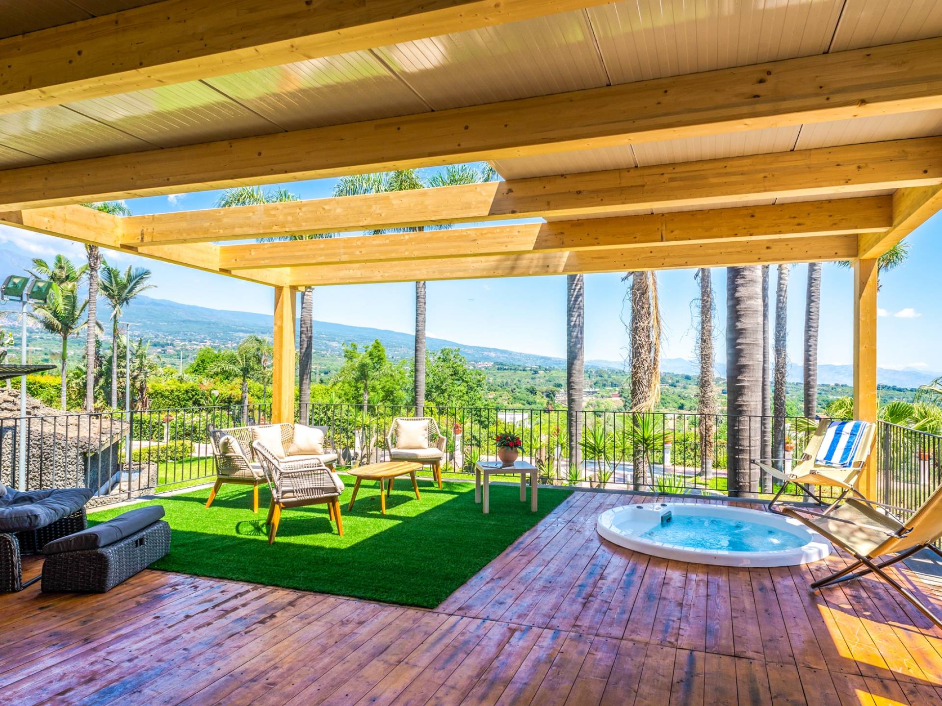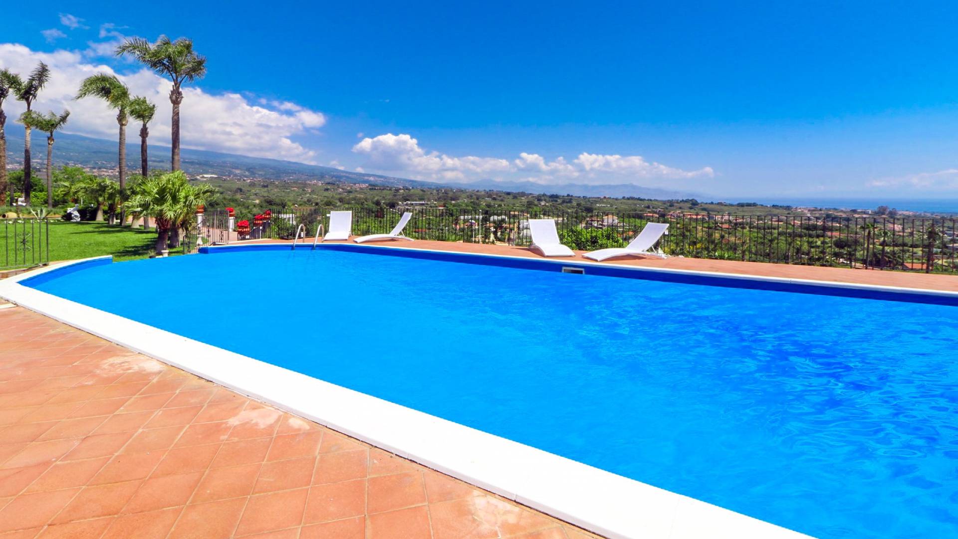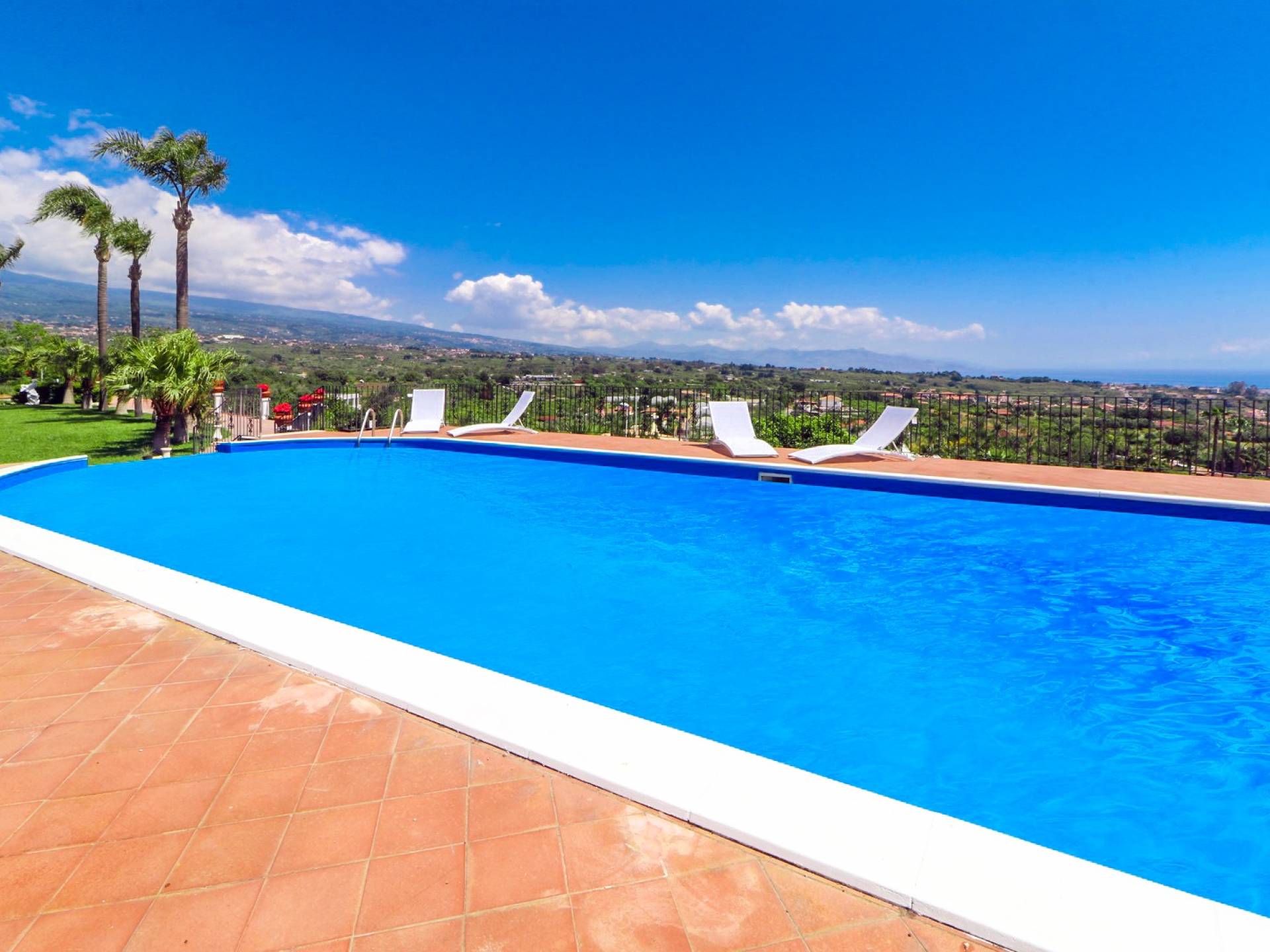 The villa has a wonderful view of the Ionian Sea and dominates the panoramic view of the Etna volcano. It is only 25 km from Catania International Airport, , the nearest town is 2 minutes by car, Taormina tourist town just 30 km away, and only 5 km from the highway exit. The structure is rented weekly to groups or individuals, but exceptionally also only for a single night.