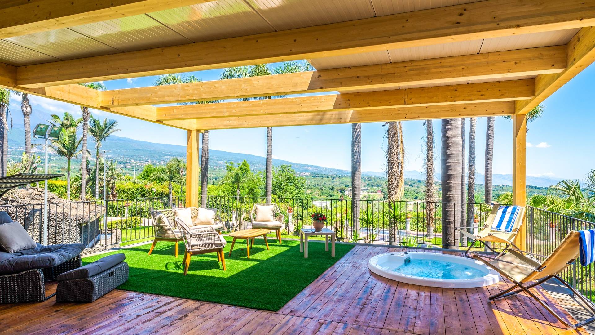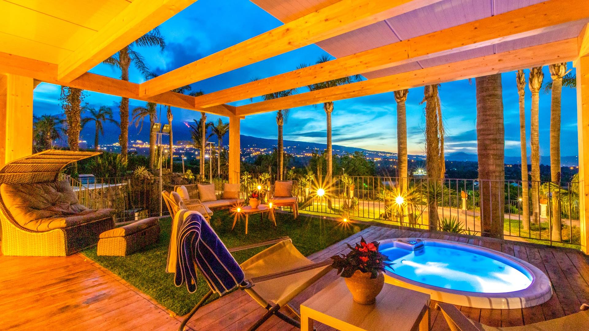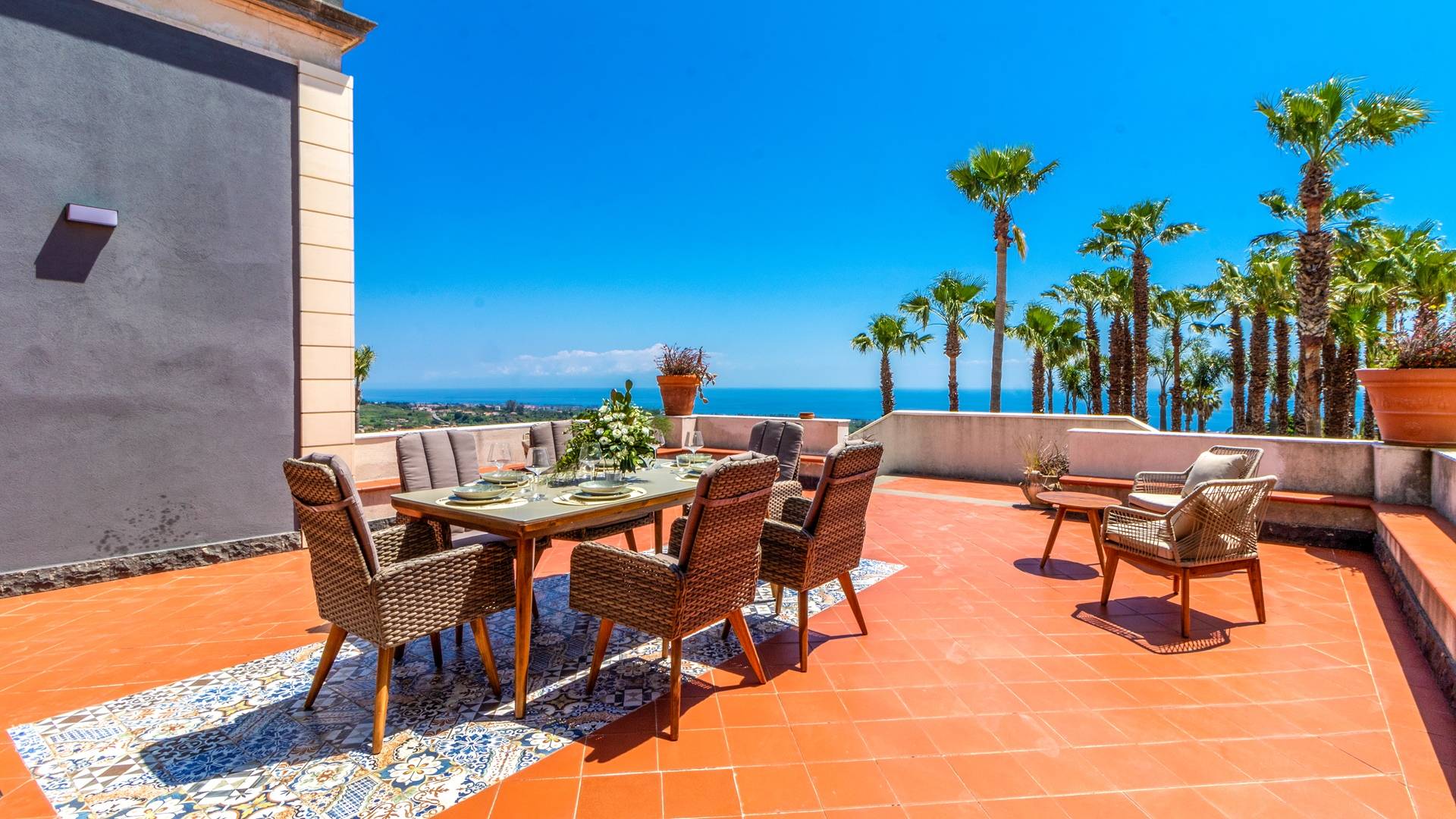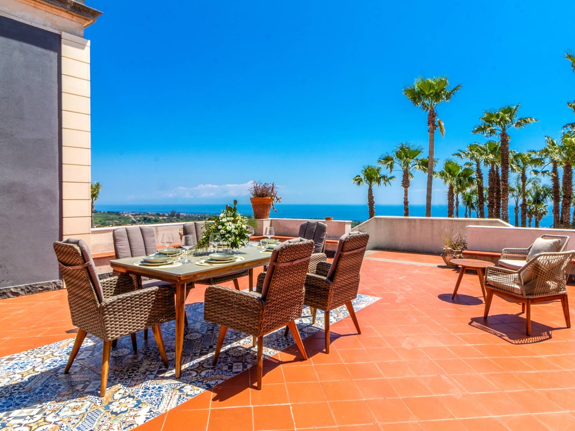 The villa has a wonderful view of the Ionian Sea and dominates the panoramic view of the Etna volcano. It is only 25 km from Catania International Airport, , the nearest town is 2 minutes by car, Taormina tourist town just 30 km away, and only 5 km from the highway exit. The structure is rented weekly to groups or individuals, but exceptionally also only for a single night.