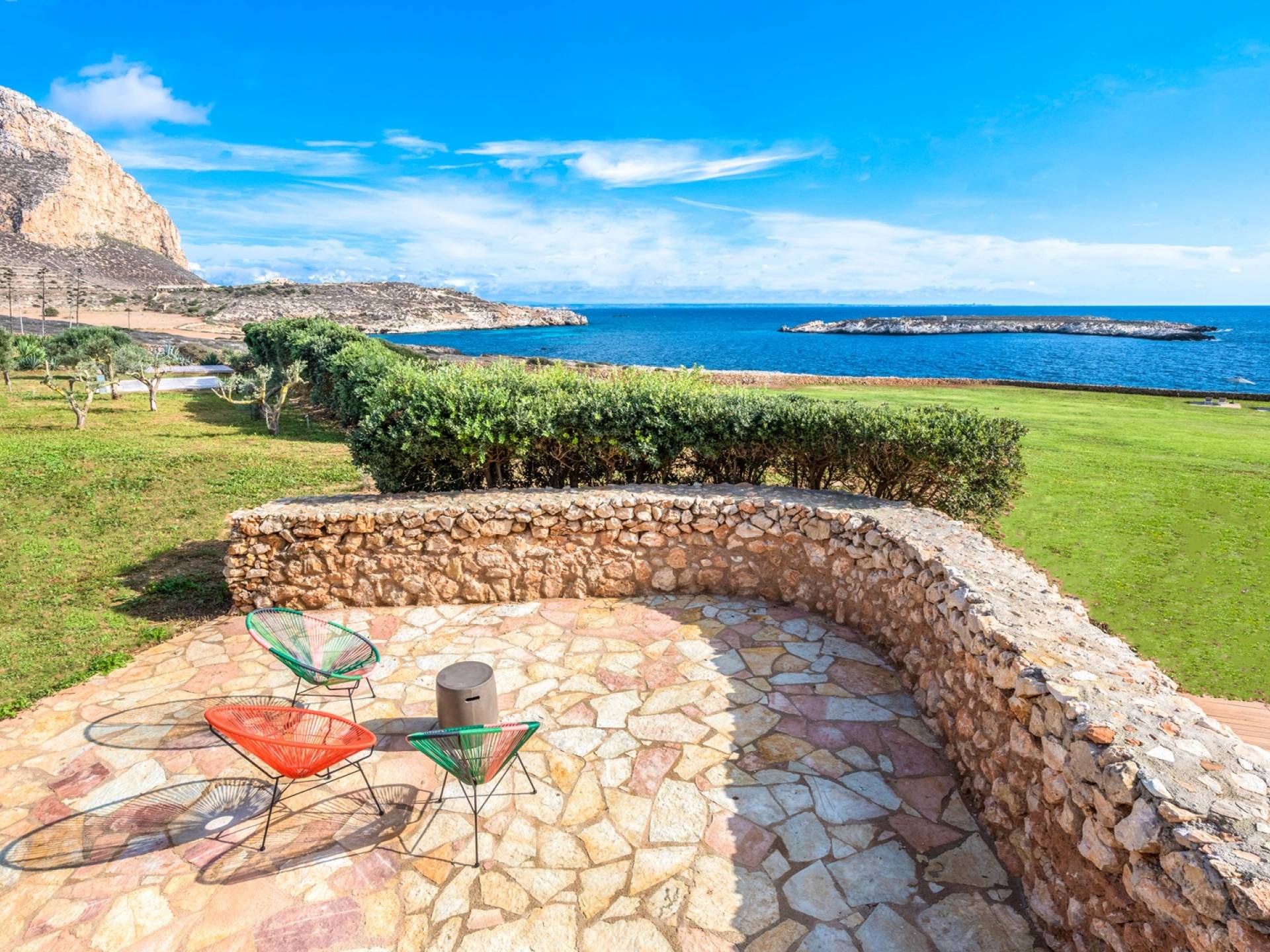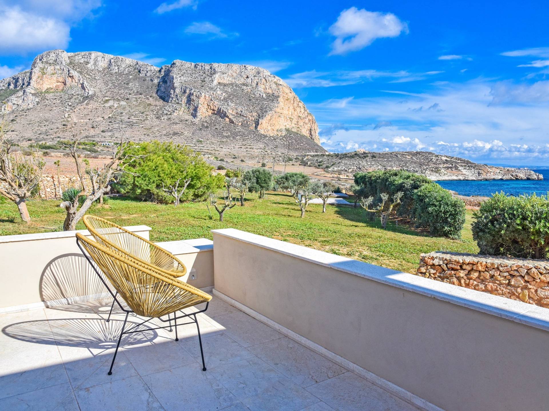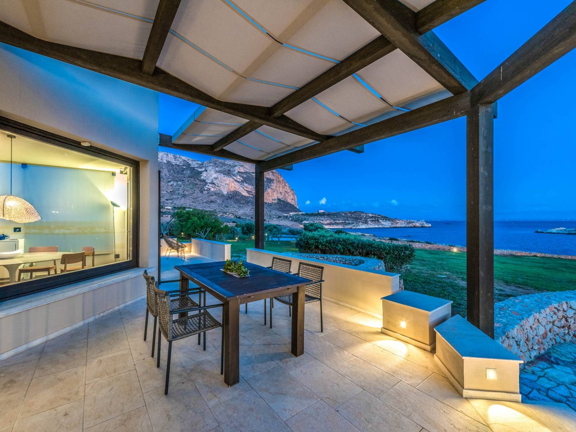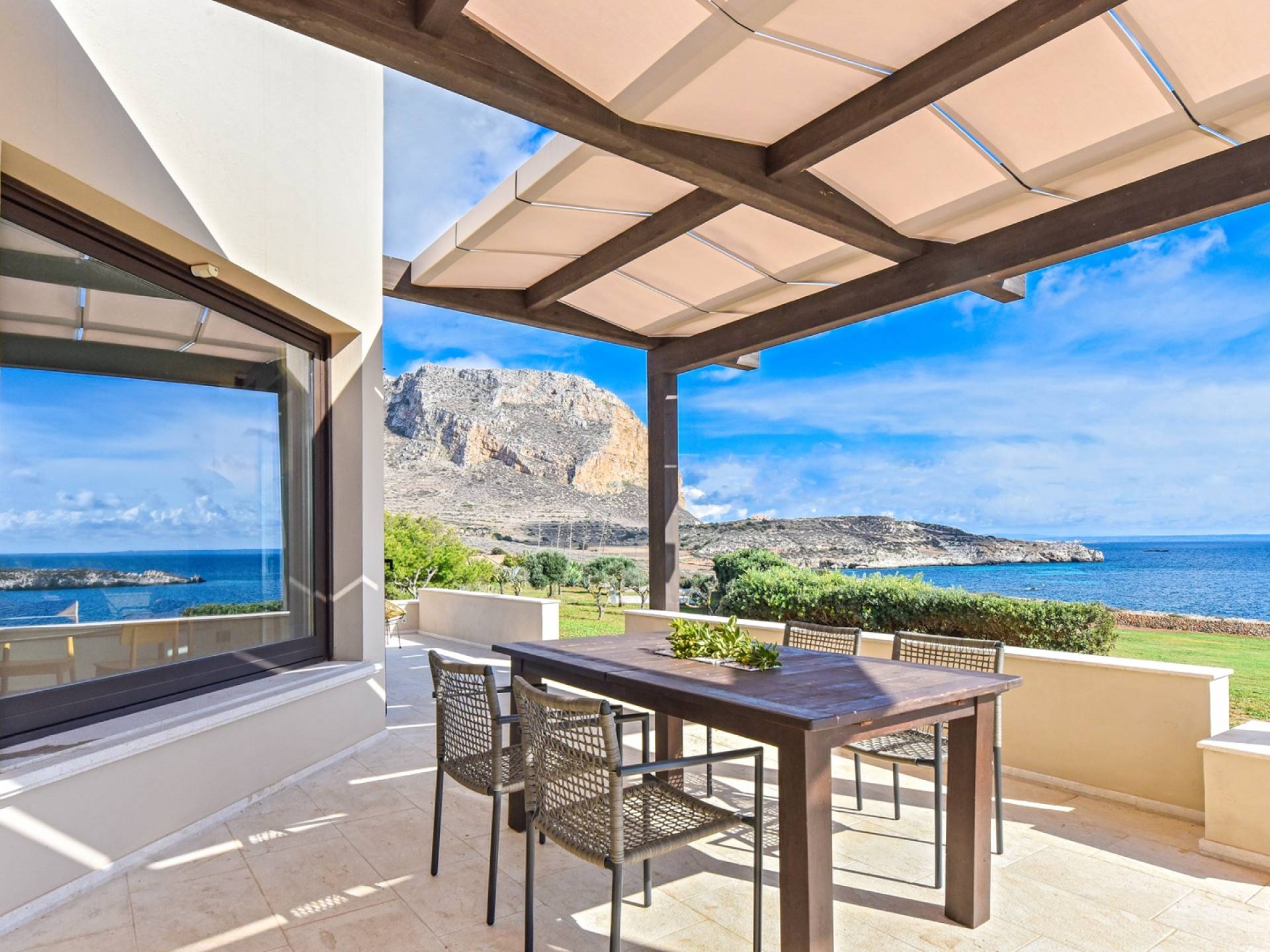 Set meters from a characteristic rocky beach, to which it has private access, this two-level house is built on the hedge of his hill. Placed in one of the most desirable parcels of the island, the internal and external spaces are designed with style, comfort, and refinement with the aim of making guests experience an unforgettable Sicily time, a few steps from the sea, with a view of the small islands of Prevent and Marettimo and only a thousand meters from the famous Cala Rotonda beach.