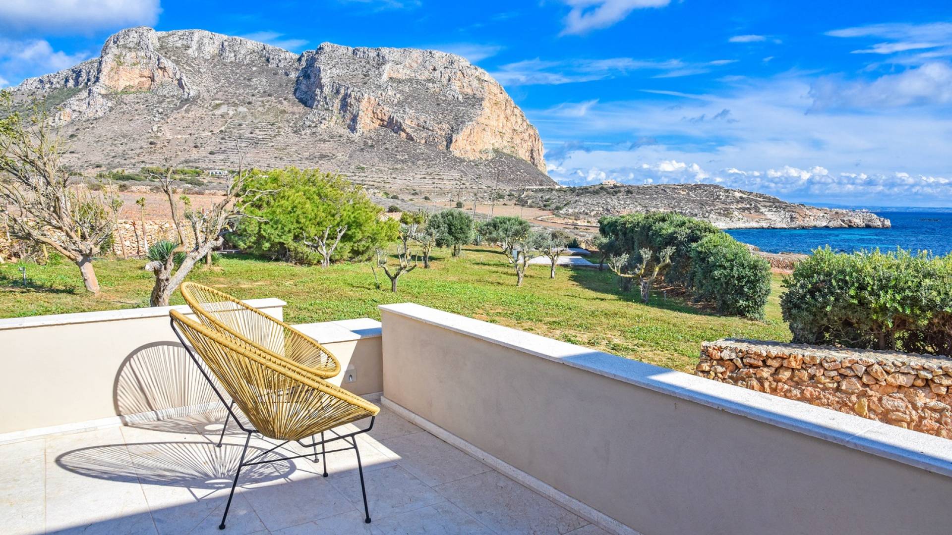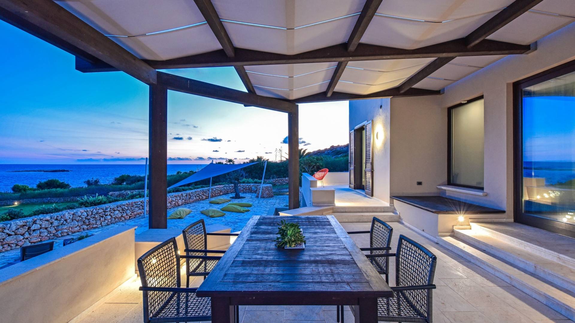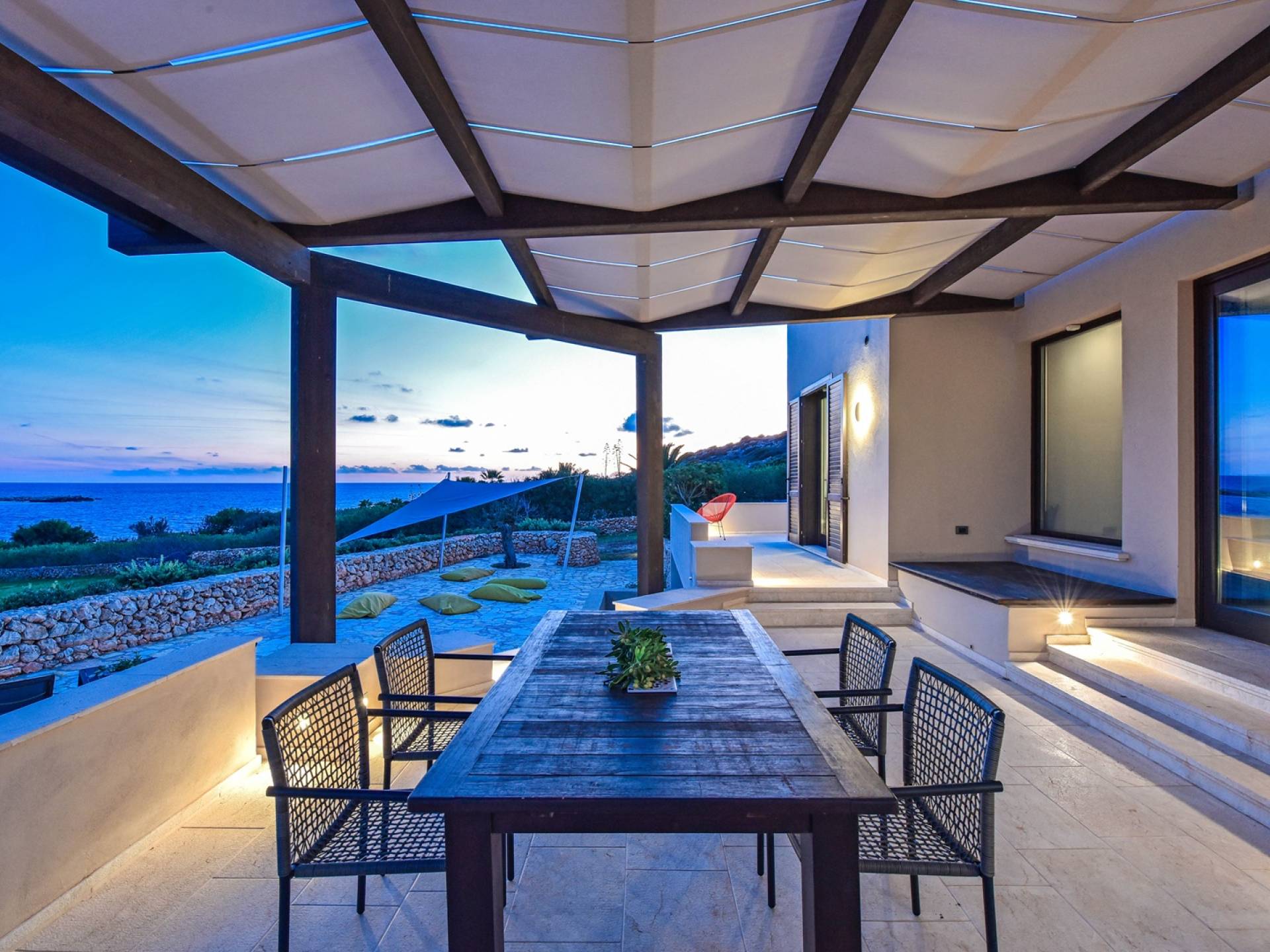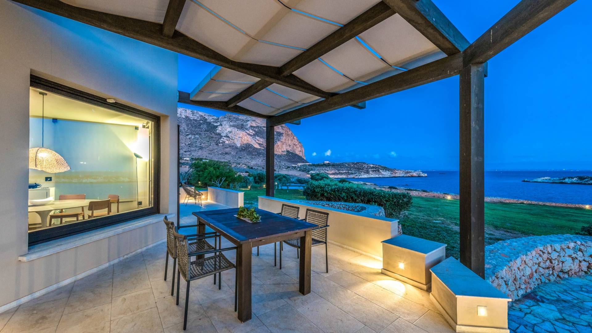 Set meters from a characteristic rocky beach, to which it has private access, this two-level house is built on the hedge of his hill. Placed in one of the most desirable parcels of the island, the internal and external spaces are designed with style, comfort, and refinement with the aim of making guests experience an unforgettable Sicily time, a few steps from the sea, with a view of the small islands of Prevent and Marettimo and only a thousand meters from the famous Cala Rotonda beach.