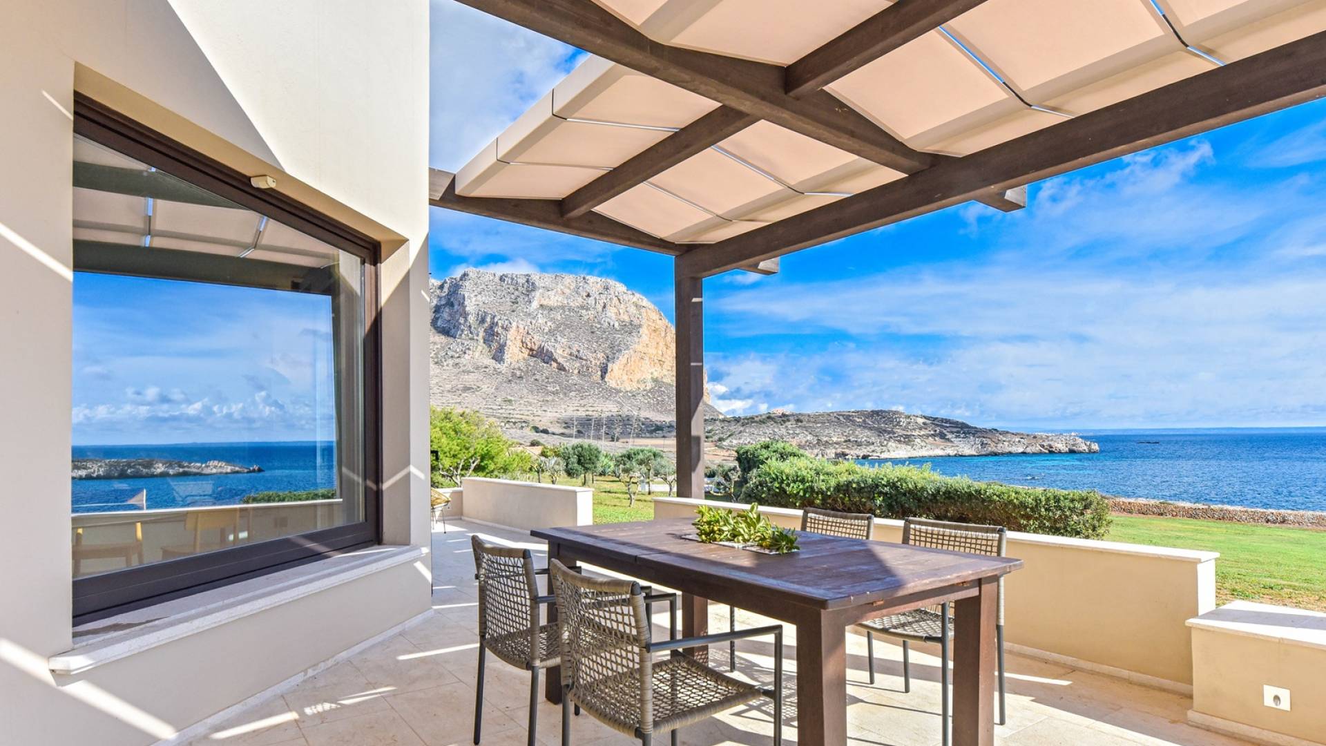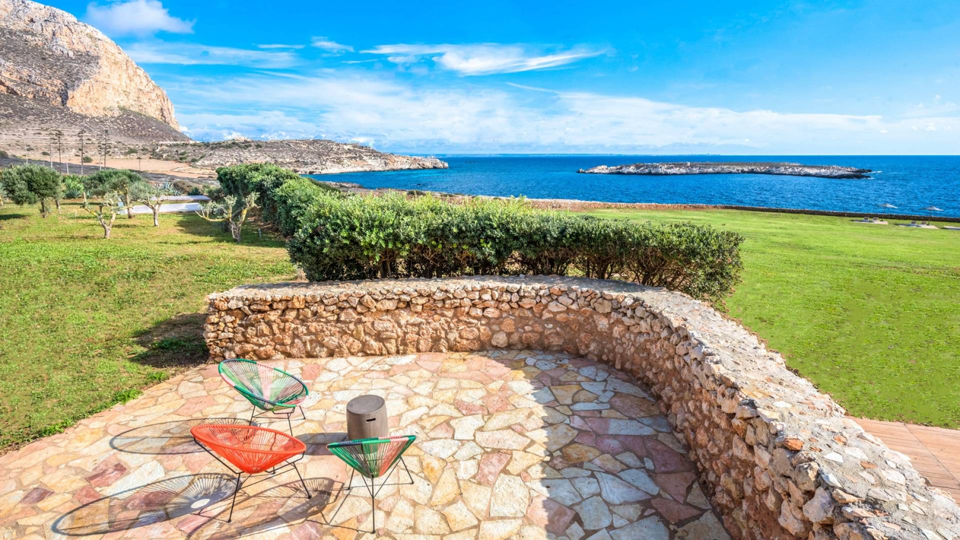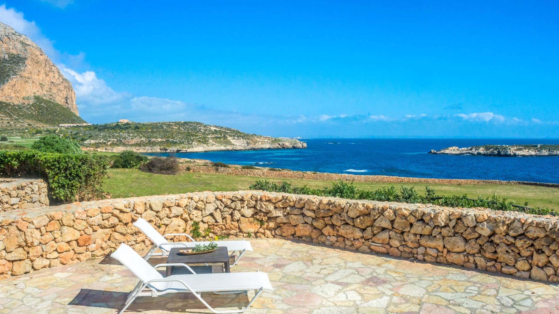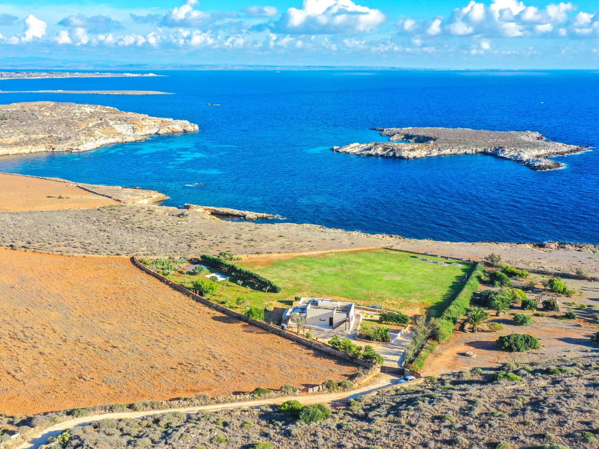 Set meters from a characteristic rocky beach, to which it has private access, this two-level house is built on the hedge of his hill. Placed in one of the most desirable parcels of the island, the internal and external spaces are designed with style, comfort, and refinement with the aim of making guests experience an unforgettable Sicily time, a few steps from the sea, with a view of the small islands of Prevent and Marettimo and only a thousand meters from the famous Cala Rotonda beach.
