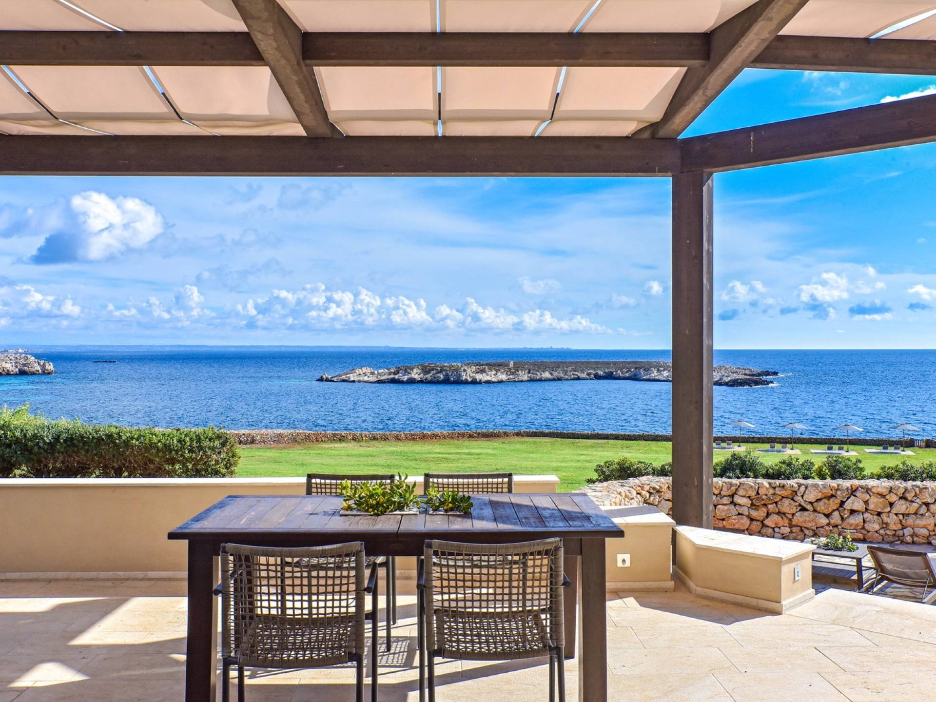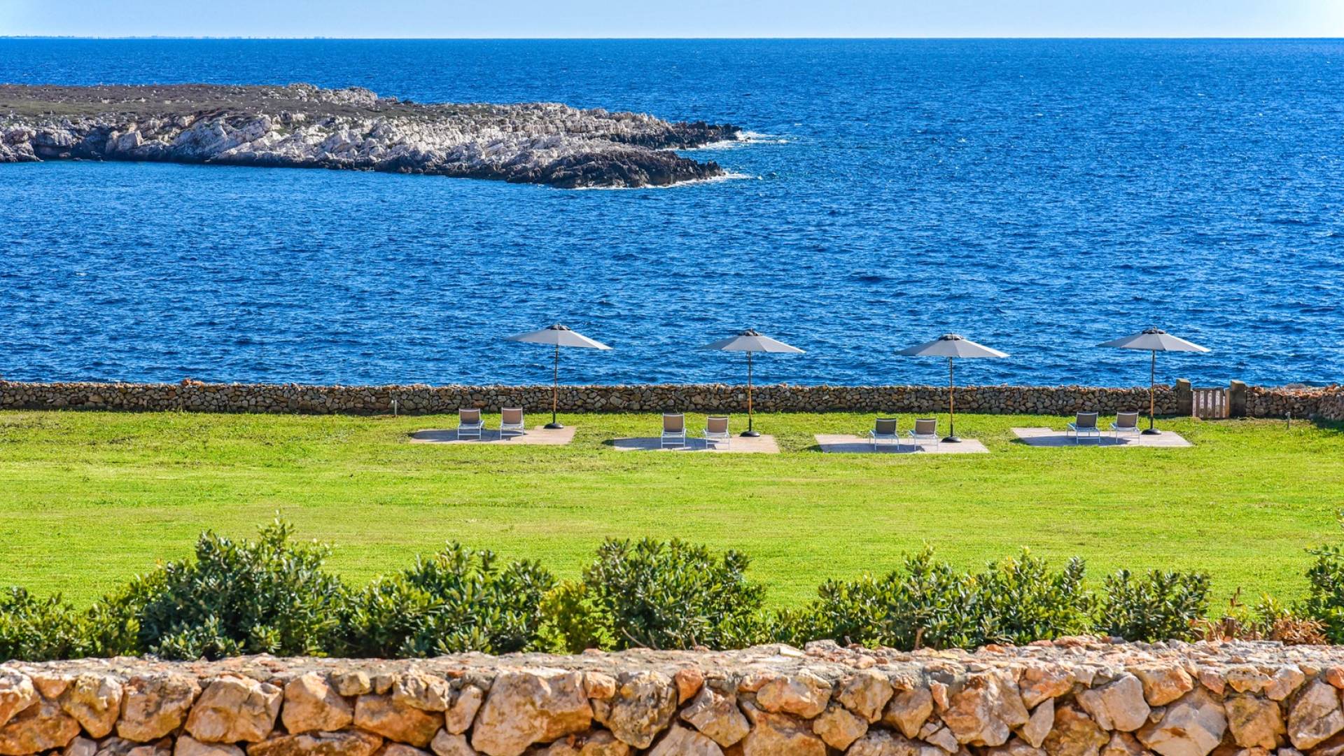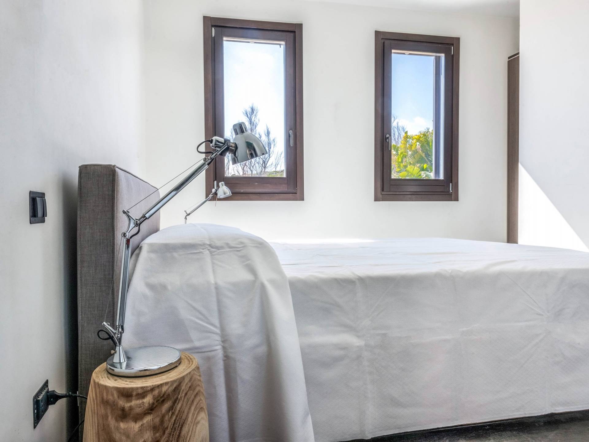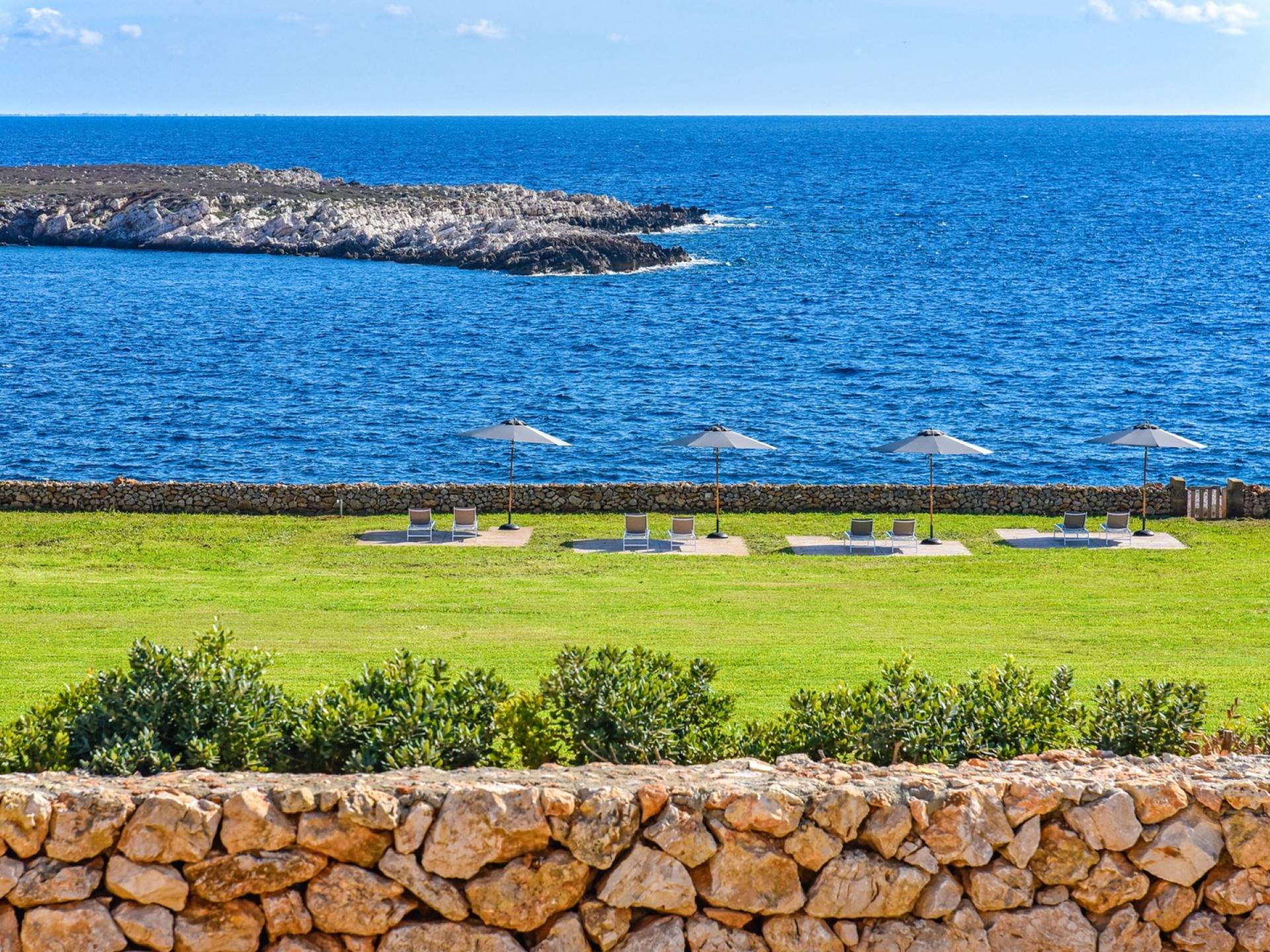 The interiors include a spacious living room, a sea view dining area with glass wall windows, and 2 eat-in well-equipped kitchens, the interior of the property measures 300 square meters and it can accommodate a total of 12 adults. A shelter of design and minimalism, that protects the inner environment with clean spaces and design items, in direct contraposition to the untouched sea life nature surrounding the house, with sunlight and sea breeze.