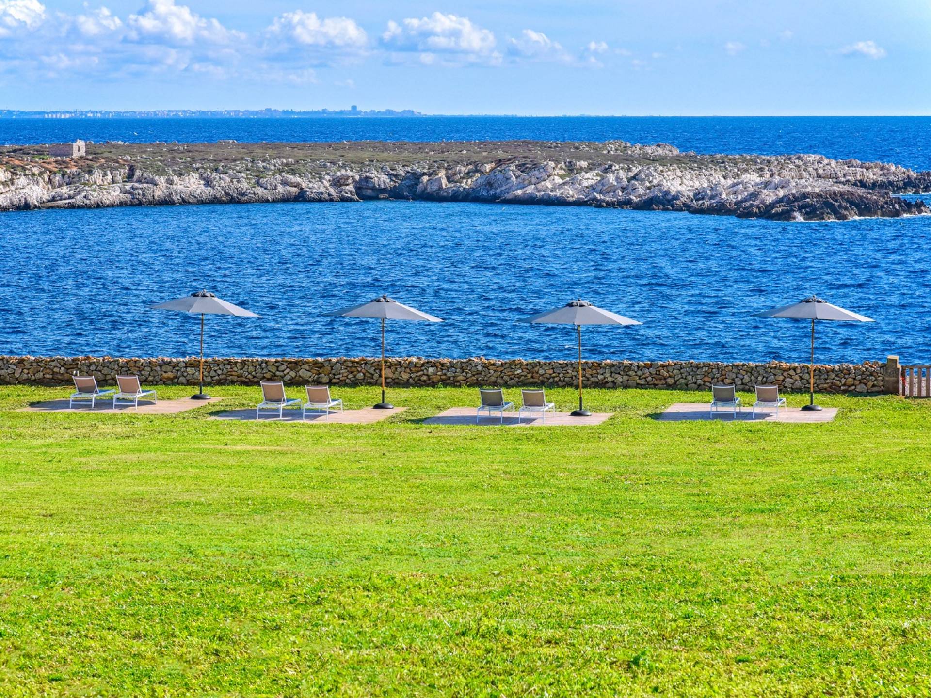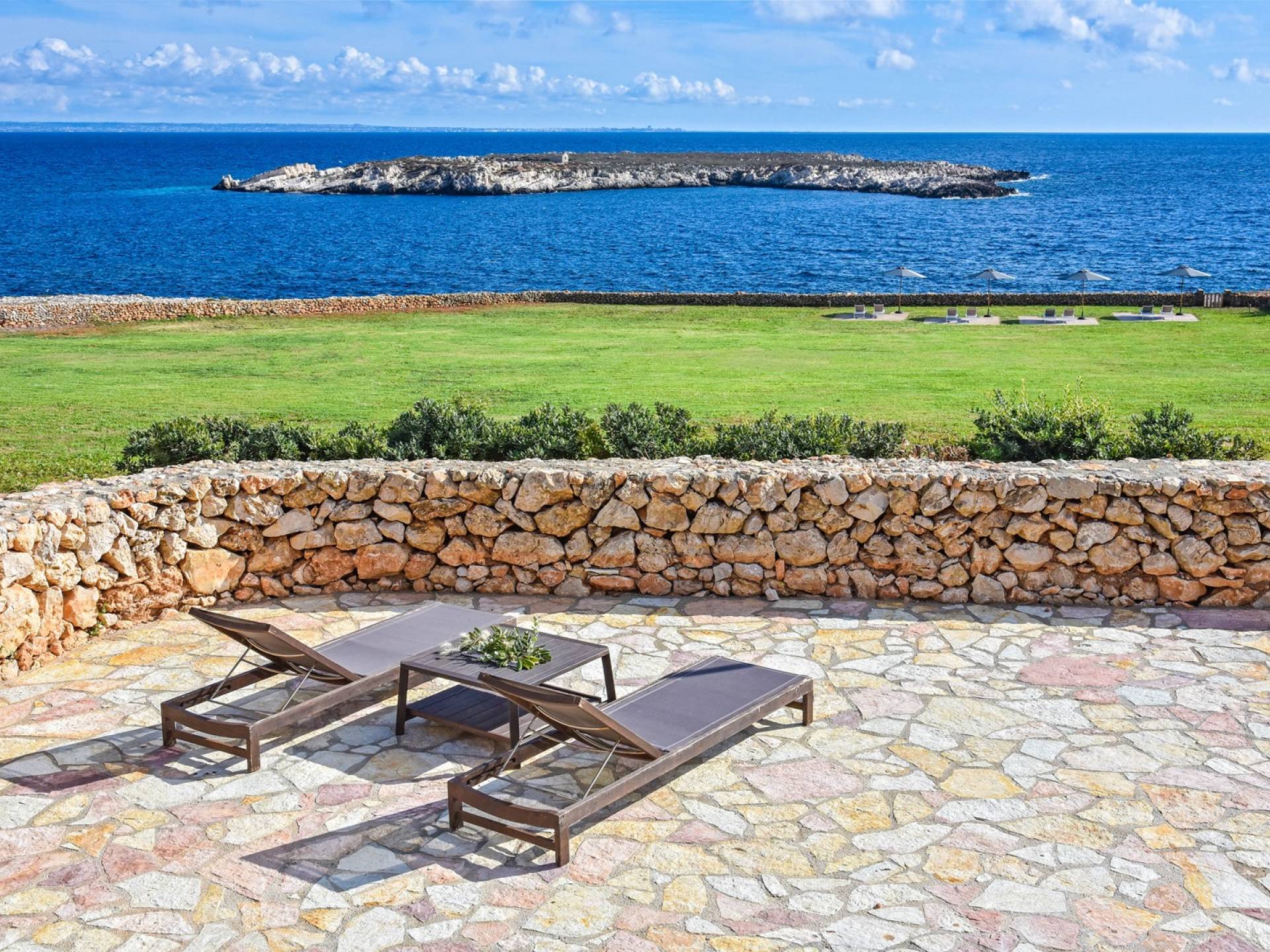 On the sweeping grounds, there’s a solarium area with umbrellas and sun-beds right next to the entrance to the beach. Hidden away, yet not far from the town center, this villa offers six bedrooms decorated in elegant style with relaxing white walls, contemporary fabrics, and contemporary, clean furnishing. The estate includes 1 hectare of private gardens and wide terraces, its panoramic alfresco areas are the ideal place to relax in the sun whilst being rocked by the sound of the sea