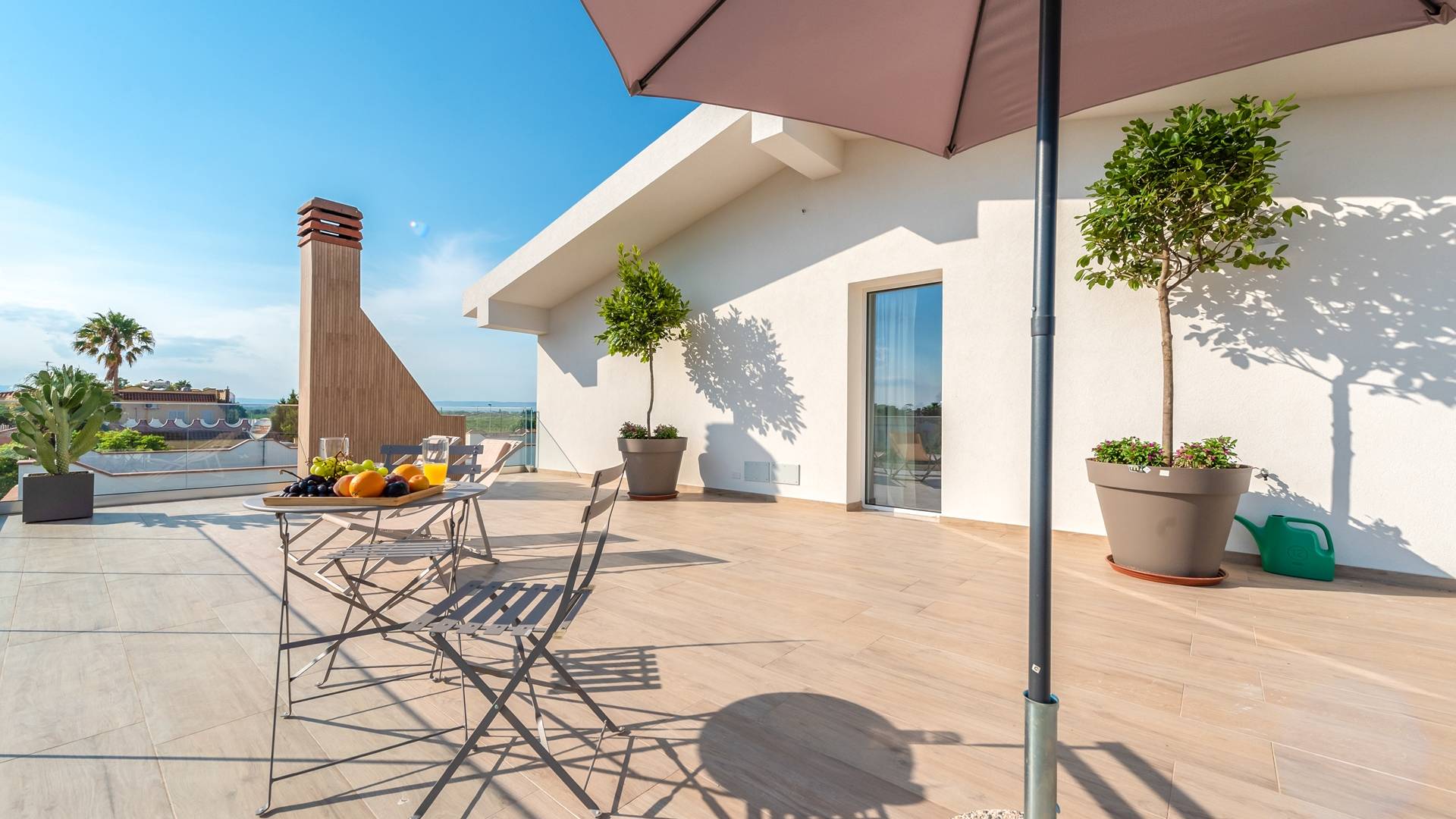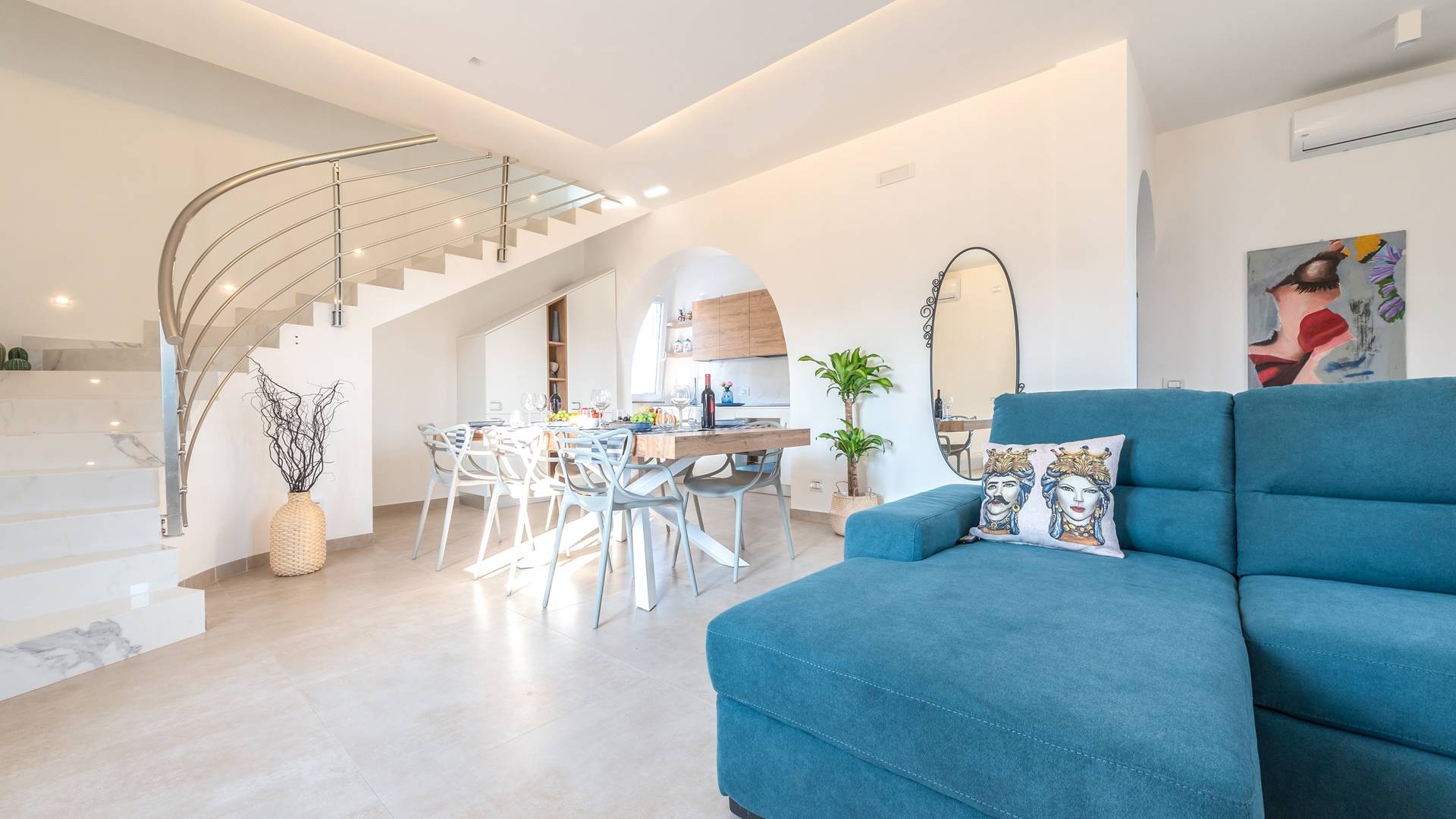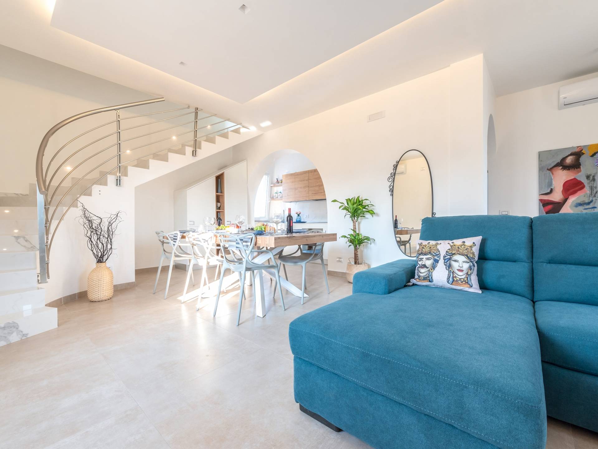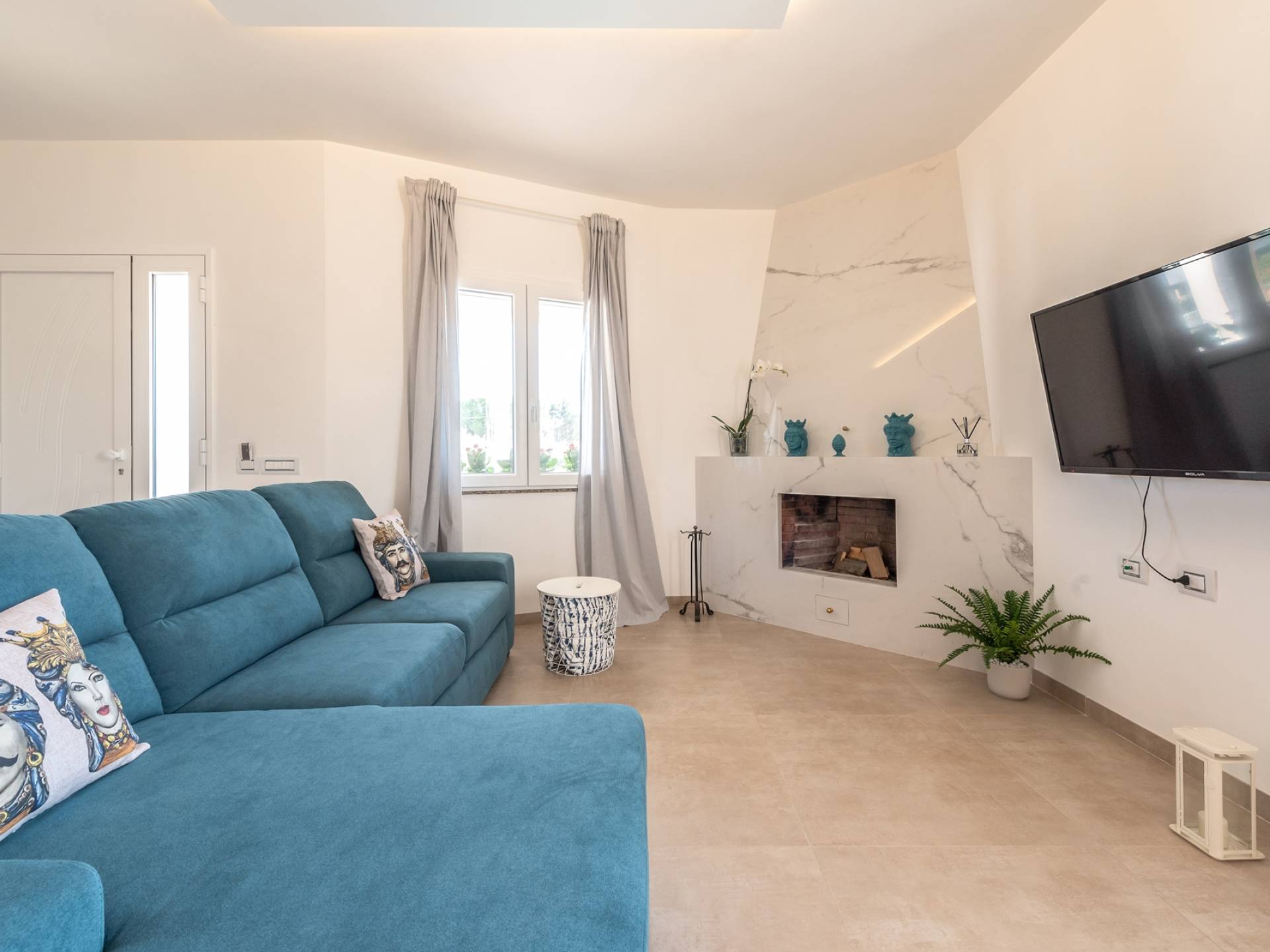 The staircase in the living room leads to the upper floor, where there are 2 other bedrooms, 1 bathroom with chromotherapy, and a splendid terrace overlooking the pool and with the sea visible in the background of the panorama. Outside there is the parking area, the beautiful swimming pool, and an outdoor kitchen also equipped with a wood oven and a third bathroom. The property is located in Fontane Bianche, just 300 meters from the rocks and 1km from the sandy beach.