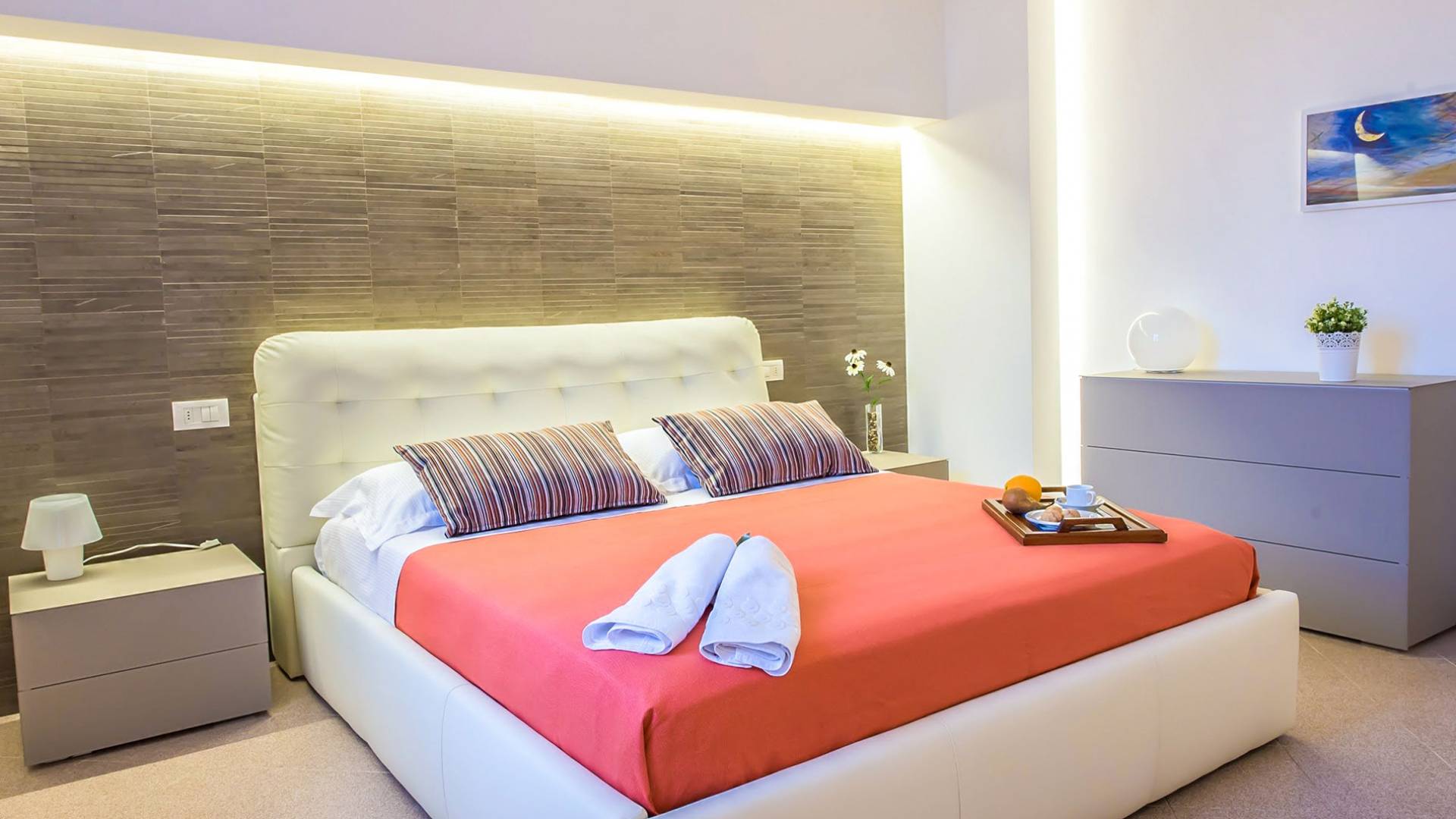 Villa Solea Sicily is uniquely designed to sleep ten people comfortably, with seven bedrooms. Located on the top floor is the master suite, furnished with comfortable beds and elegant bedroom furniture. Watch the light dance across the waves of the Mediterranean as the sunsets from the comfort of your private balcony, a perfect place for a romantic evening. and breathtaking views of the sea.