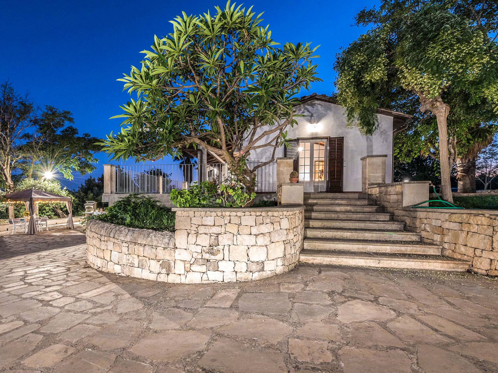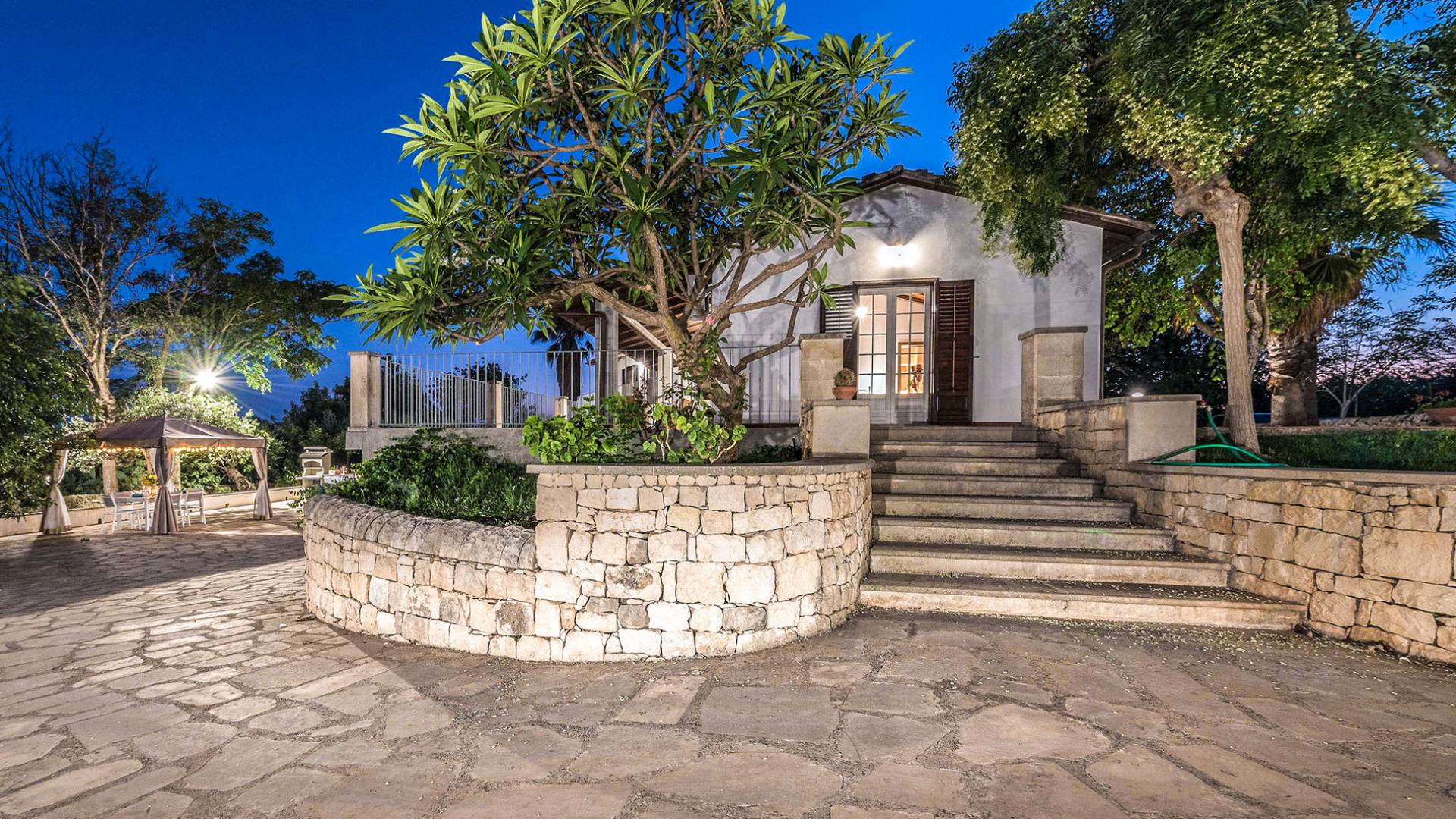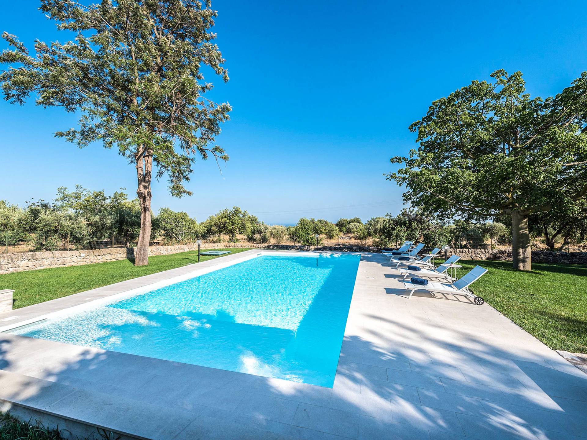 Villa Althea Sicily is a beautiful property overlooking the sea and the countryside, near Pozzallo, just 4km from the beach. The house, consisting of 280sqm, has been renovated in 2018 and offers 5 spacious bedrooms, 5 bathrooms, a very comfortable kitchen, and a large living room. The property is located in a 3000 sqm amazing garden with beautiful carob trees and a stunning swimming pool.