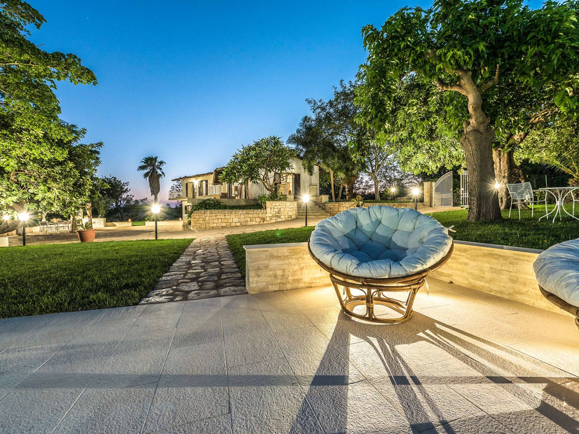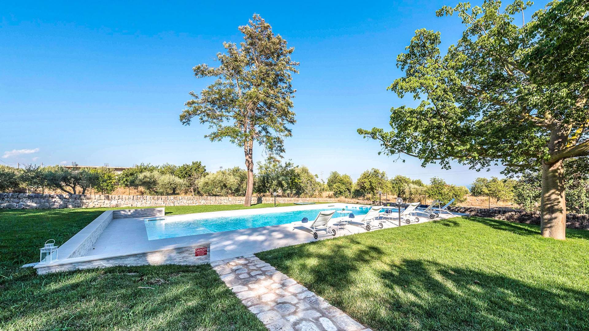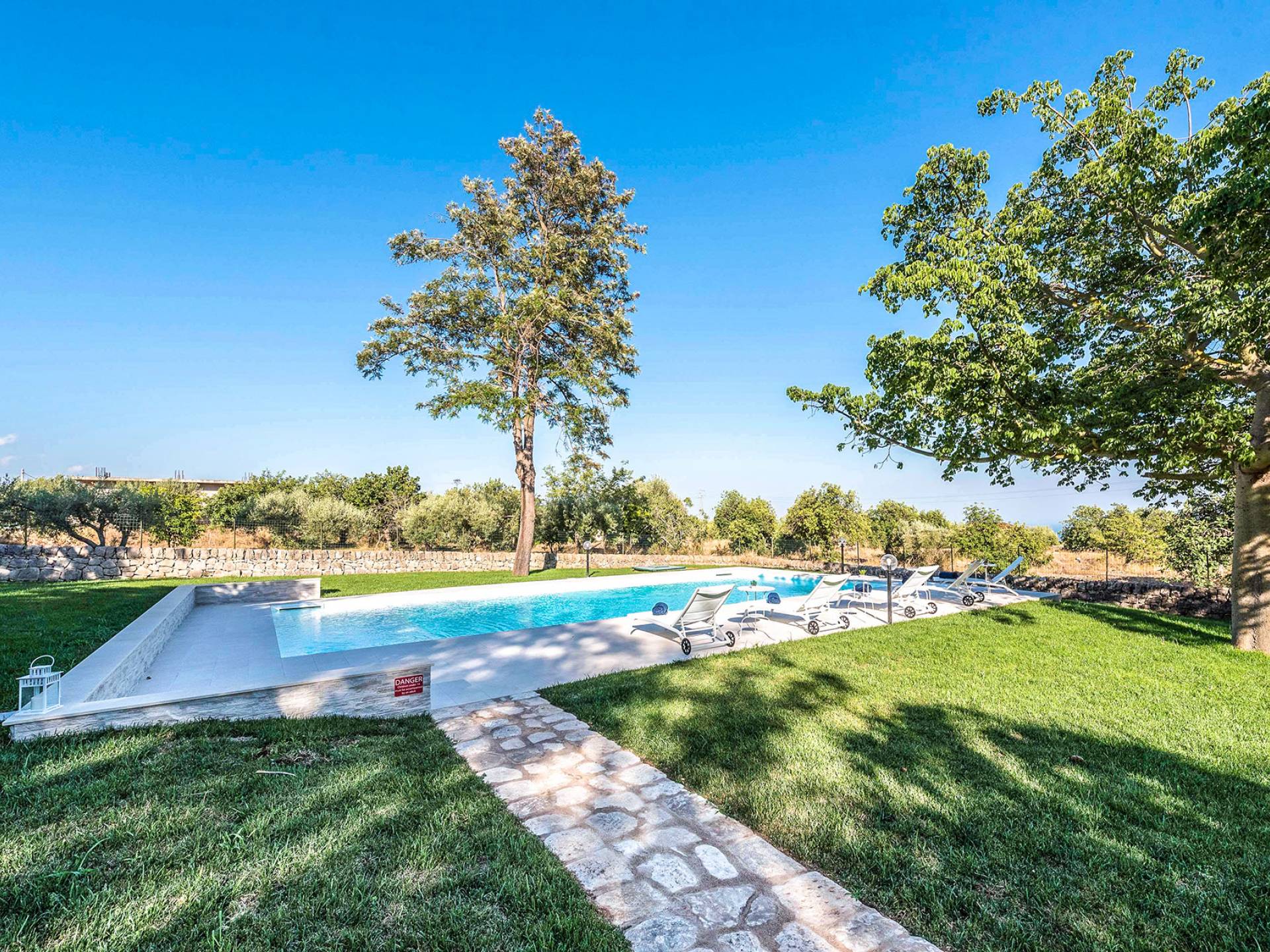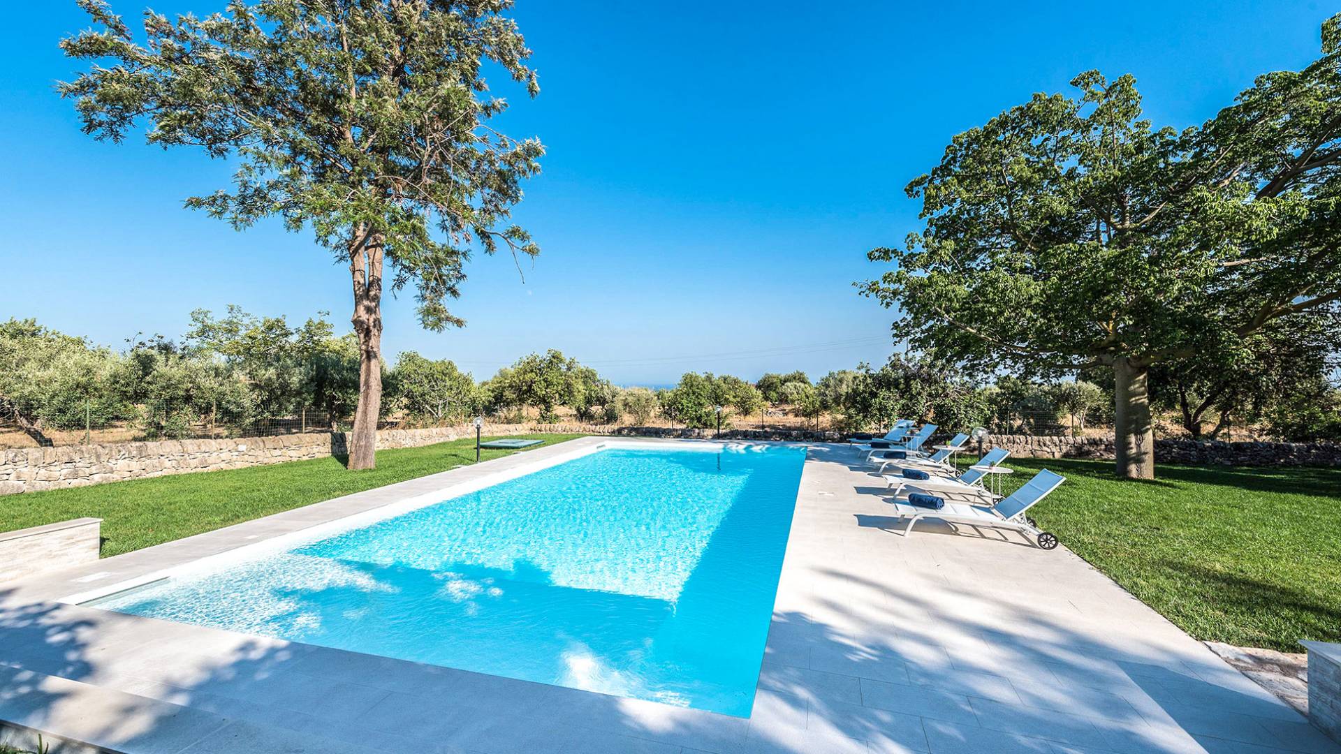 Villa Althea Sicily is a beautiful property overlooking the sea and the countryside, near Pozzallo, just 4km from the beach. The house, consisting of 280sqm, has been renovated in 2018 and offers 5 spacious bedrooms, 5 bathrooms, a very comfortable kitchen, and a large living room. The property is located in a 3000 sqm amazing garden with beautiful carob trees and a stunning swimming pool.
