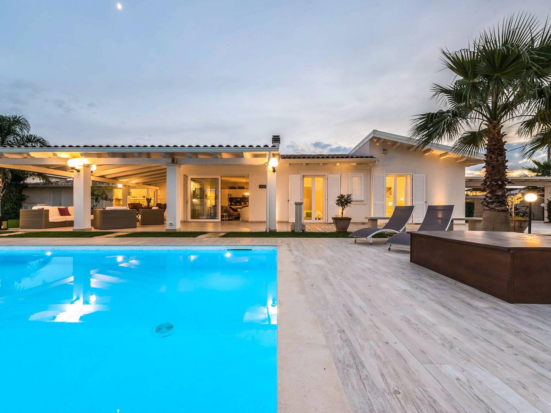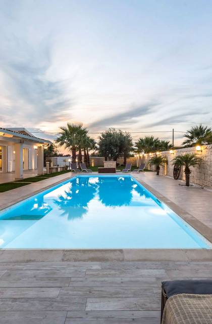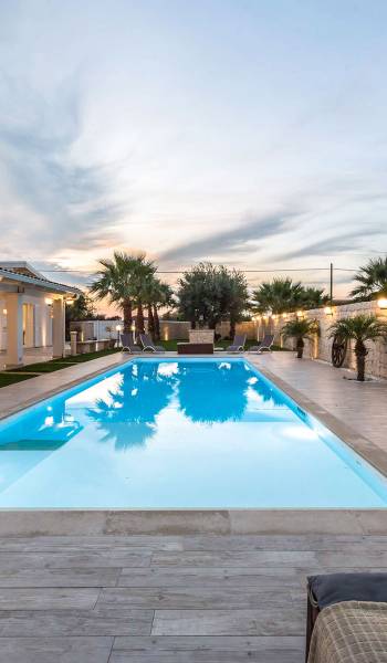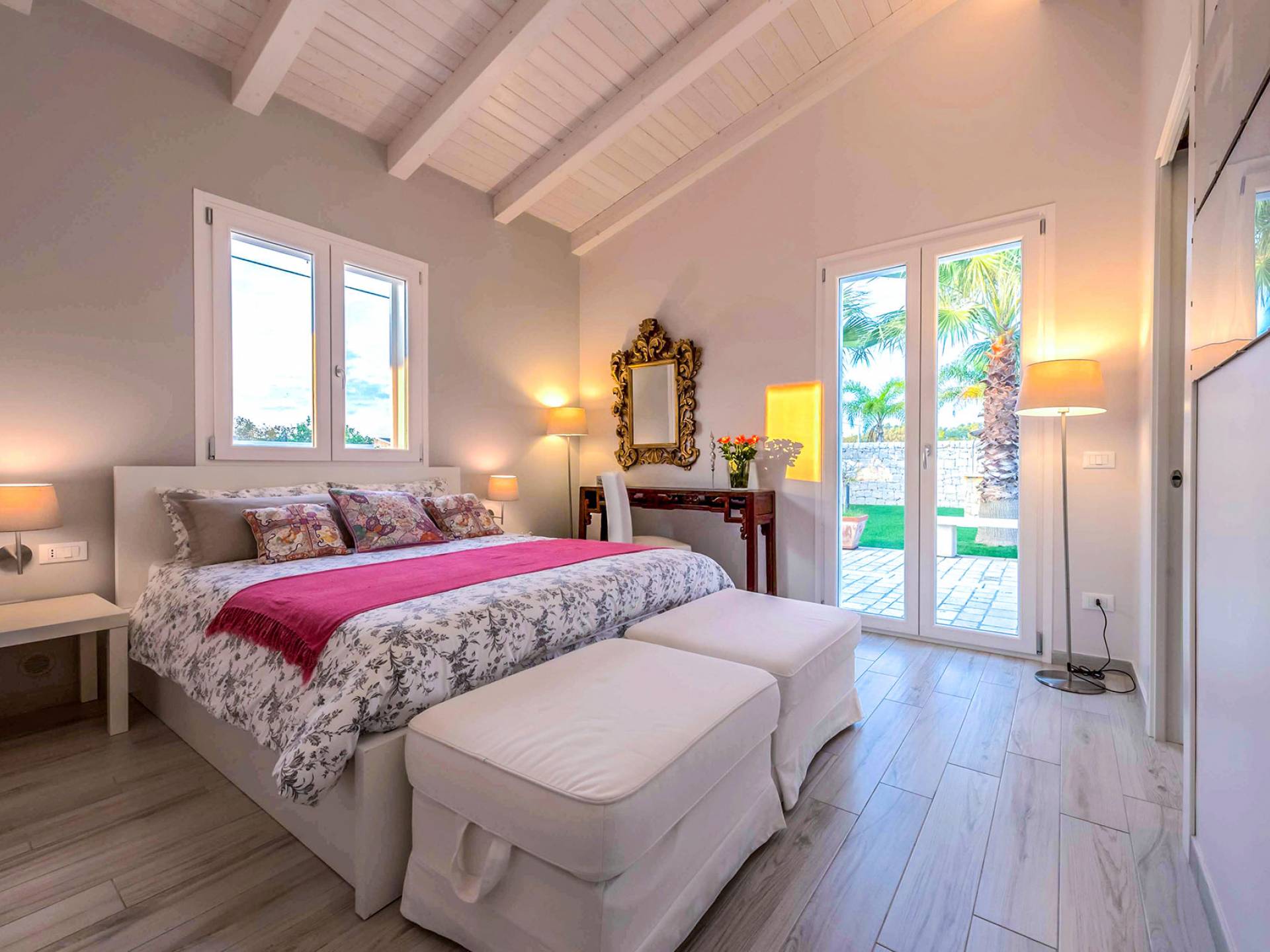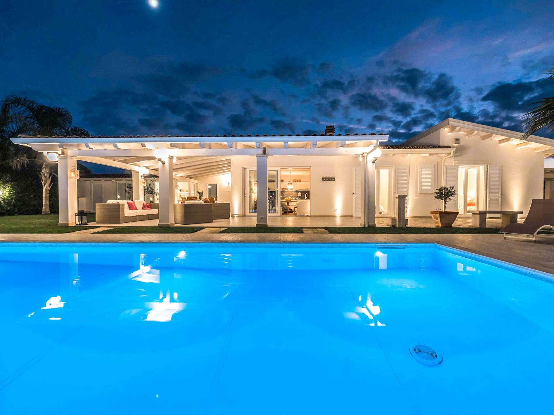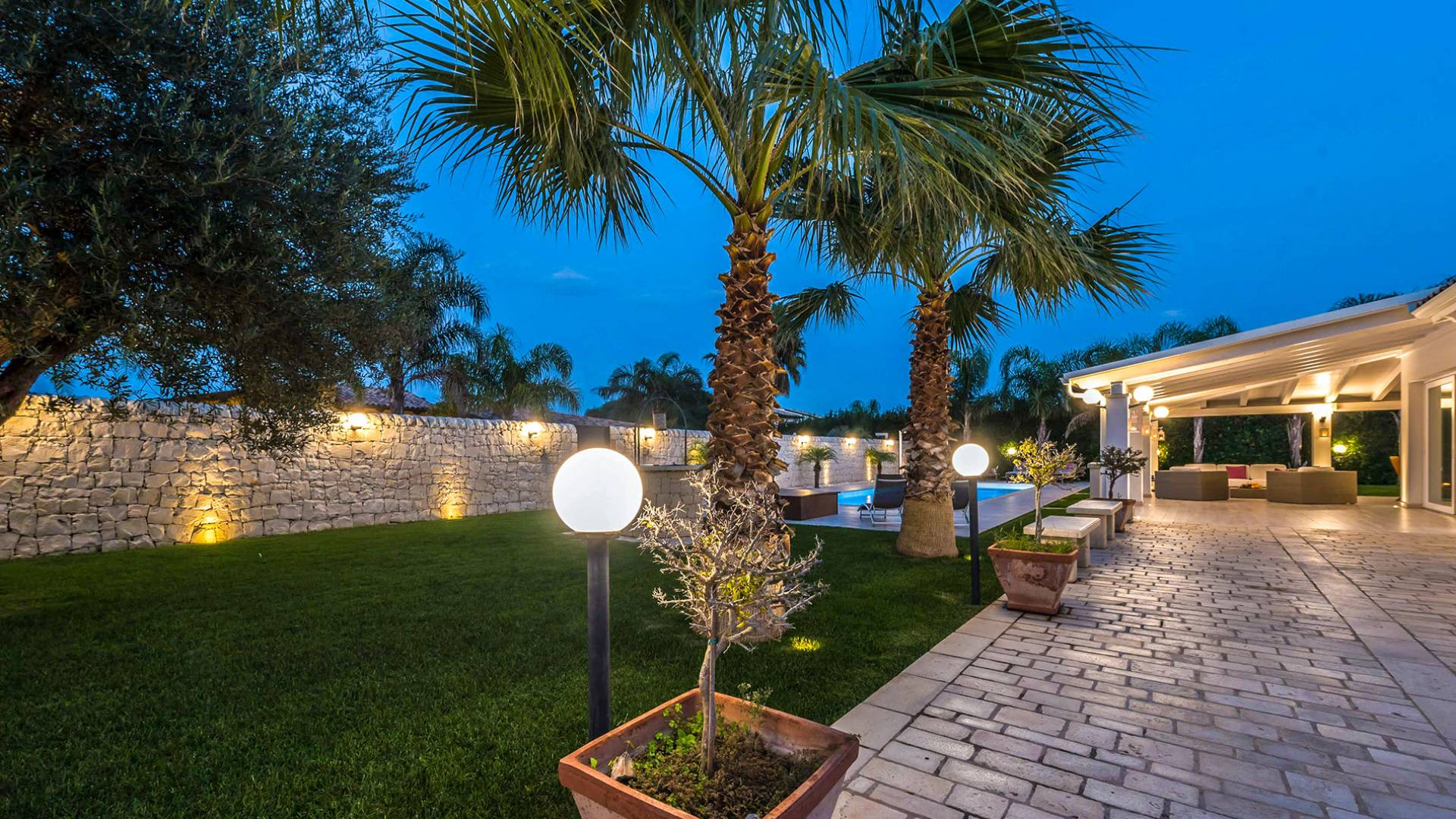 Villa le Palme is a newly built and elegant property a few steps from the sandy beach of Santa Maria del Focallo. Attention has been paid to the choice of furniture, interior, and exterior lighting, details, colors.