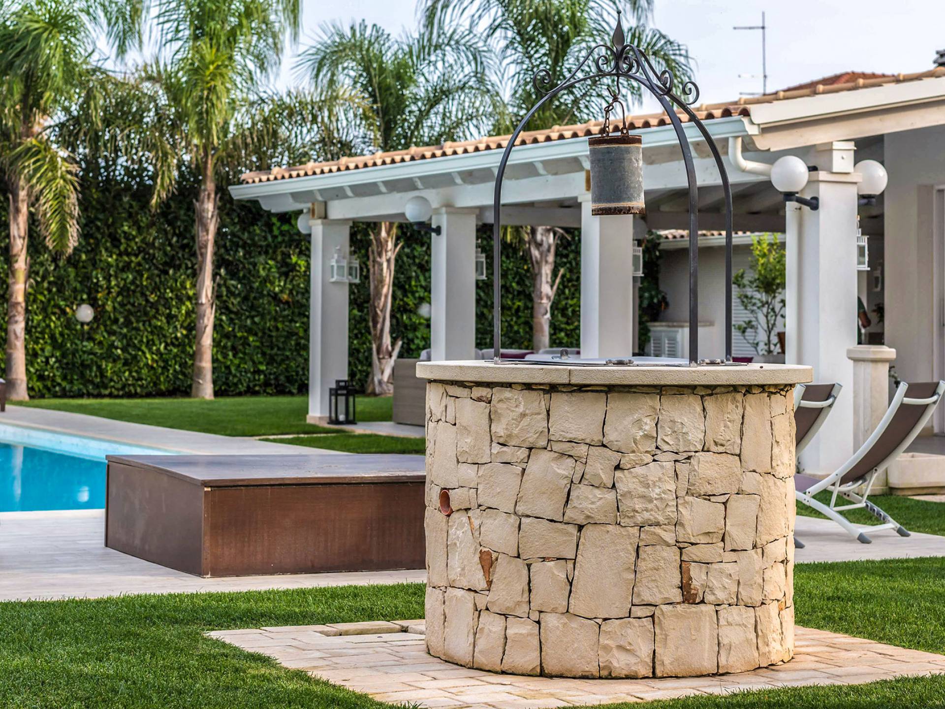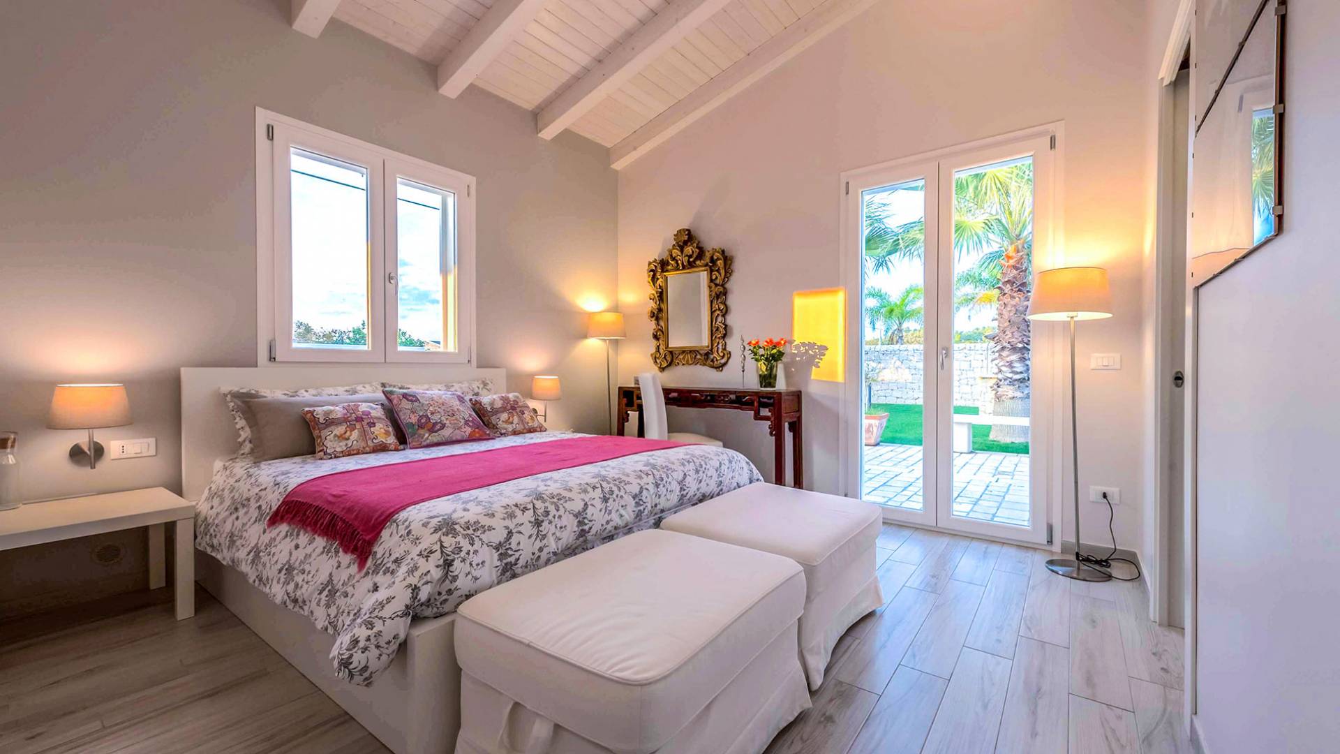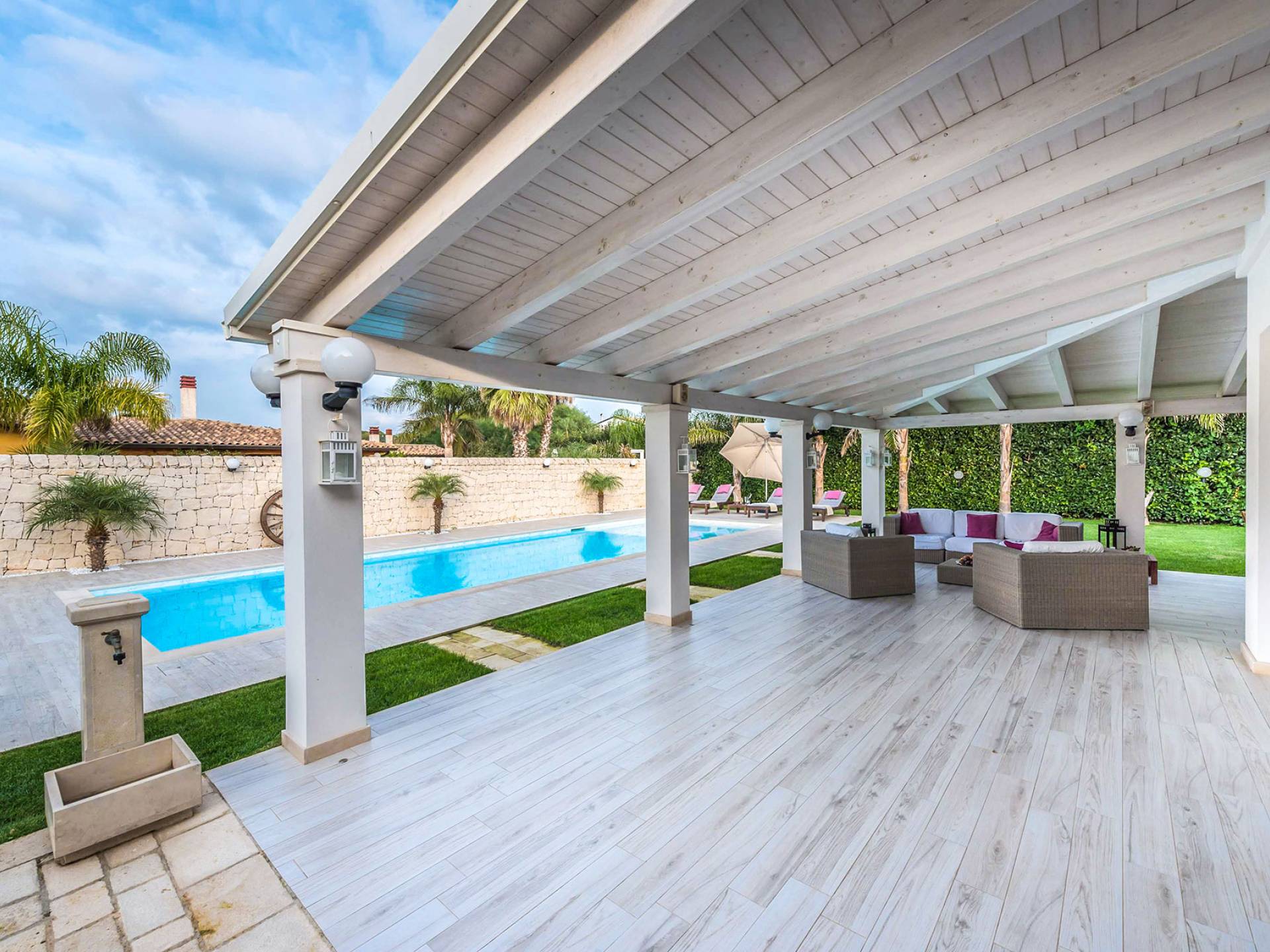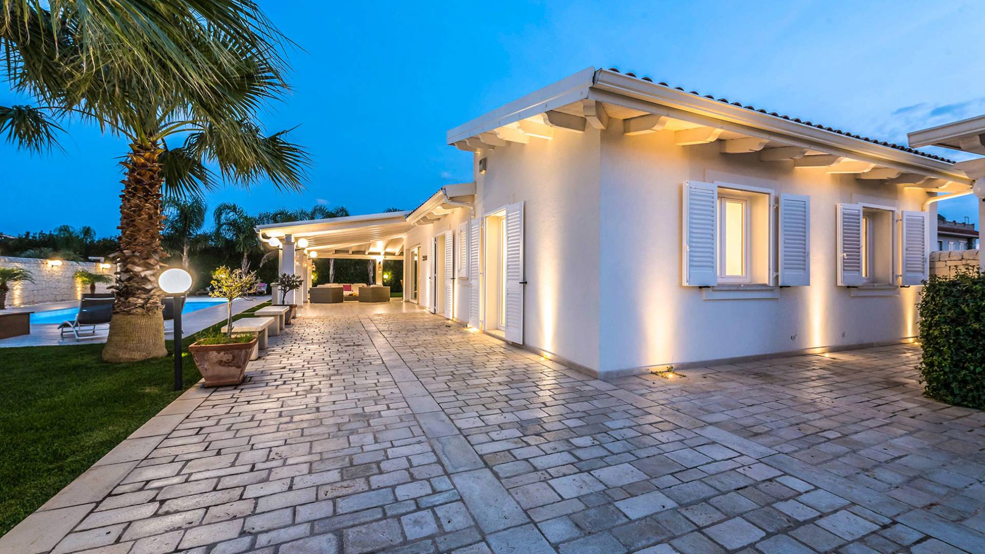 Villa le Palme is a newly built and elegant property a few steps from the sandy beach of Santa Maria del Focallo. Attention has been paid to the choice of furniture, interior, and exterior lighting, details, colors.