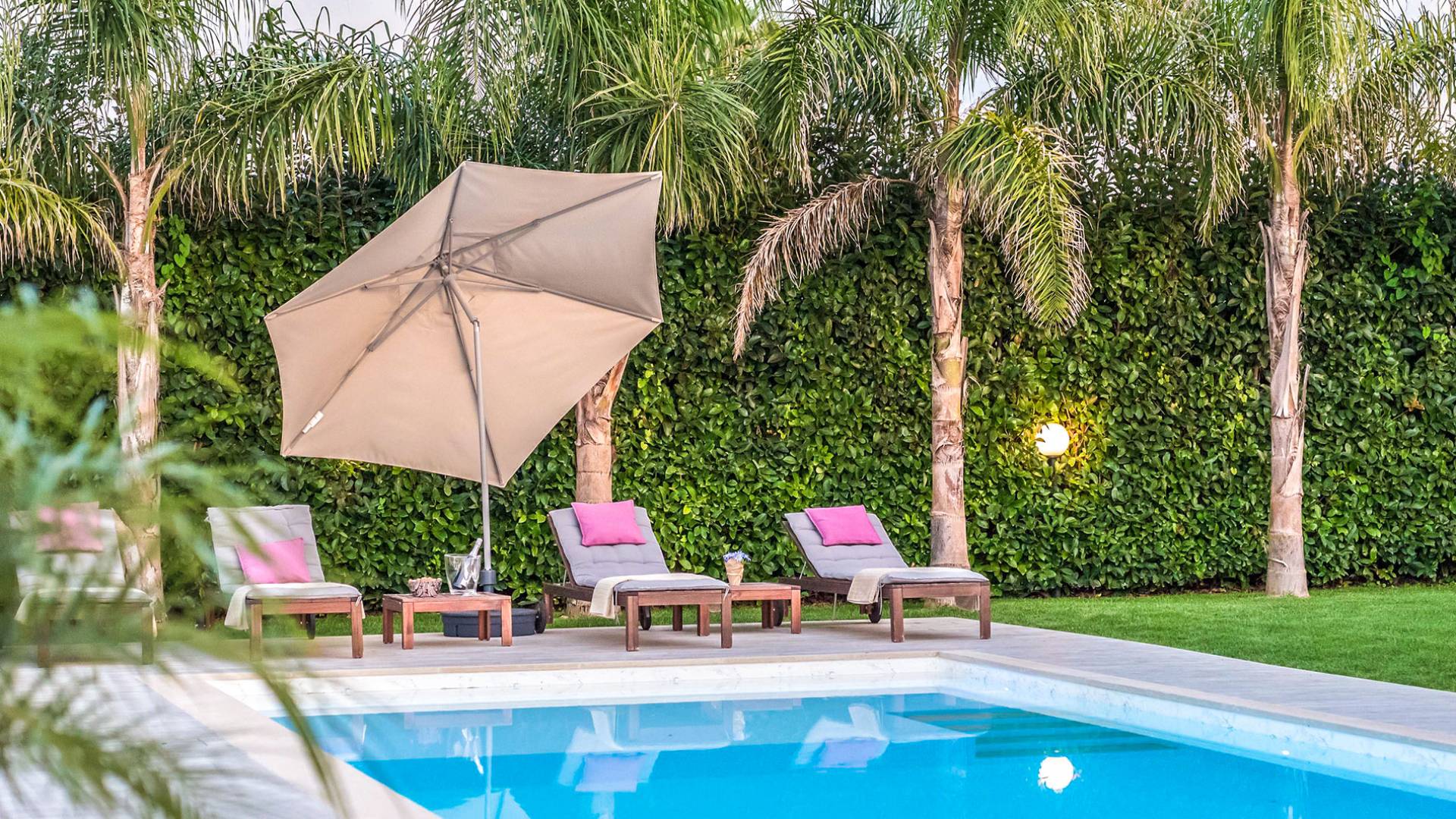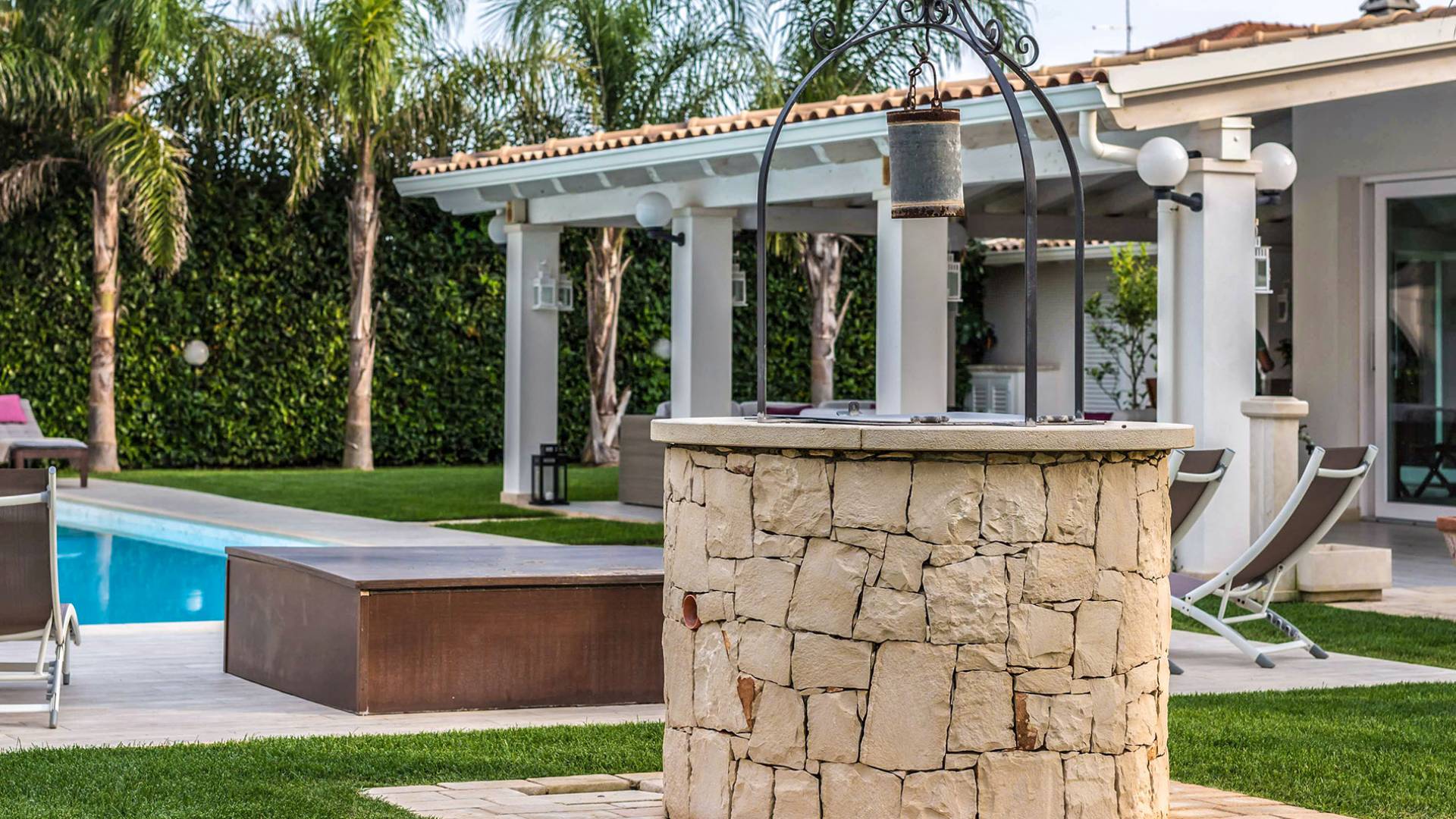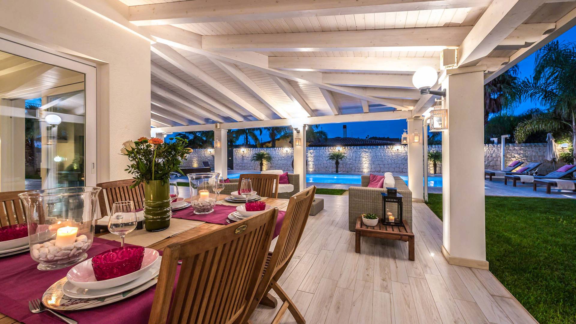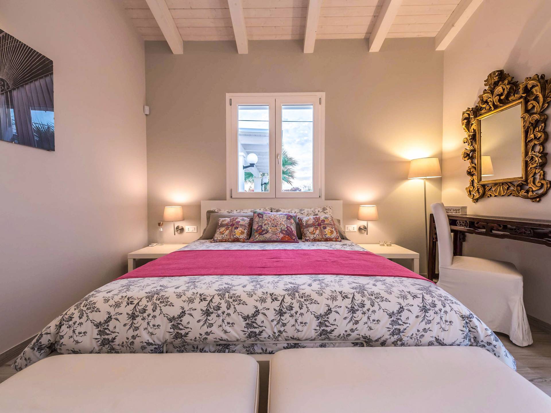Villa le Palme is a newly built and elegant property a few steps from the sandy beach of Santa Maria del Focallo. Attention has been paid to the choice of furniture, interior, and exterior lighting, details, colors.
