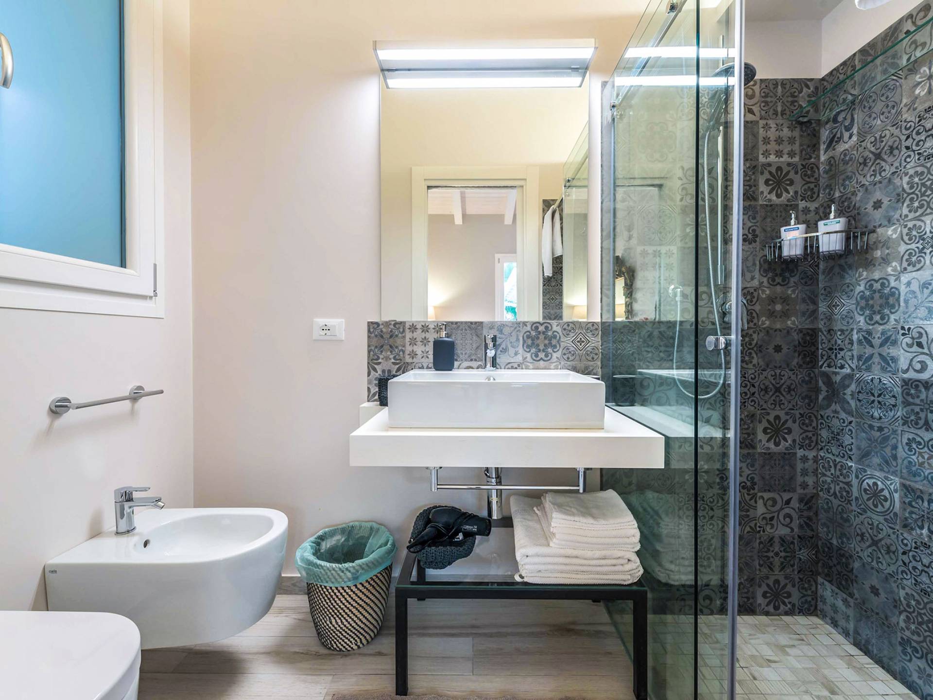 The property offers all the amenities: air conditioning, heating, fireplace, WI-FI access, a large car park. It's equipped with 3 bedrooms (2 double and 1 twin bedroom) 3 bathrooms with shower, a well-equipped kitchen that opens onto a spacious and bright living room. Outside a kitchen with a barbecue and dining area are waiting for you, and finally, an amazing swimming pool and a relaxing area will make your stay at Villa Le Palme unforgettable. Spacious, simply but elegantly decorated, and full of things to do, Villa Panorama is definitely a choice to consider if you are looking to spend quality time with your loved ones, slightly away from the rest of the world – yet close enough to join back in whenever you feel like it. As close to heaven as it gets!