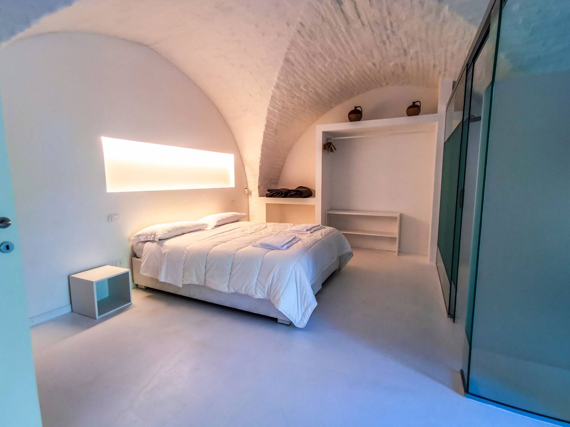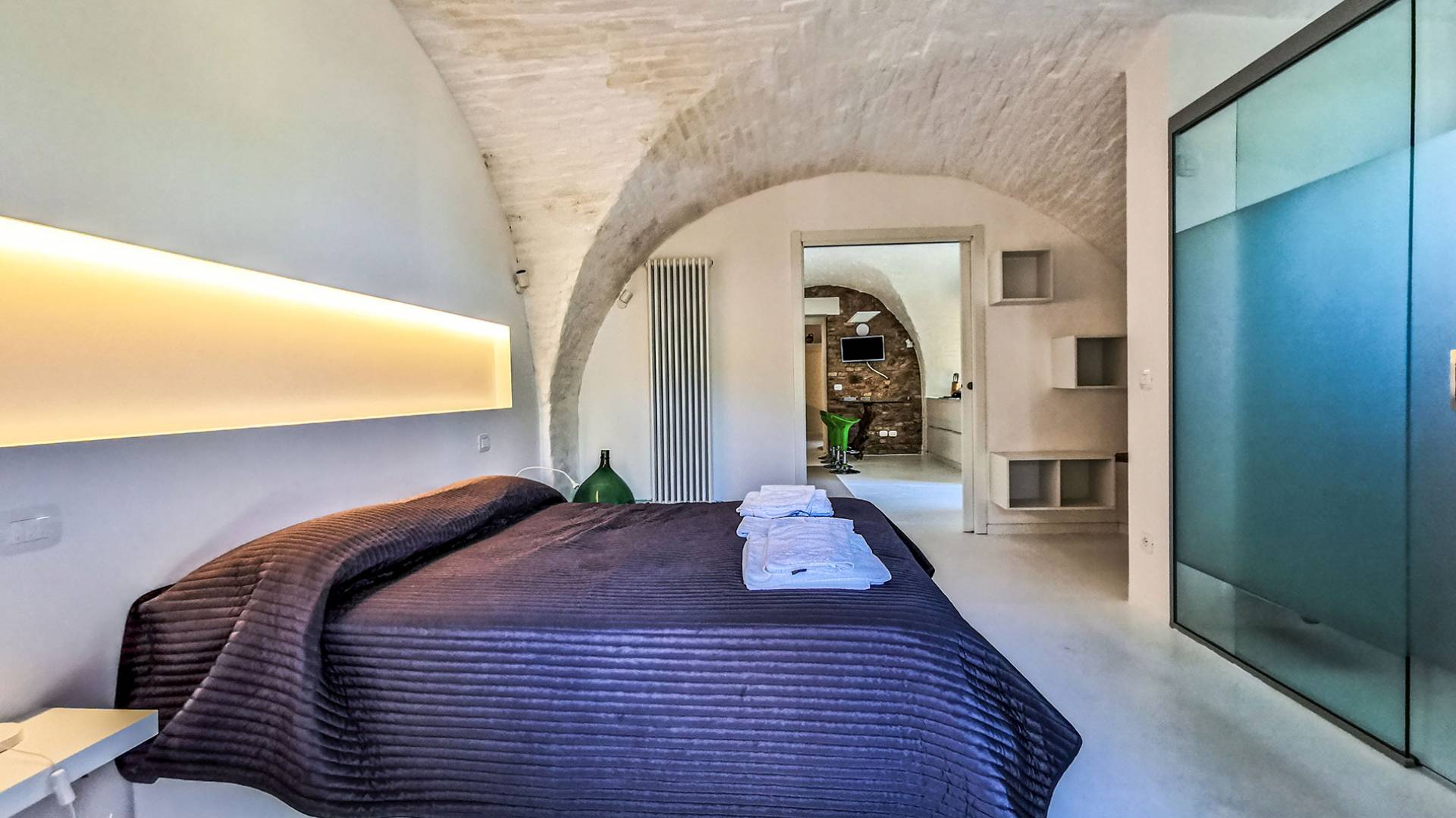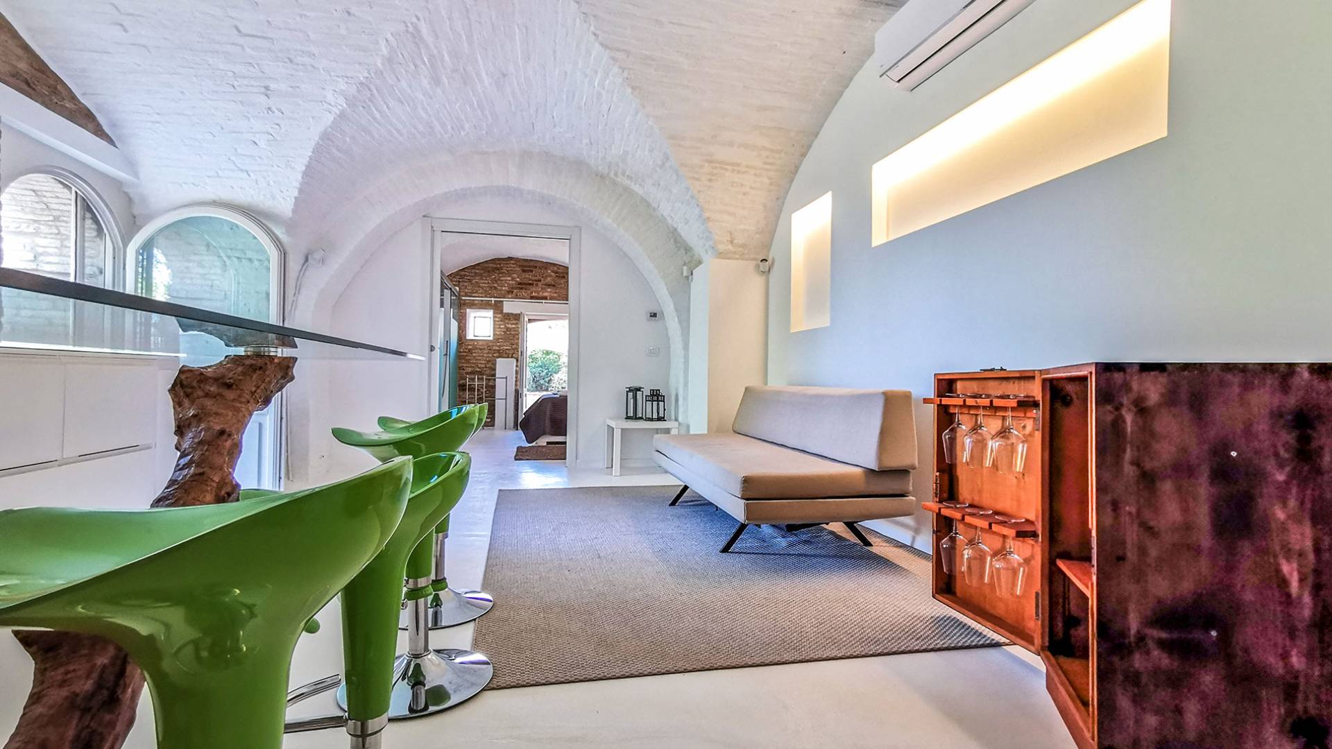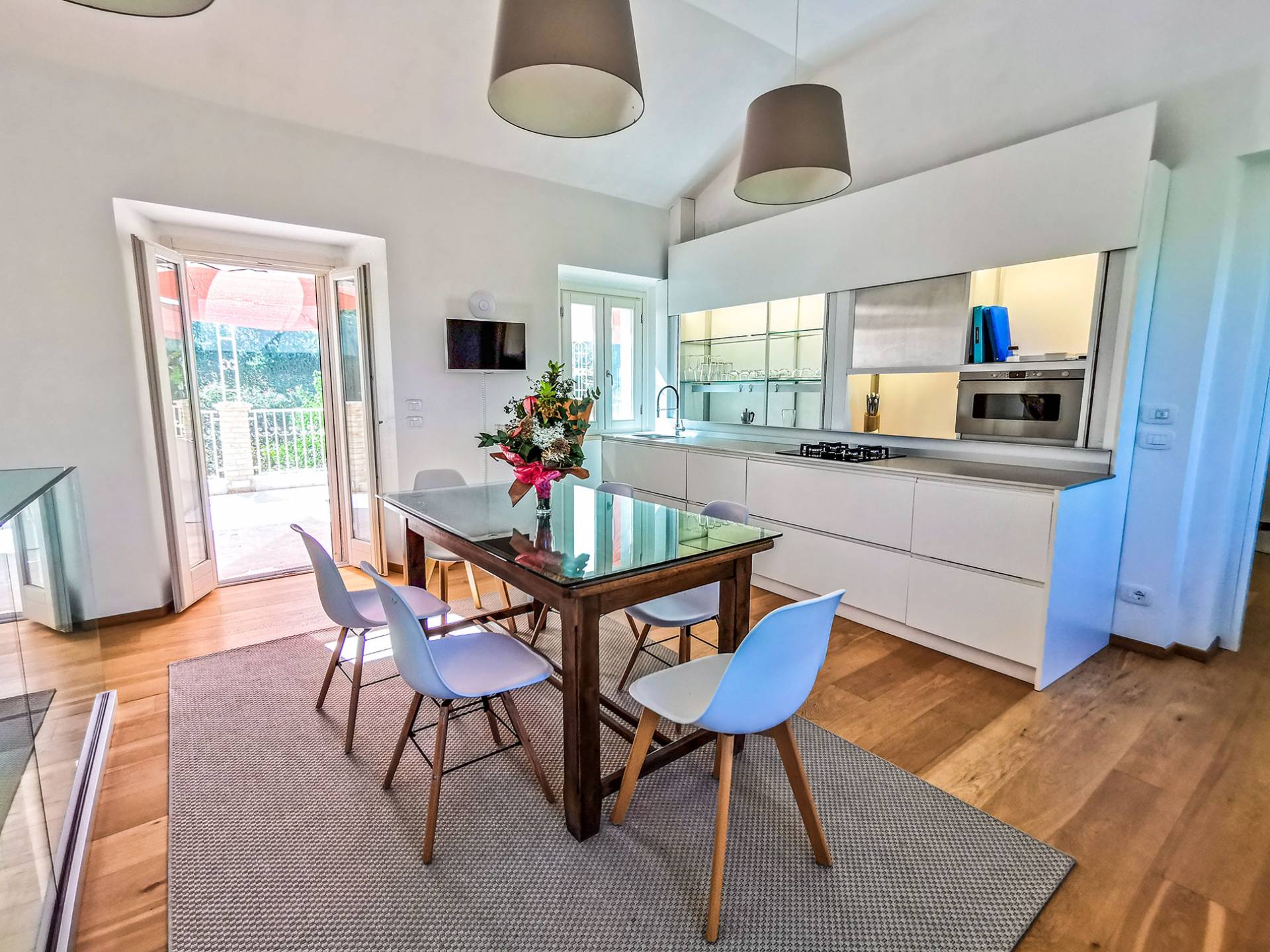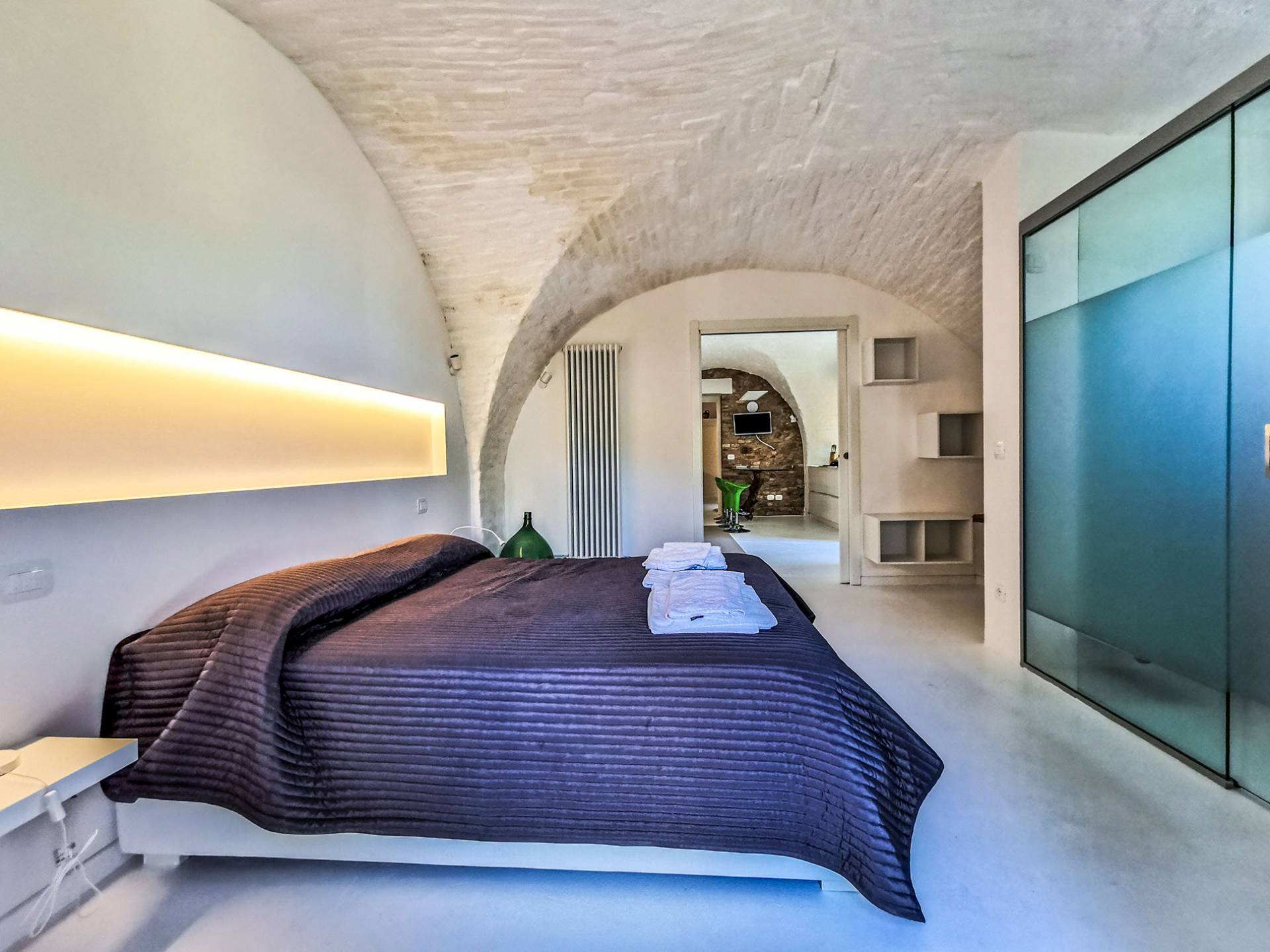 Composed of four apartments, able to accommodate two to six people each and all equipped with an independent kitchen, Villa Picena can accommodate, up to a maximum of twelve people. But it is in the large outdoor kitchen, directly overlooking the garden, that the Villa lives a second life. Here, up to twenty people can be accommodated. The large stone block that characterizes this part of the building has large windows and is served by a convenient and functional wood-burning oven and, at the same time, also offers the possibility of lighting up to an outdoor barbeque. Here too we find travertine, a typical material of this area which also includes the interior floors, together with lots