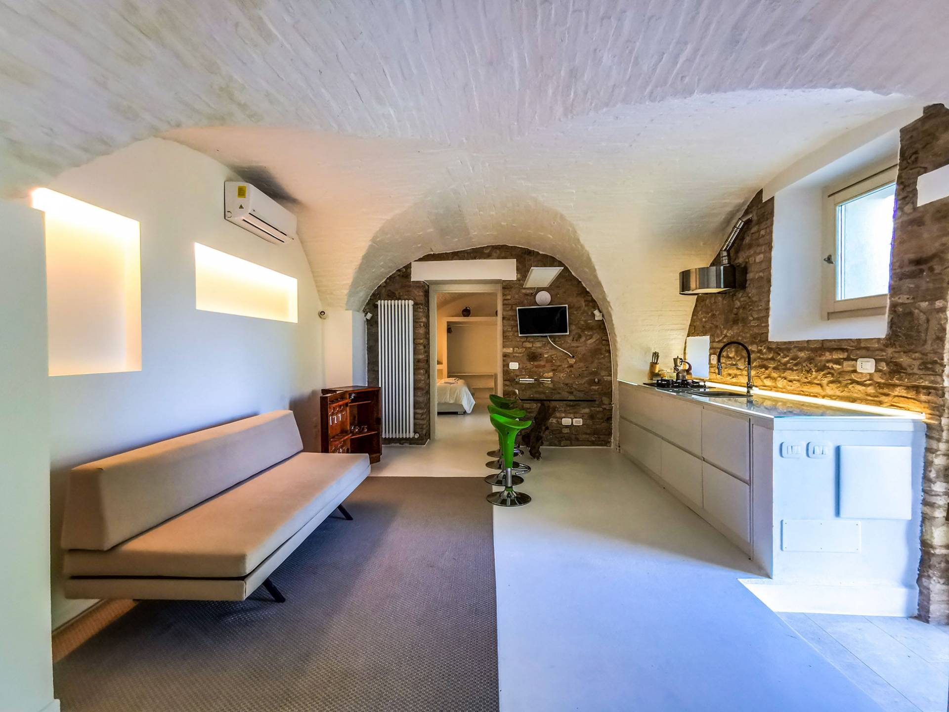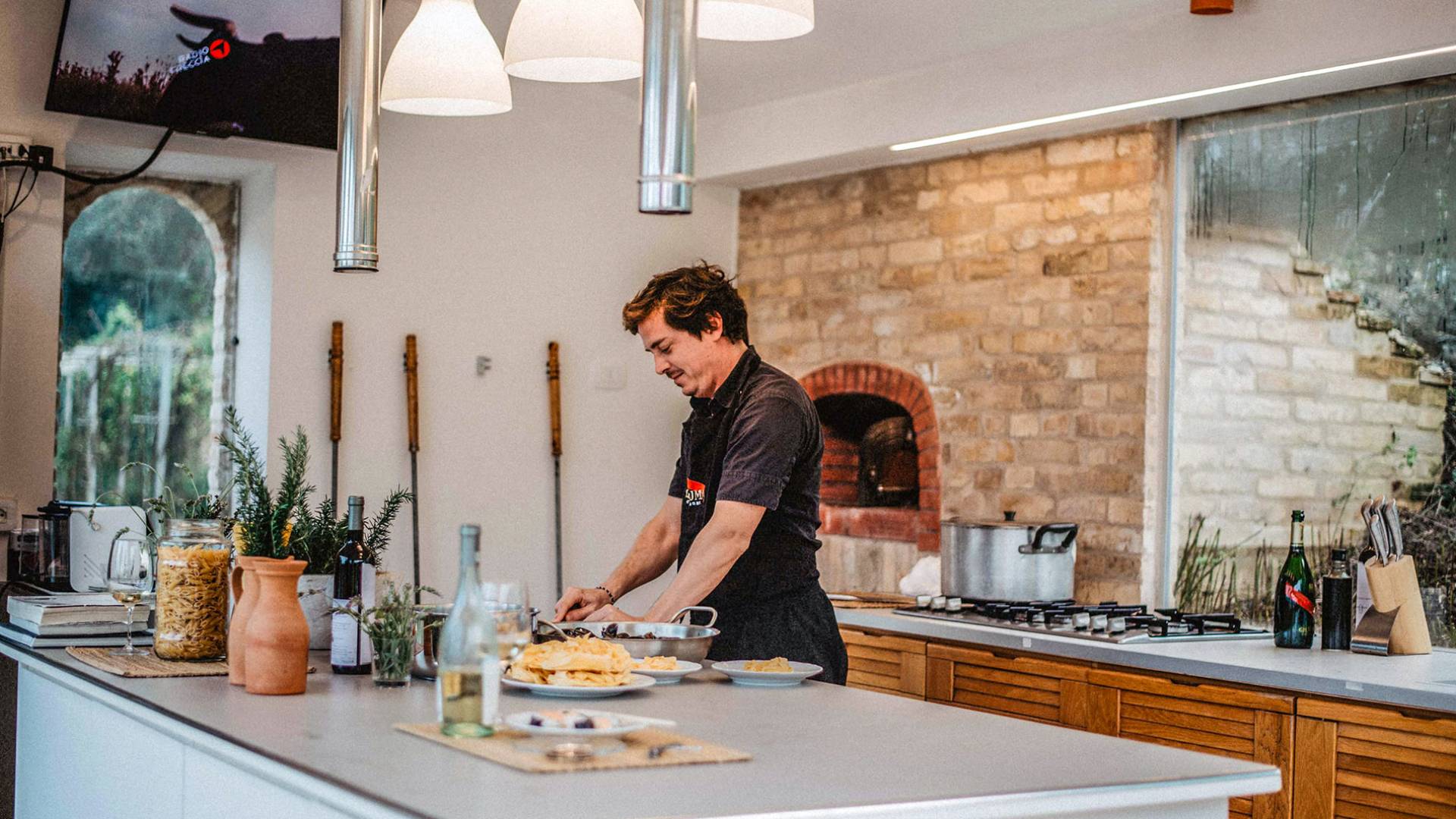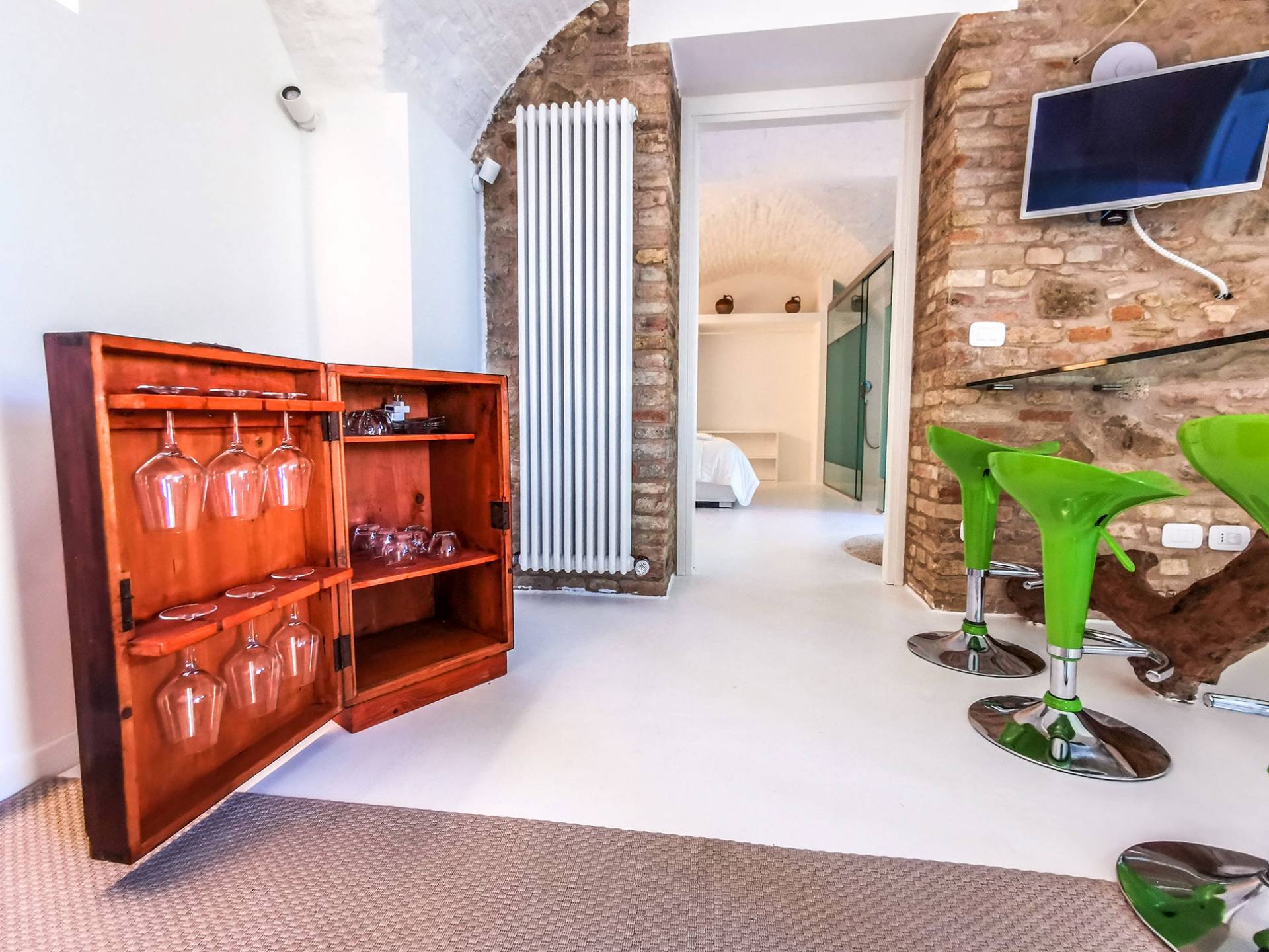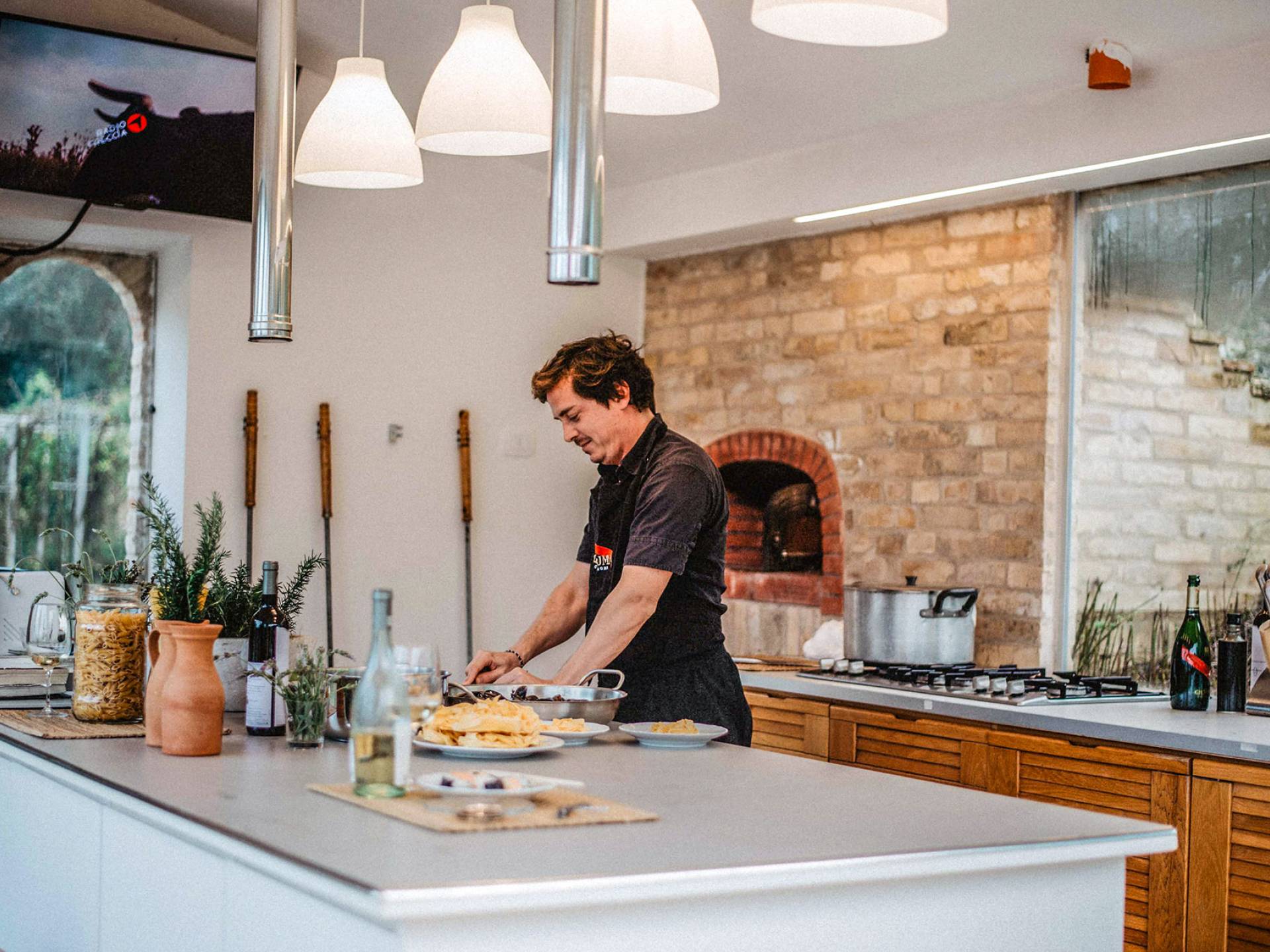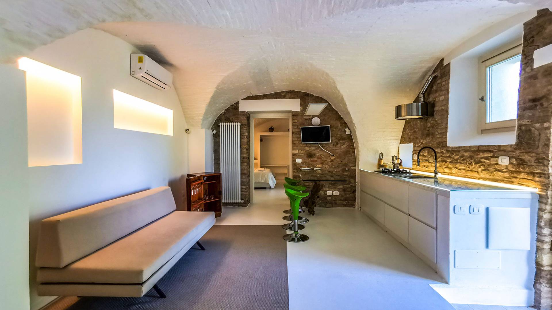Composed of four apartments, able to accommodate two to six people each and all equipped with an independent kitchen, Villa Picena can accommodate, up to a maximum of twelve people. But it is in the large outdoor kitchen, directly overlooking the garden, that the Villa lives a second life. Here, up to twenty people can be accommodated. The large stone block that characterizes this part of the building has large windows and is served by a convenient and functional wood-burning oven and, at the same time, also offers the possibility of lighting up to an outdoor barbeque. Here too we find travertine, a typical material of this area which also includes the interior floors, together with lots