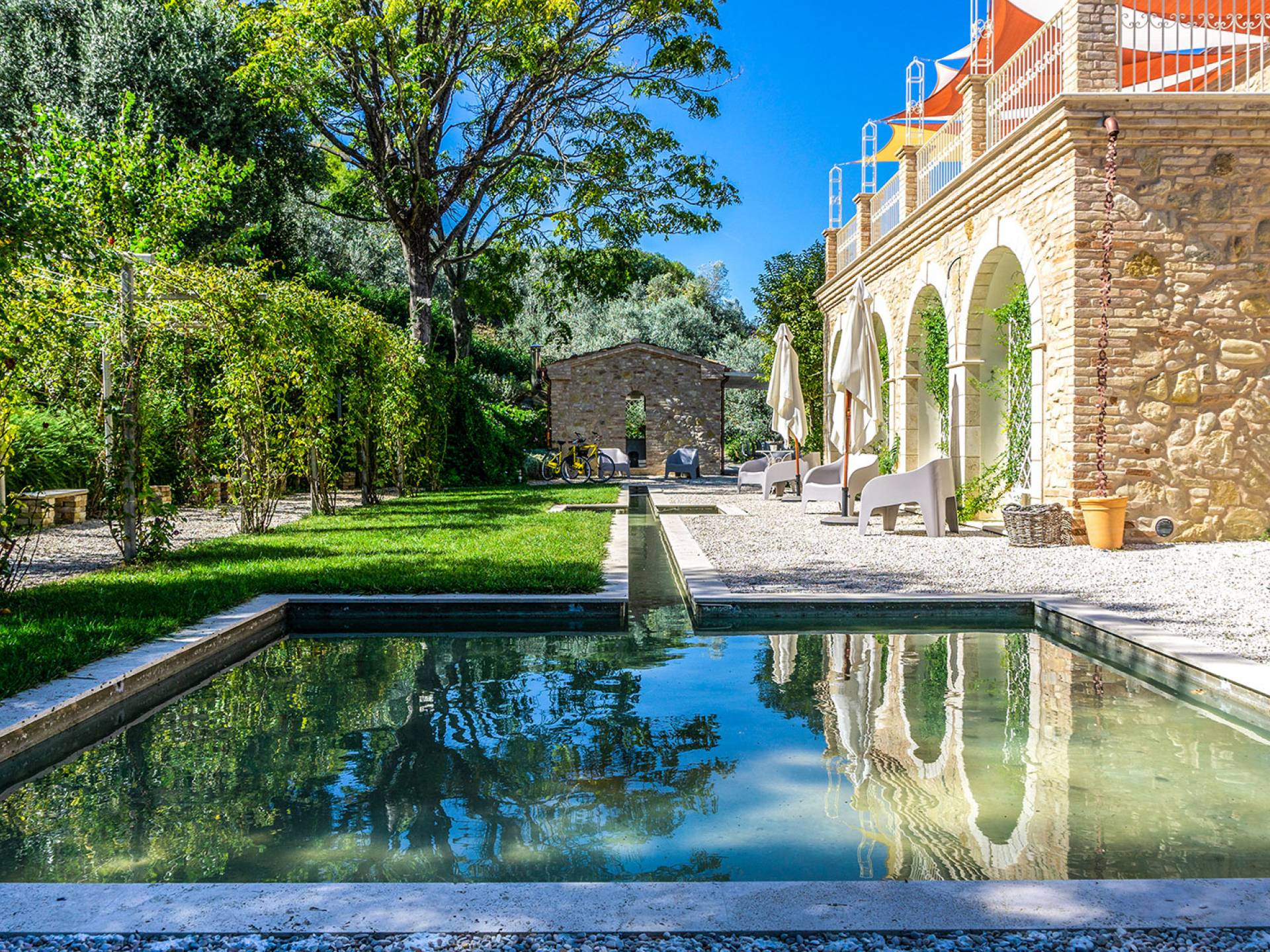 Villa Picena The Marches is a luxury villa rental with 8 bedrooms and a private pool. A few hundred meters from the archaeological area and the temple dedicated to the Goddess Cupra, still preserving small parts that probably date back to Roman times, in the countryside of Cupra Marittima and not far from the sea, Villa Picena presents the characteristics of a unique dwelling which differs from the usual classic Marche style.