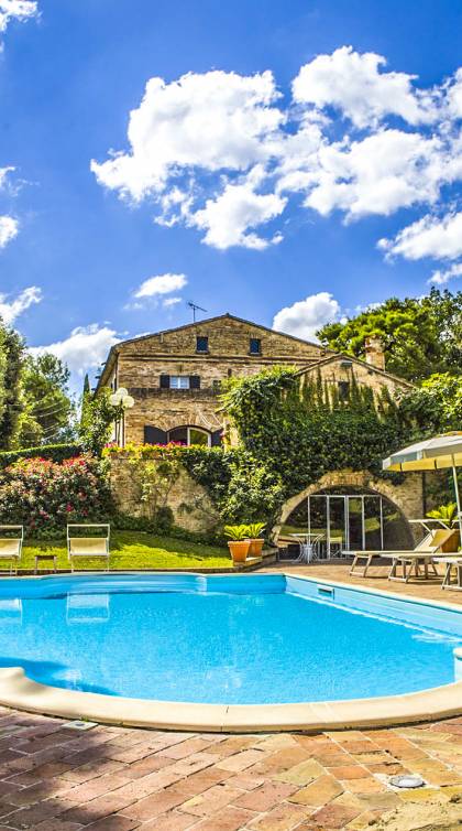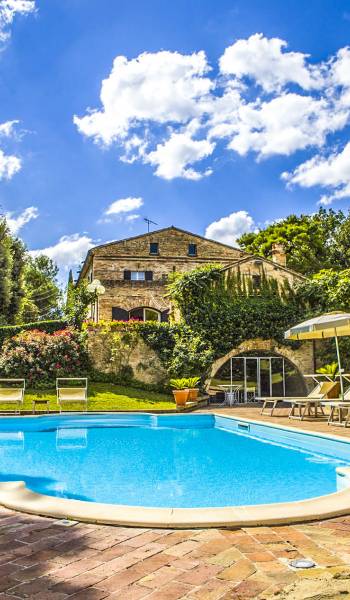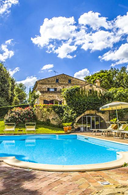 Villa Teia The Marches is a luxury villa rental with 14 bedrooms and a private pool. Villa Teia is an ancient summer residence of the archbishops of Urbino, located in a position that dominates the entire Metauro valley. The origins of Villa Teia date back to the seventeenth century, then abandoned by the end of the nineteenth century. Today, after a careful restoration, the building that makes up the structure and its park has regained great value.
