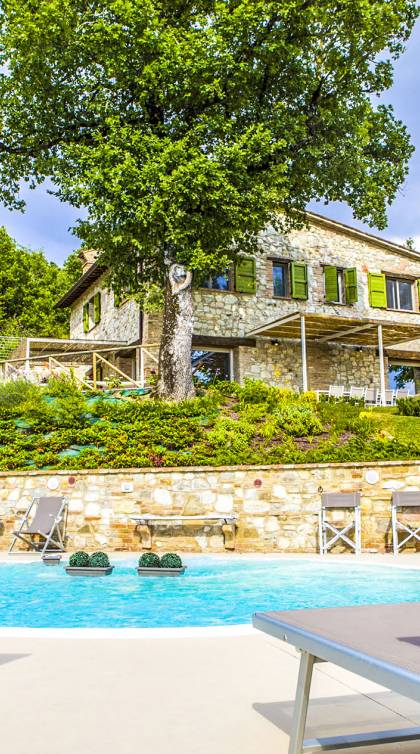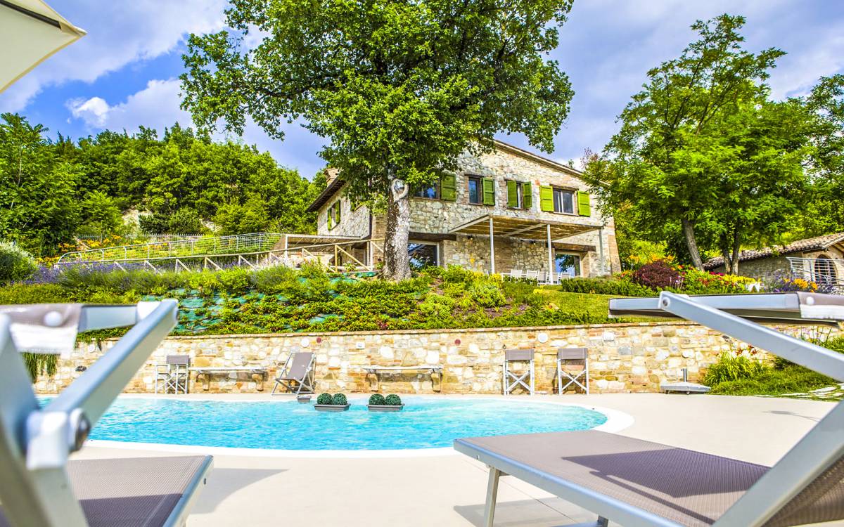 Villa Selene The Marches is a luxury villa rental with 6 bedrooms and a private pool. Villa Selene The Marches is located in the municipality of Fermignano, near Umbria and Tuscany. The property was an old country house, renovated and refurbished according to the rustic canons with exposed stones and original dark wood painted green.