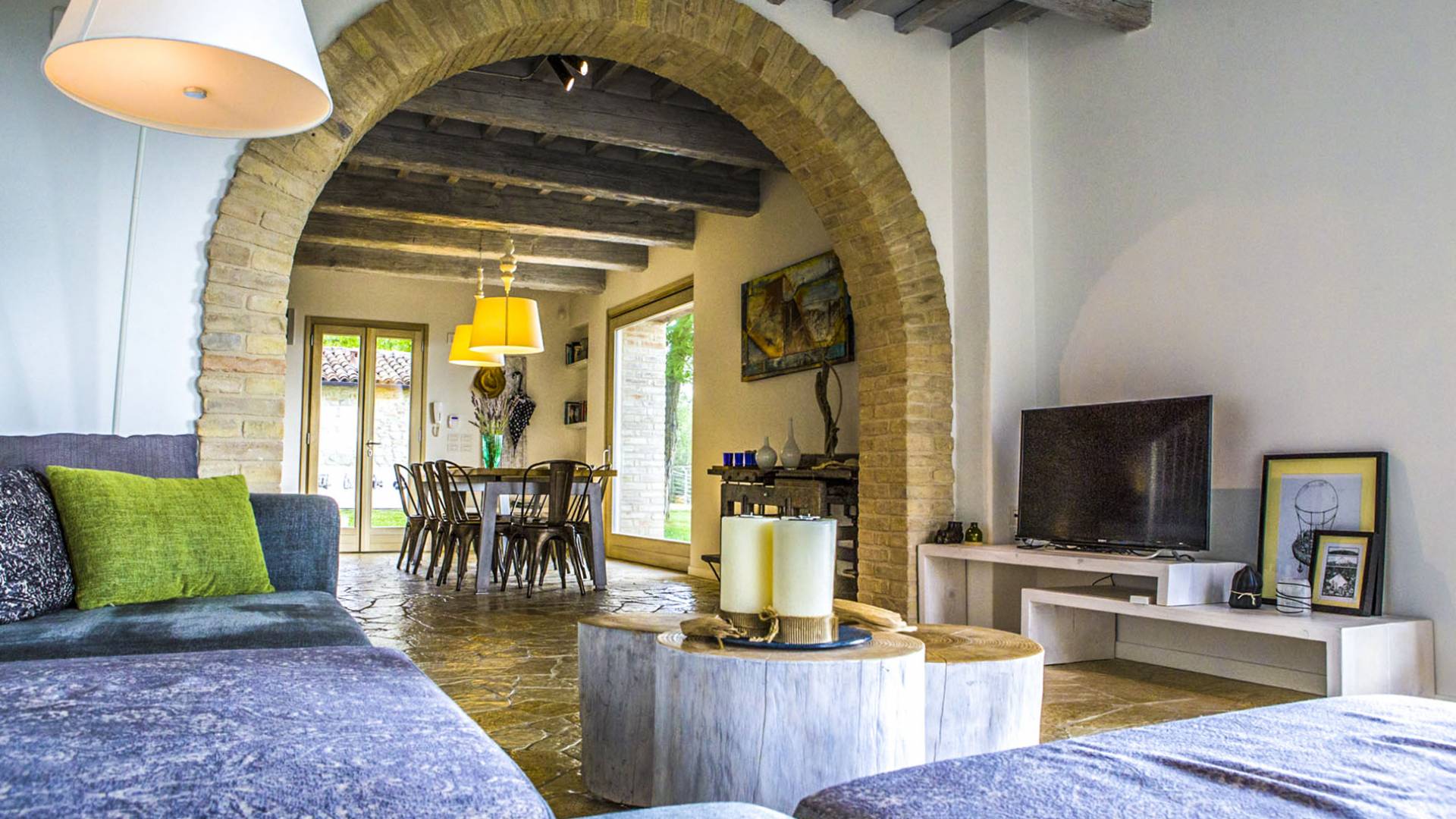 The house immediately conveys an atmosphere of hospitality and relaxation, thanks to the wide green spaces that surround it. A garden surrounds the villa with various outdoor relaxation areas, an indoor BBQ station, and a beautiful pool overlooking the countryside. Villa Selene The Marches is ideal for those who want to have fun but at the same time relax, with family or with a group of friends. Located in a strategic position, the stay at Villa Selene is perfect for everyone: for shopping lovers, for those who prefer nature or art, or for those who want to taste the delicacies that the Marche can offer.