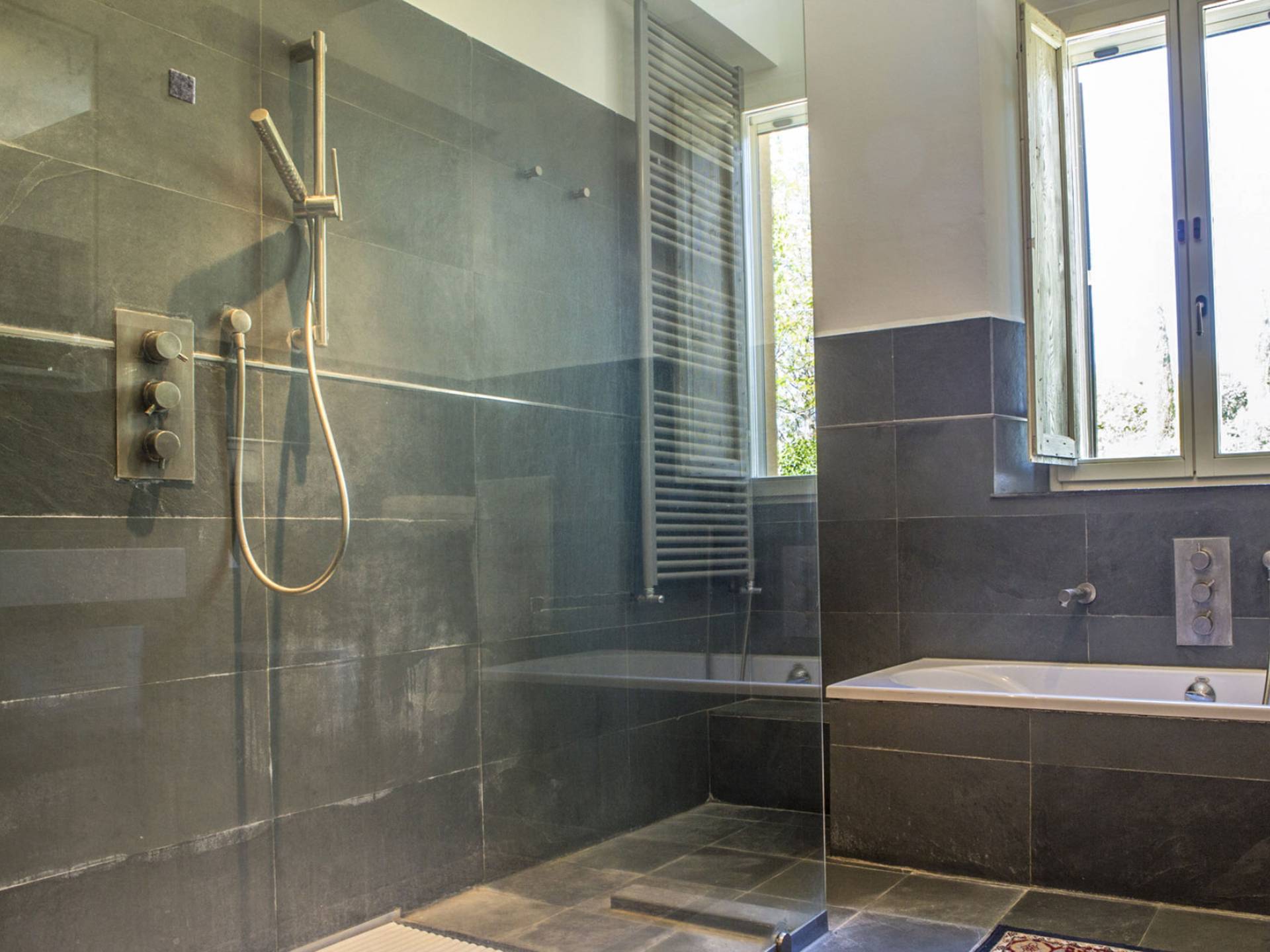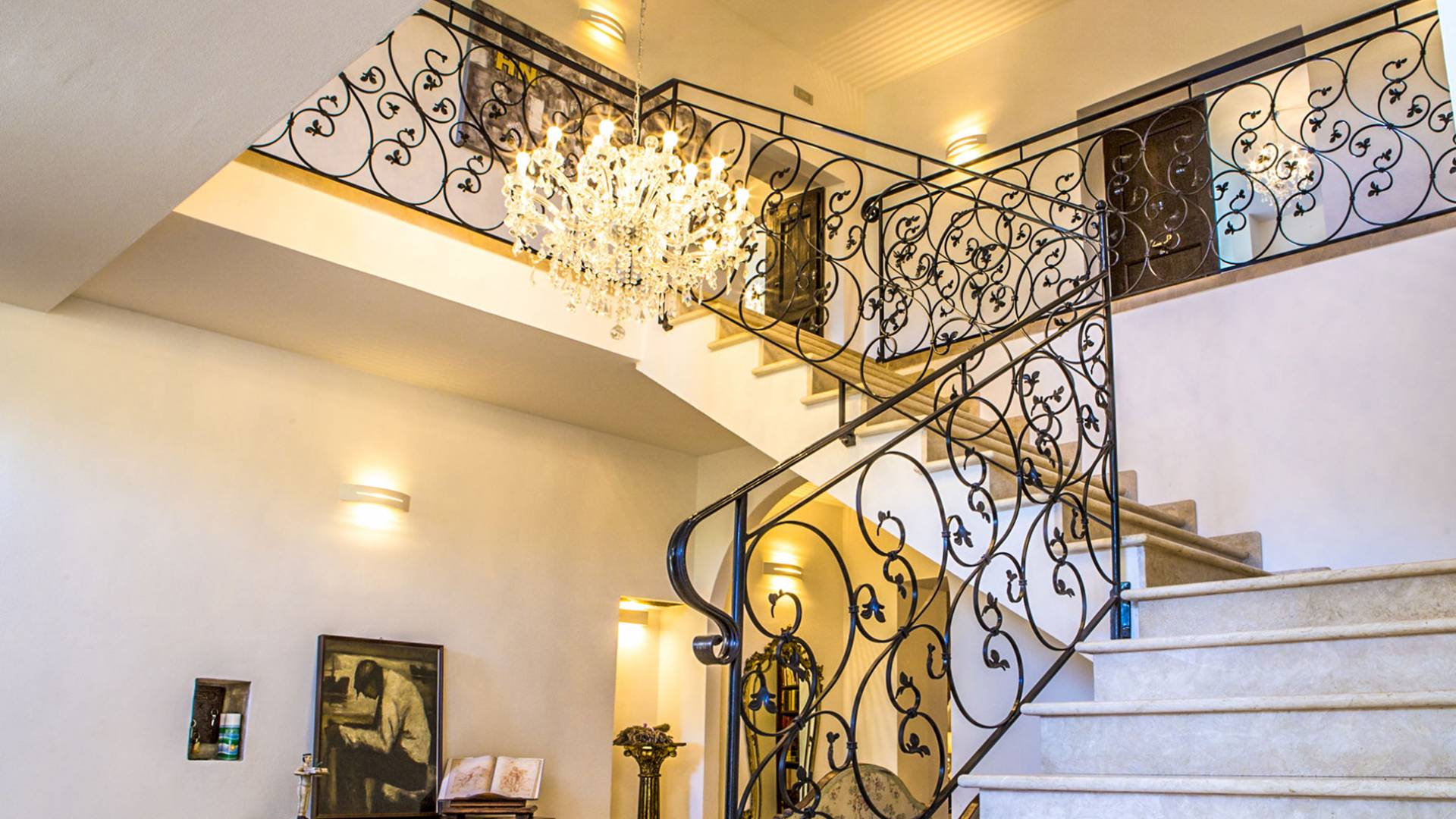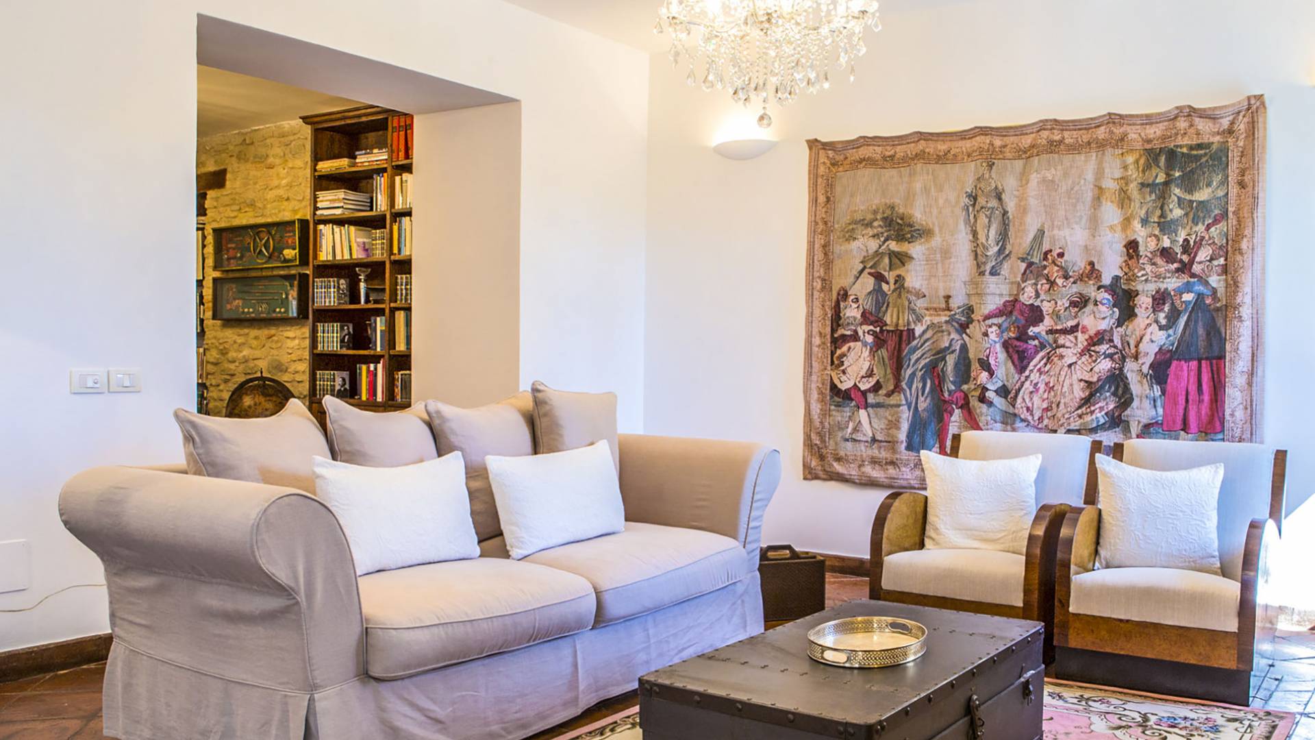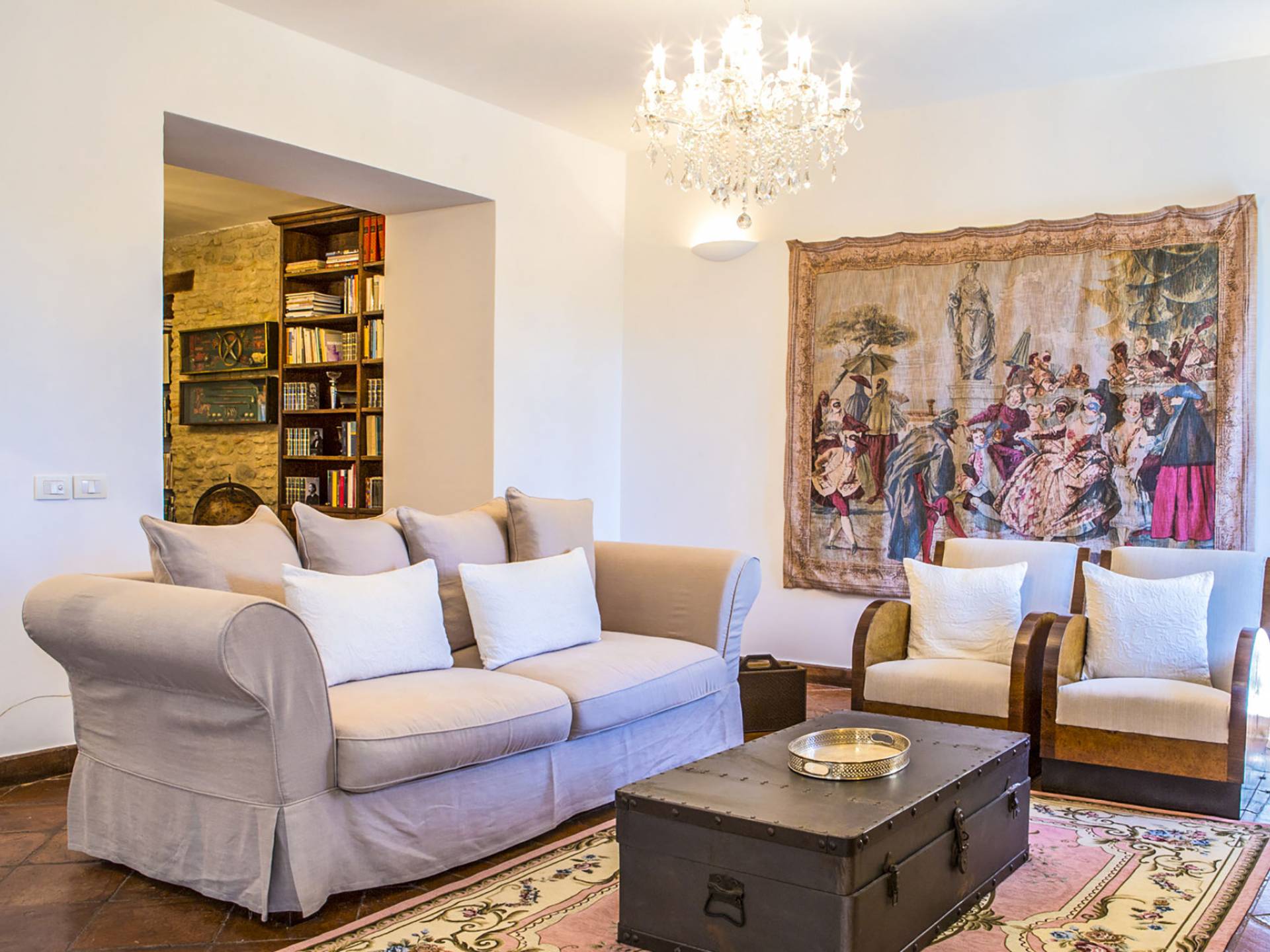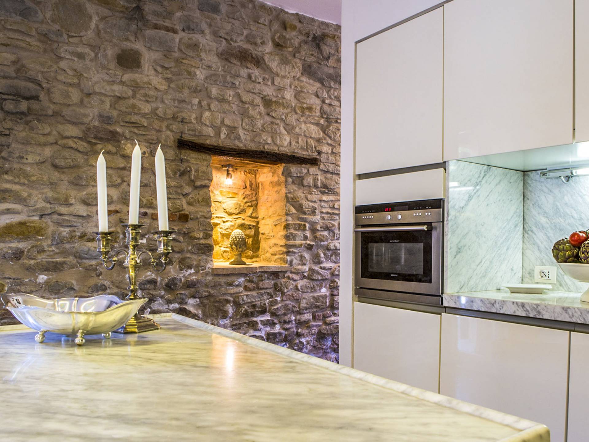 On the ground floor, there is a large entrance hall, a large living room with Smart TV, and a stone fireplace. Another beautiful stone fireplace is located in the large modern and well-equipped kitchen. Then there is the reading room, a service bathroom, and the laundry area. On the first floor, there is another reading room, made out from the balcony, the master bedroom with an en-suite bathroom, a second and a third double bedroom, the latter with a mezzanine floor. The last two bedrooms are served by a large bathroom with a tub and shower. Inside, high-quality furniture and styles create an elegant and very welcoming atmosphere.