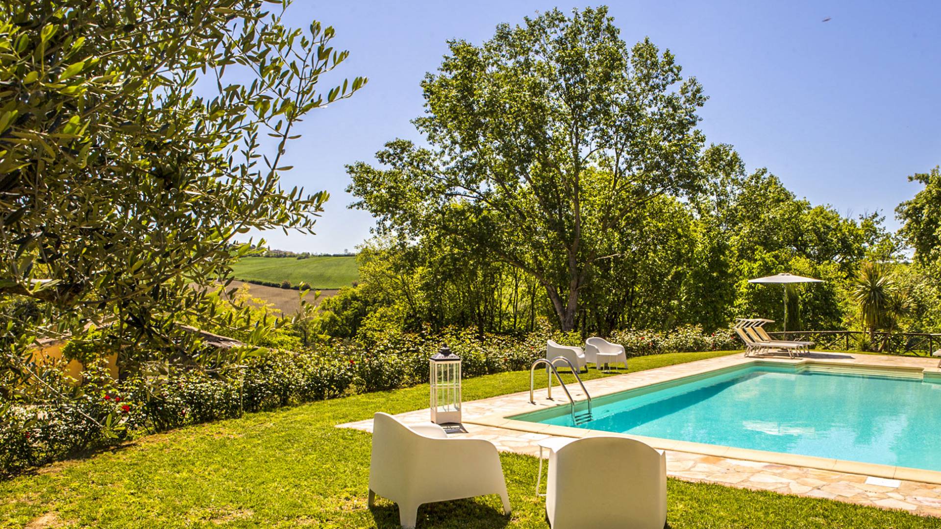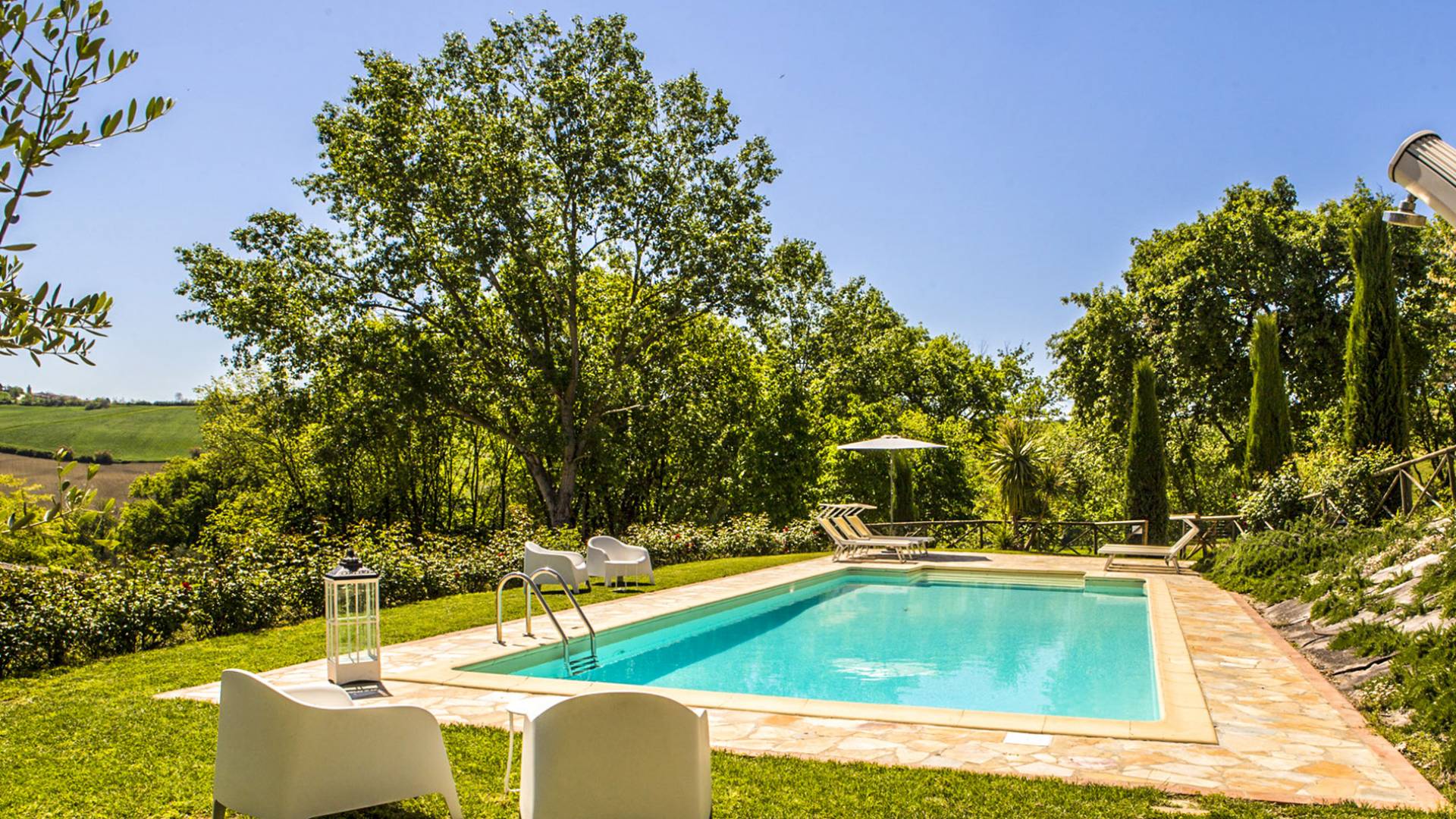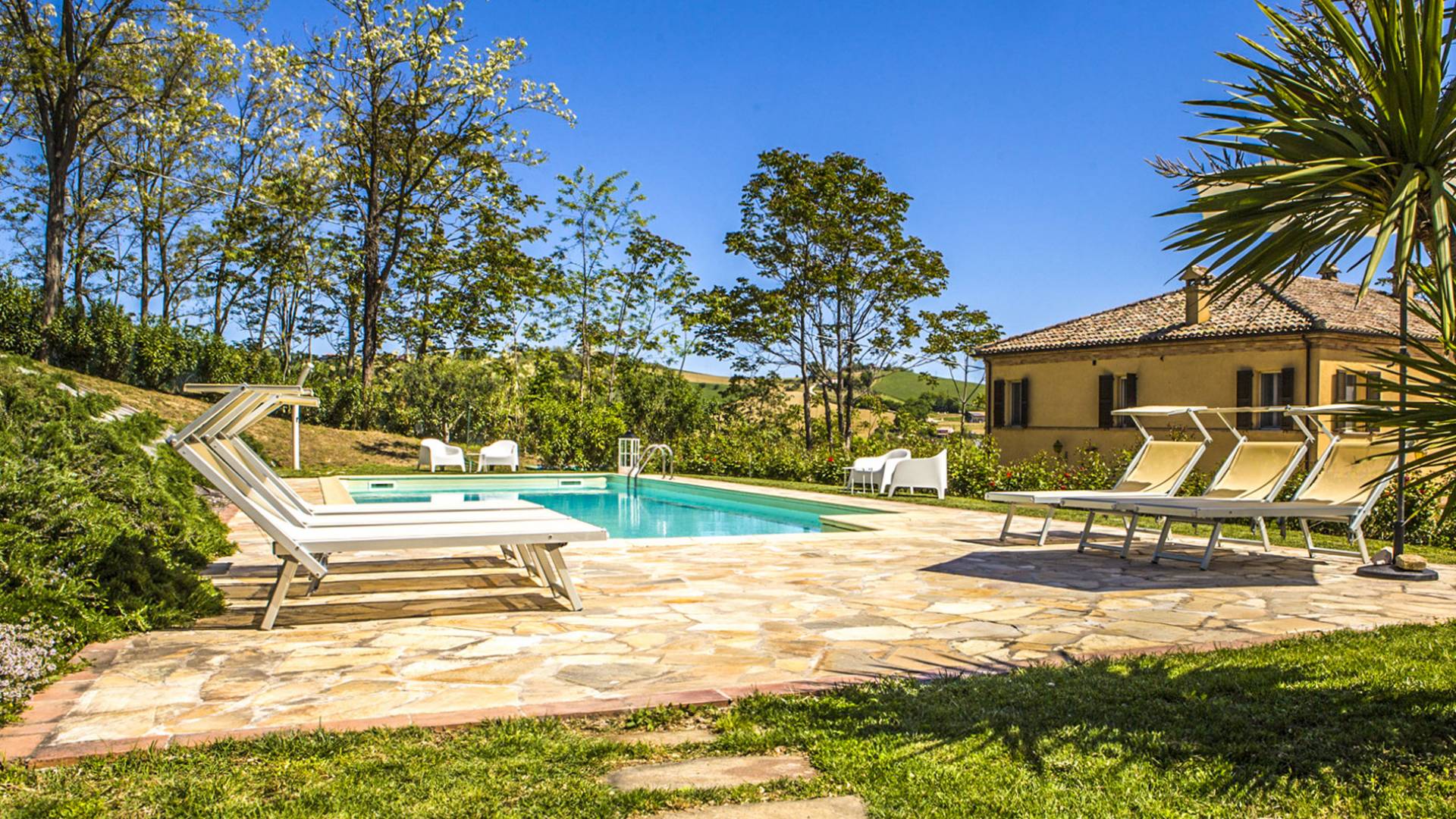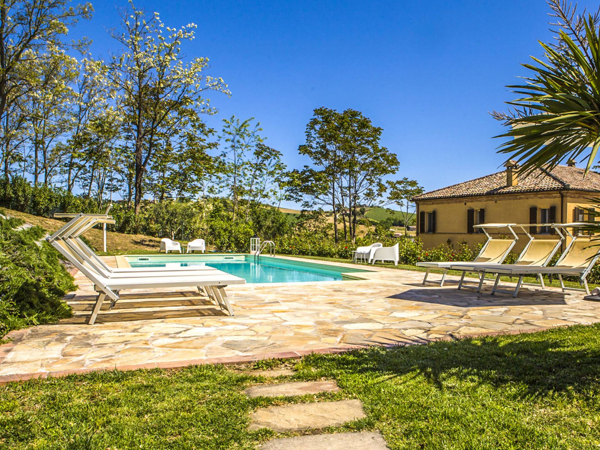 Villa San Marco The Marches is a luxury villa rental with 5 bedrooms and a private pool. Large interiors and outdoor areas offer the best welcome to guests at Villa San Marco, a manor house overlooking the hills of Le Marche countryside between the medieval fortresses of Mondavio and Mondolfo, a few kilometers from the beach of Marotta. Here everything is bright and spacious. Whether you decide to spend a day outdoors or prefer to stay inside, it doesn’t matter.
