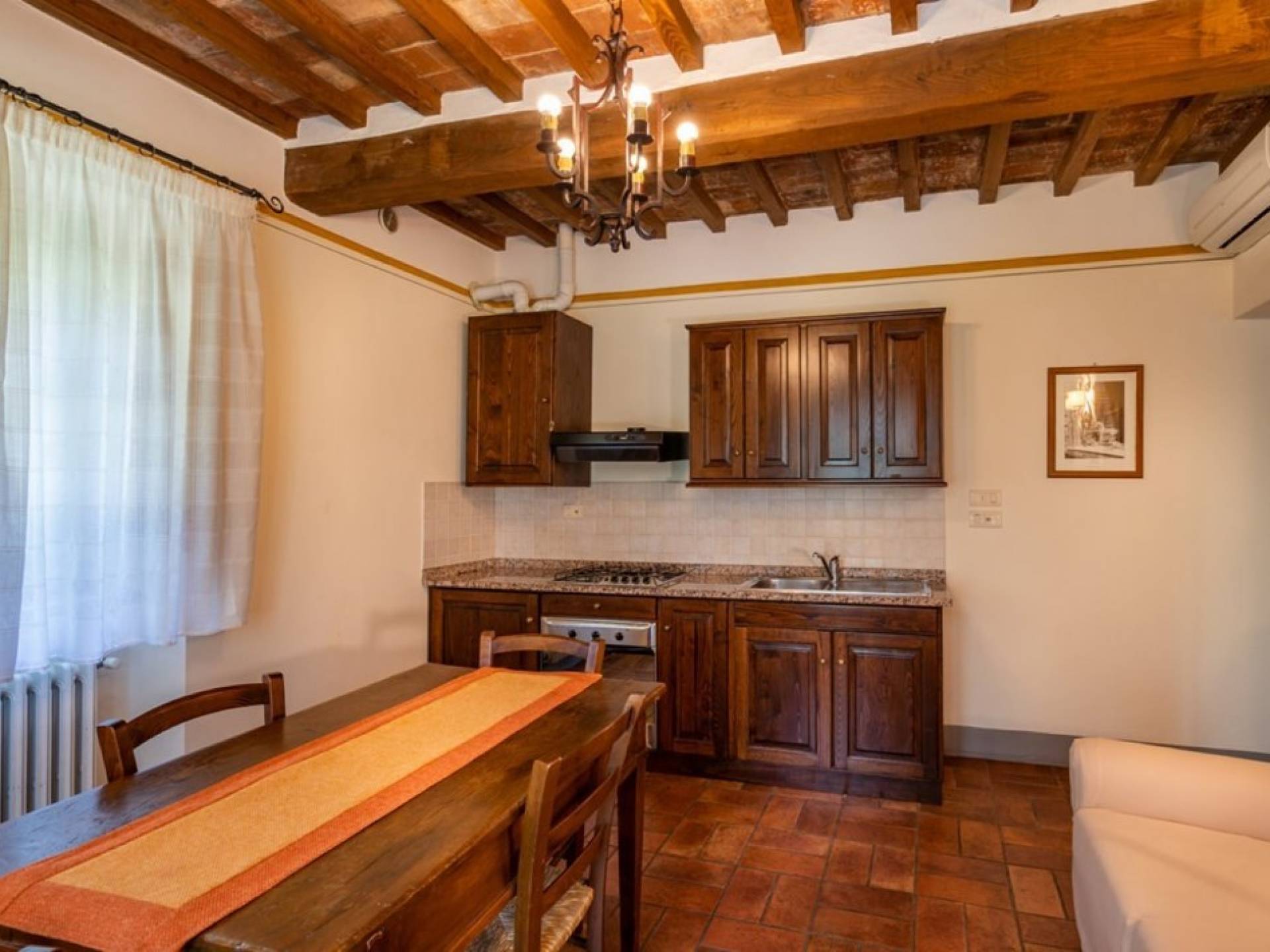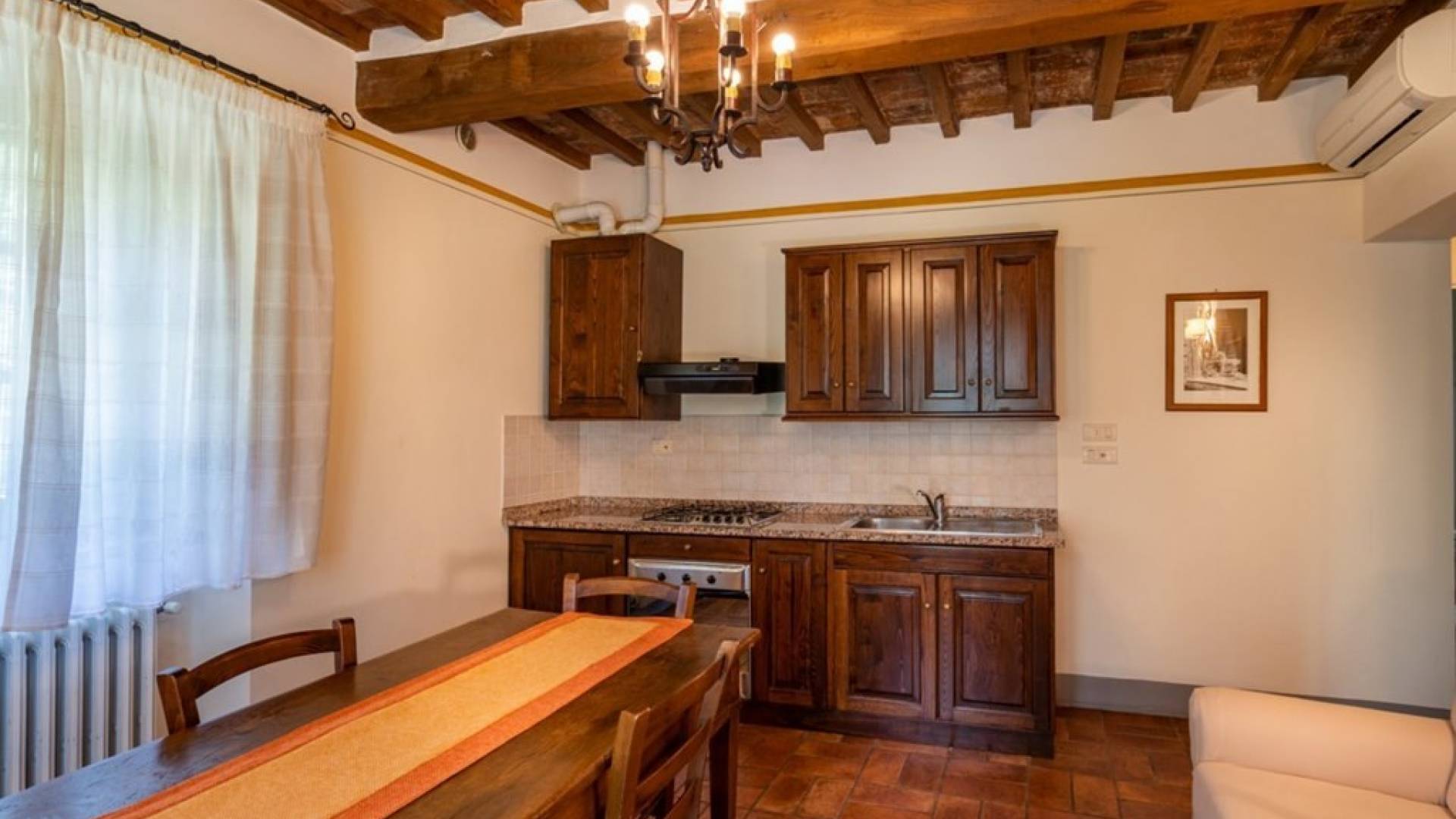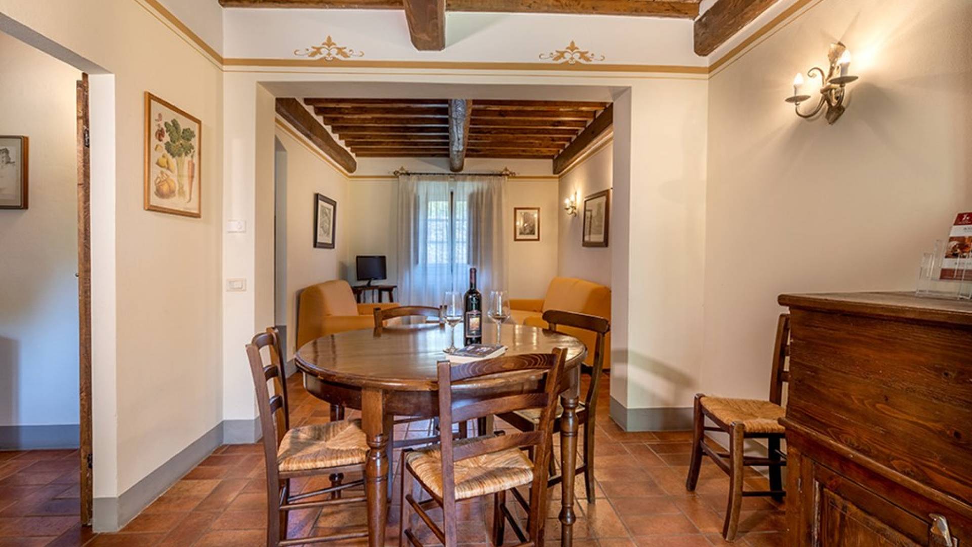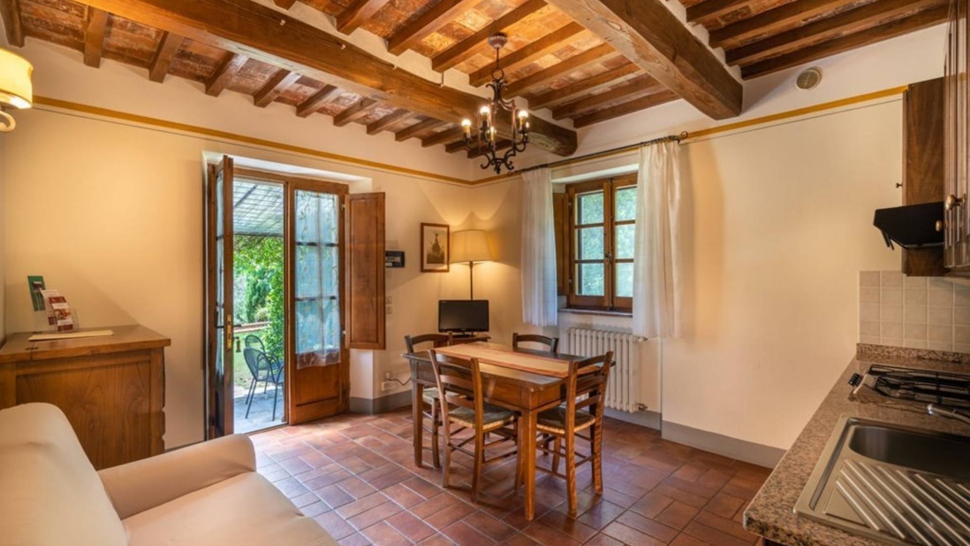 Apartment at Villa Borgo San Pietro consists of a Two-Room Apartment: Number of people 2 +1, living-room with kitchen area, sleeper sofa,1 double bedroom, 1 bathroom with shower, an Apartment with 2 bedrooms: Number of people 4, living-room with kitchen area, 1 double bedroom, 1 twin bedroom (can be double), 1 bathroom with shower., and a Deluxe Three-Room Apartment: Number of people 4+1, on 2 floors, on the ground floor large living room, kitchen, toilet; first floor 1, 1 double bedroom, 1 twin bedroom (can be double), 1 bathroom with shower, view of the Valley and Cortona.