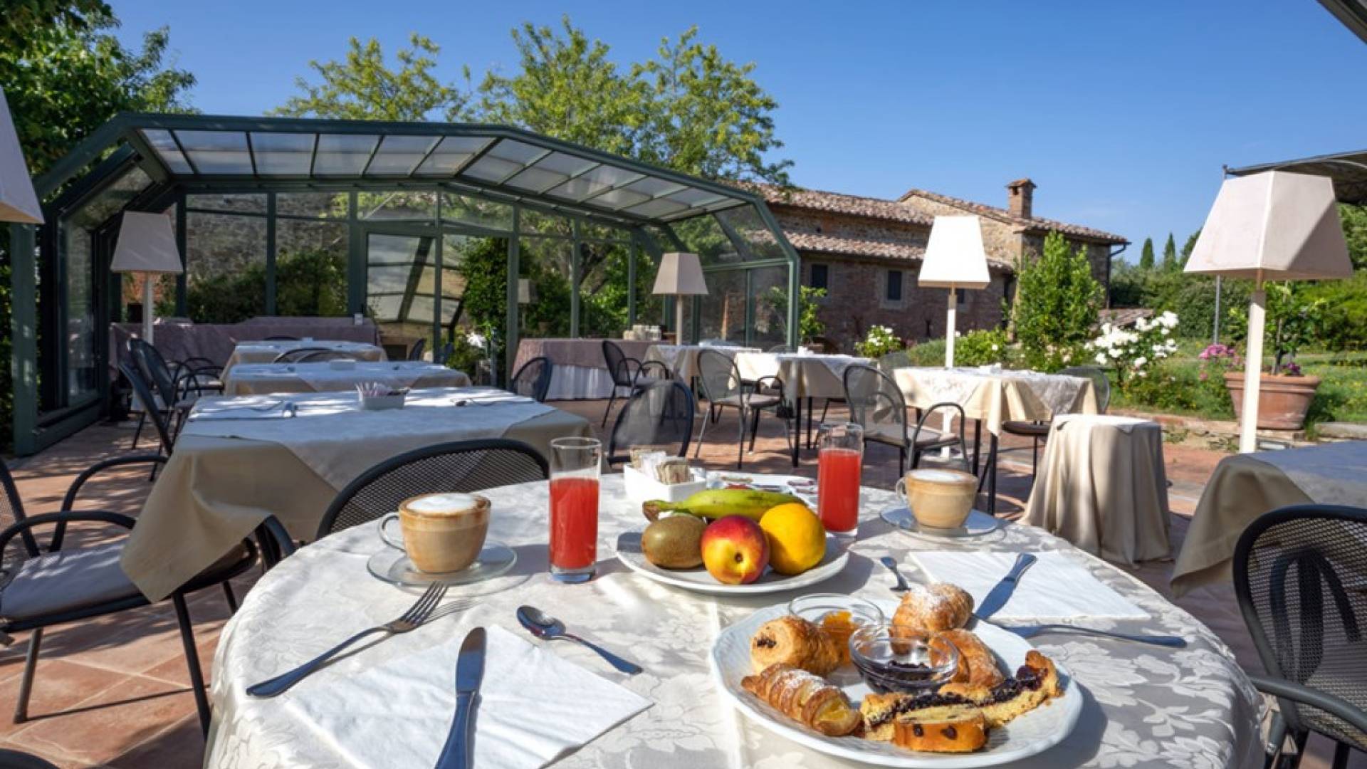 The facility, a former 17-century villa, is appreciated for the quiet location, the panoramic position, the typical character of the building, and the accurate furniture. It features luxurious rooms, huge apartments, a pool, and 7 hectares of park with fruit and olive trees.