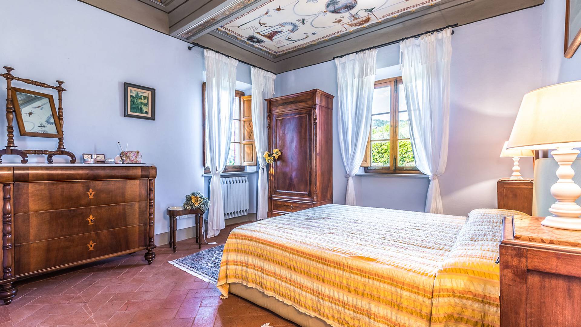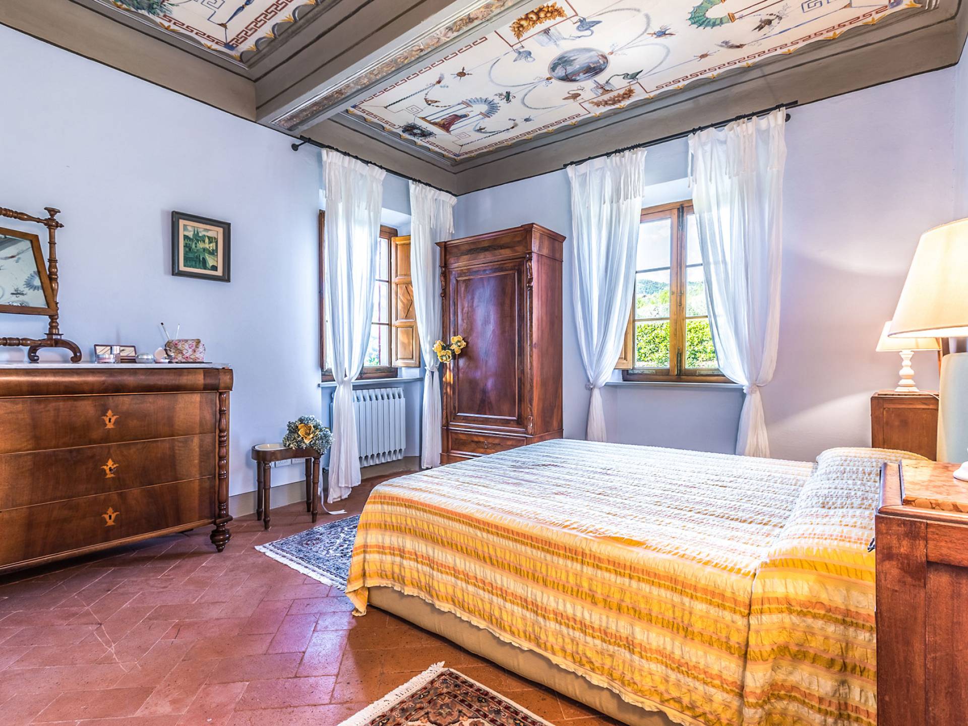 Second Floor: The second floor consists of 4 spacious double bedrooms with en suite bathroom and shower. All the rooms have modern, stylish furnishings, which give them an original, bright, and welcoming feel. Each room overlooks the park and has a colour theme which, with the decor and fabrics, completes the elegant and relaxing atmosphere. The frescoes have been restored where possible. All the bedrooms have air conditioning. - The Green room - The Yellow room - The Ochre room - The Light blue room