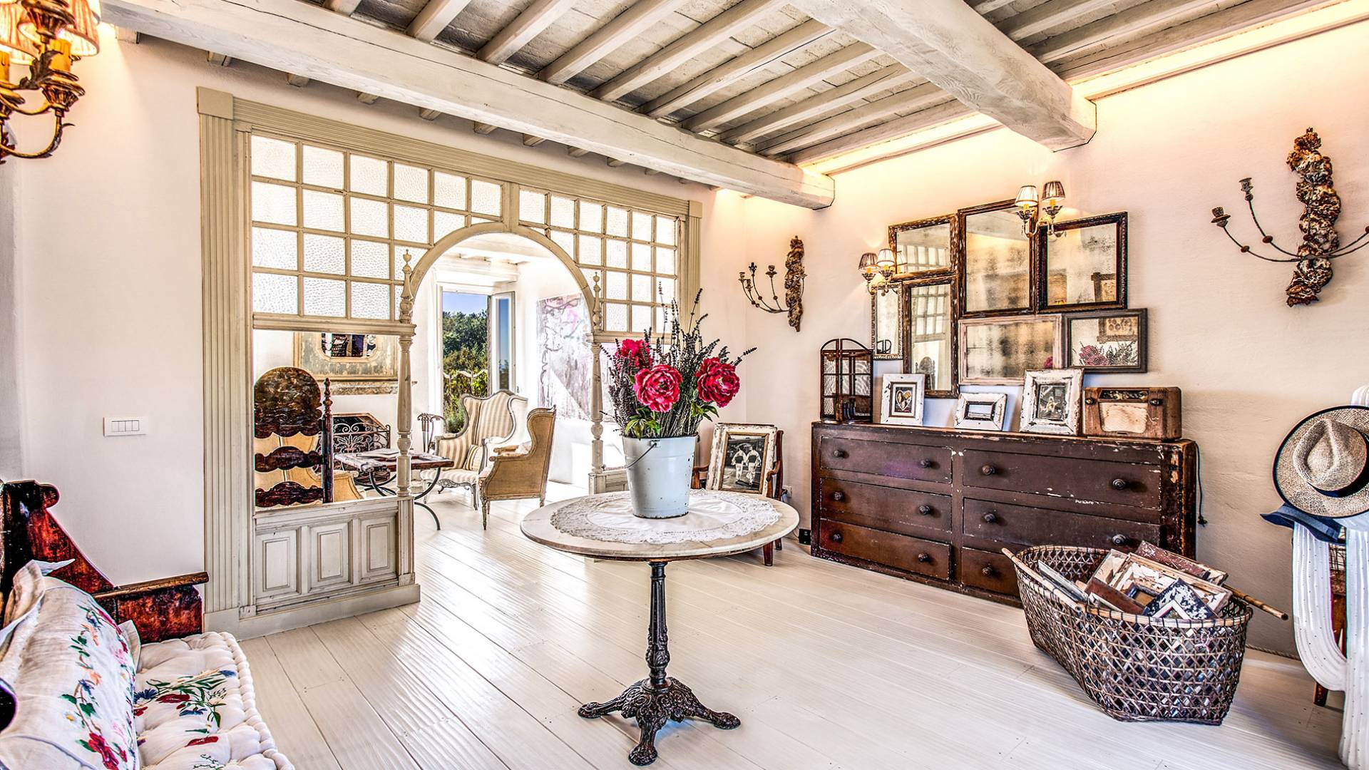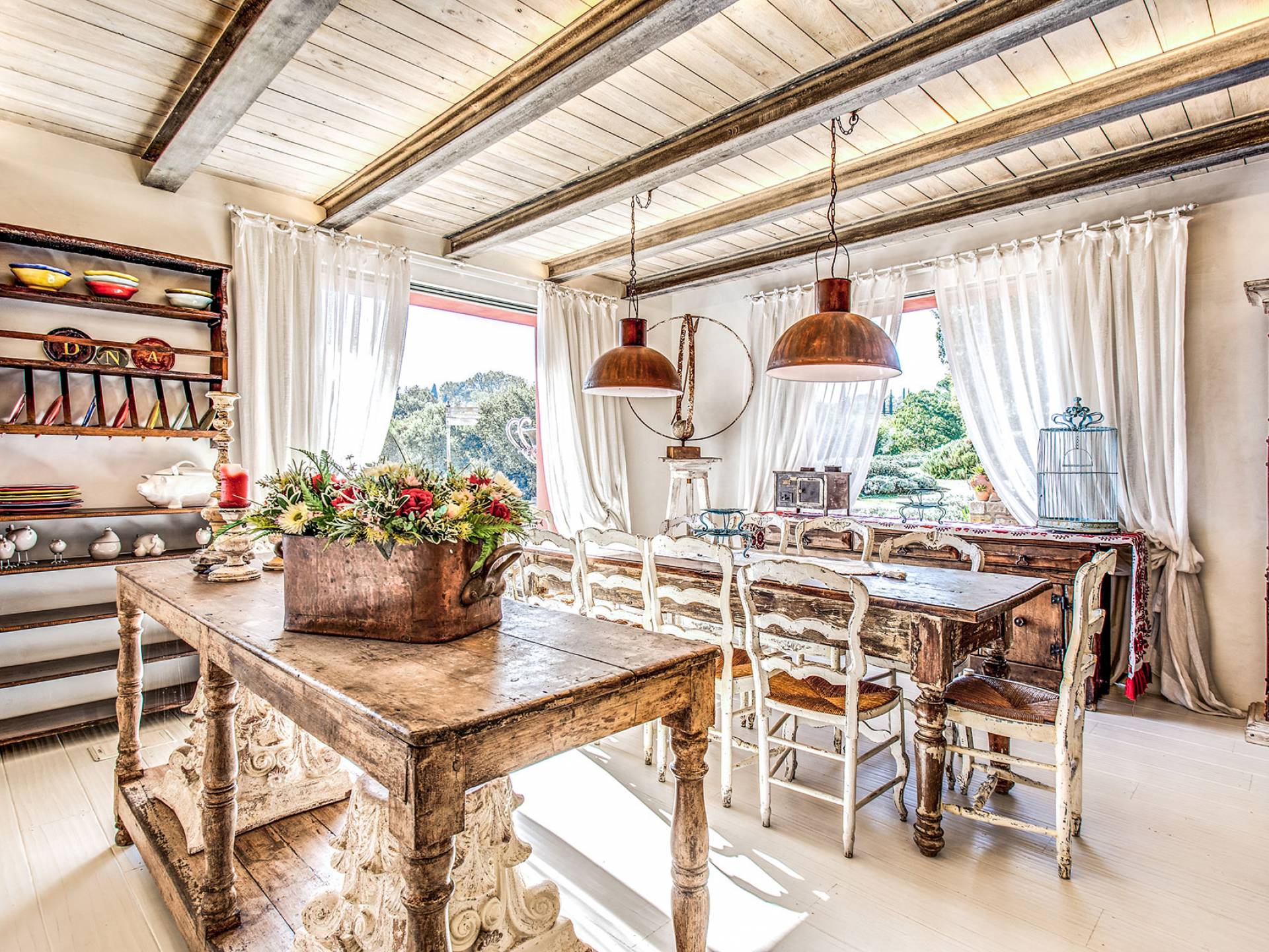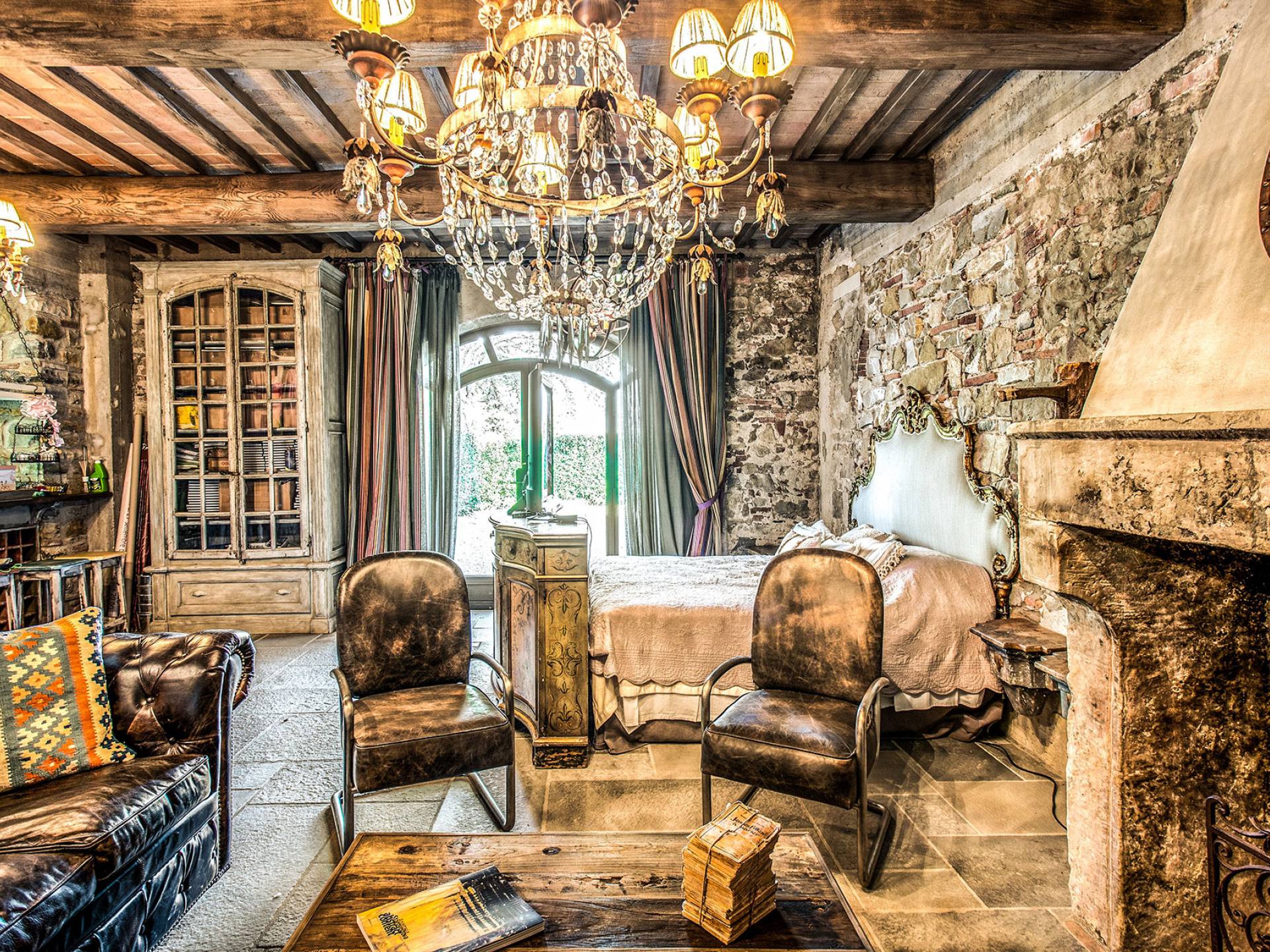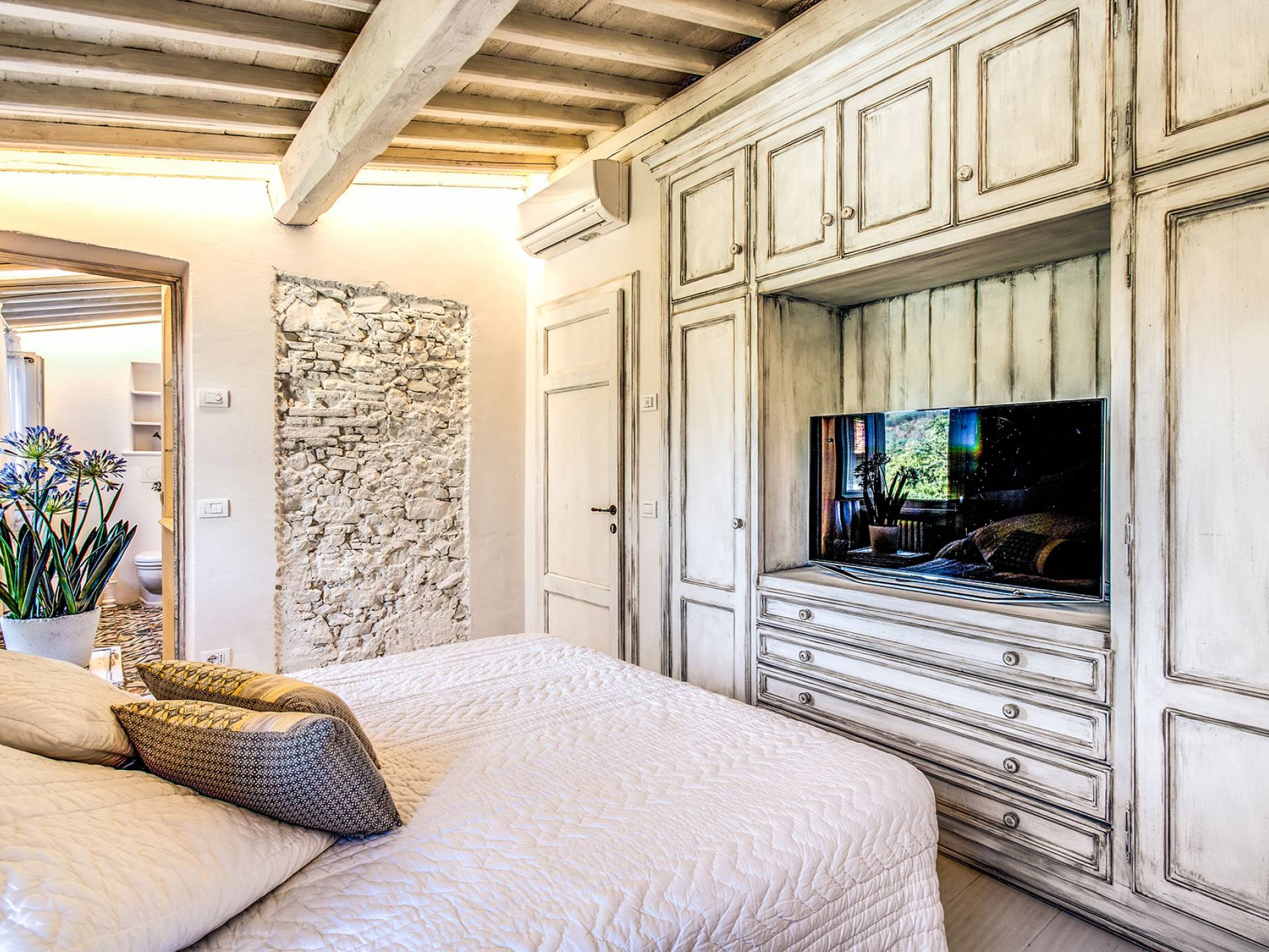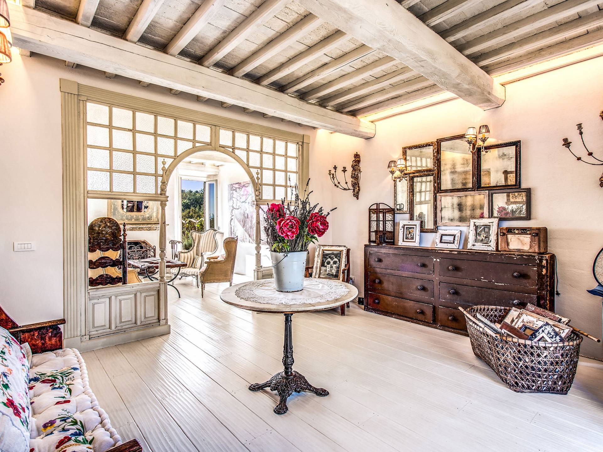 It is decorated in new-classic style with washed walls in pale shades, pietra serena and Italian wood. Countrymodern, the bohemian aesthetic of the property reflects its light and welcoming vibe: fresh and vintage, it oozes tranquillity and a home-like feeling which was exactly the intention of the owners, a couple of young artists and entrepreneurs dividing their time between Lucca, Forte dei Marmi, Ibiza and Geneva. The style encompasses traditional elements brought into the now with updated add-on’s for today’s lifestyles, offering a tennis court, a soccer field, a helipad, a pizza woodenoven and a security system with controlled circuit. Environmentally friendly and ecorestored, it also features a twenty metres heated swimming pool with view on the estate vineyards.