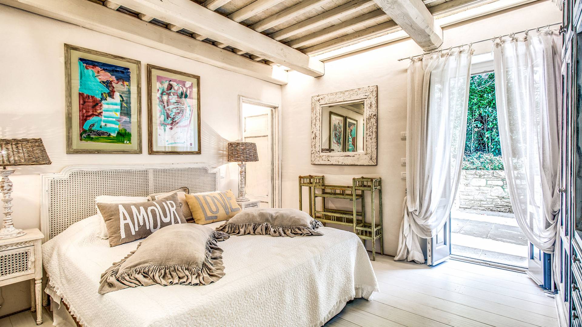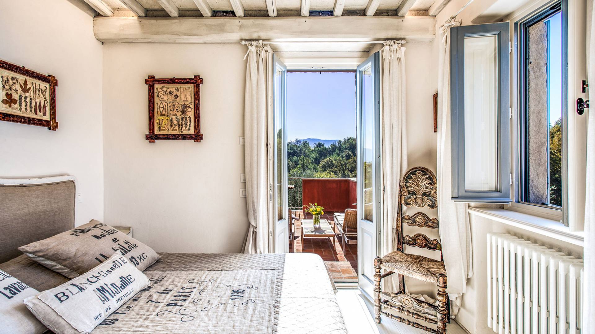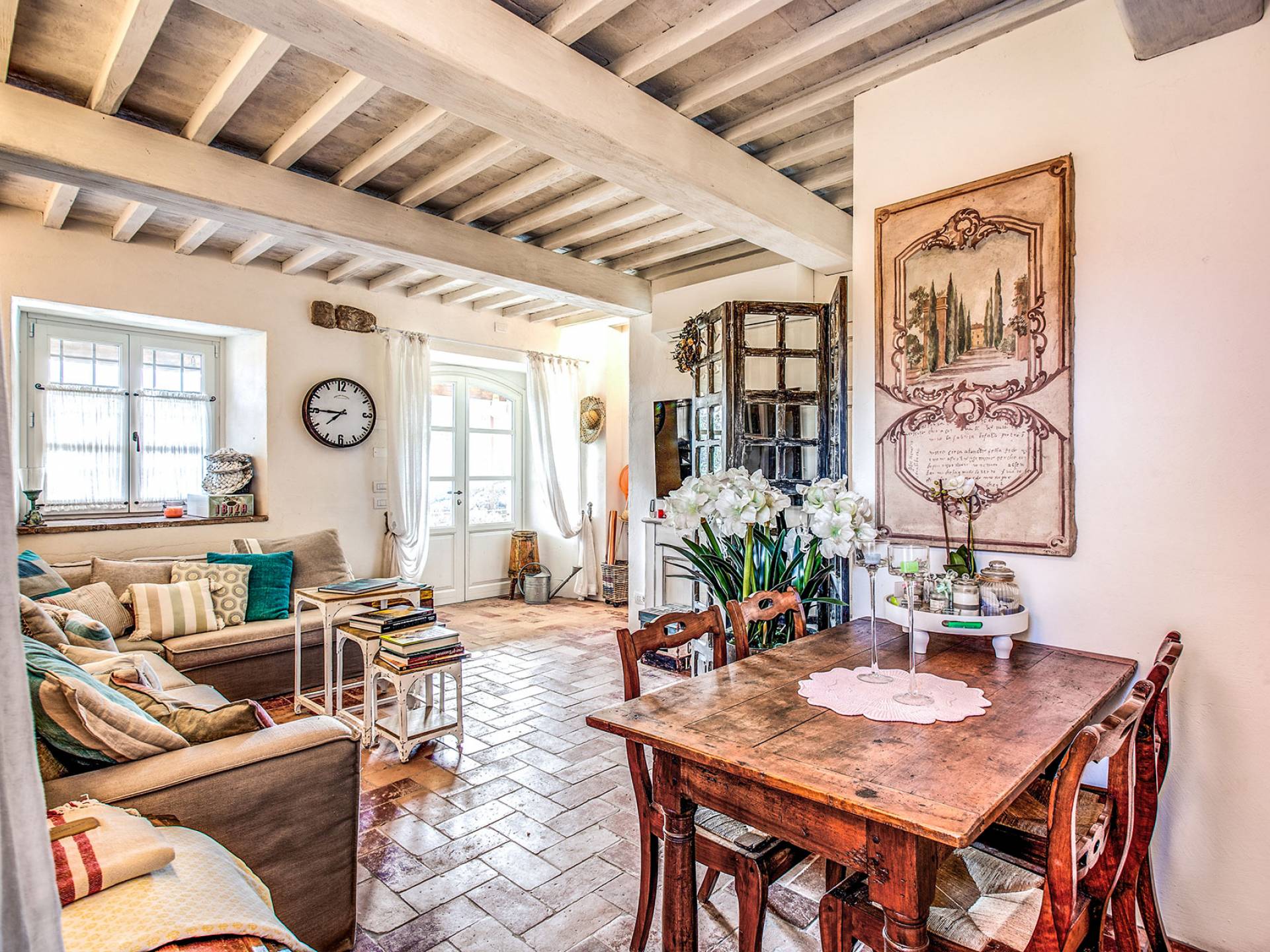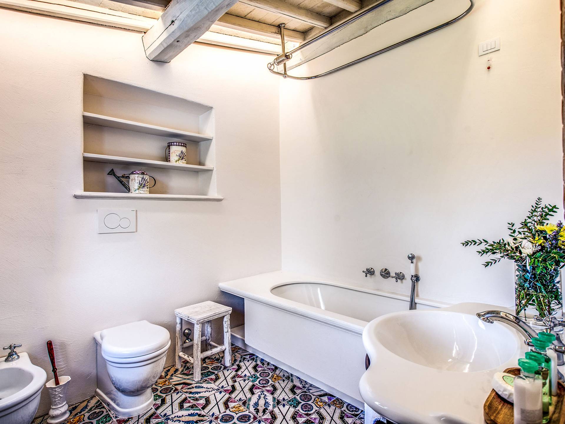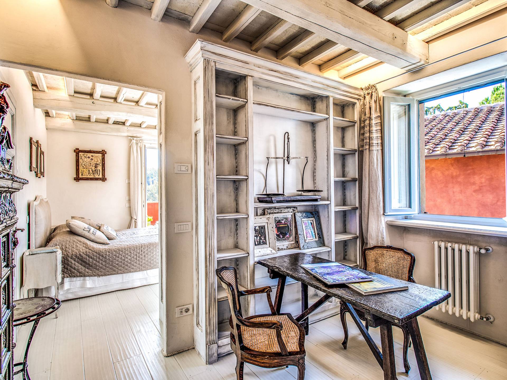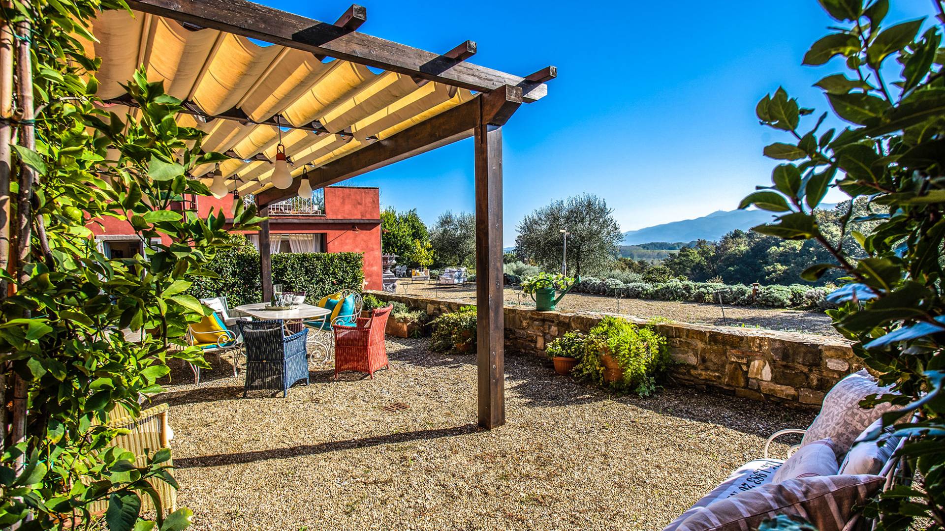 It is decorated in new-classic style with washed walls in pale shades, pietra serena and Italian wood. Countrymodern, the bohemian aesthetic of the property reflects its light and welcoming vibe: fresh and vintage, it oozes tranquillity and a home-like feeling which was exactly the intention of the owners, a couple of young artists and entrepreneurs dividing their time between Lucca, Forte dei Marmi, Ibiza and Geneva. The style encompasses traditional elements brought into the now with updated add-on’s for today’s lifestyles, offering a tennis court, a soccer field, a helipad, a pizza woodenoven and a security system with controlled circuit. Environmentally friendly and ecorestored, it also features a twenty metres heated swimming pool with view on the estate vineyards.