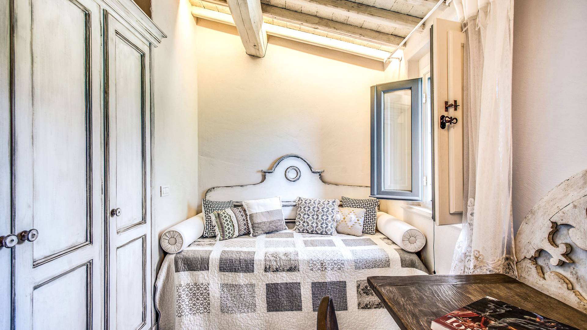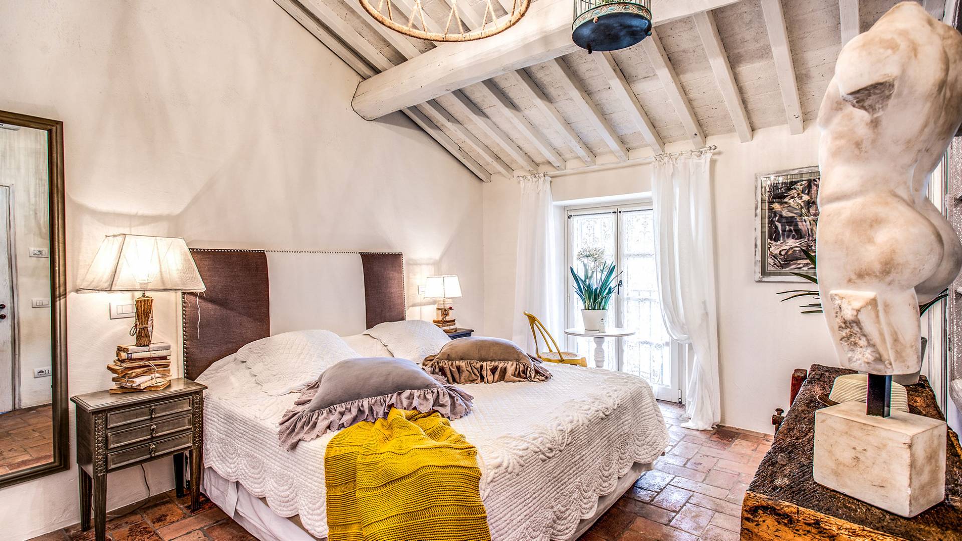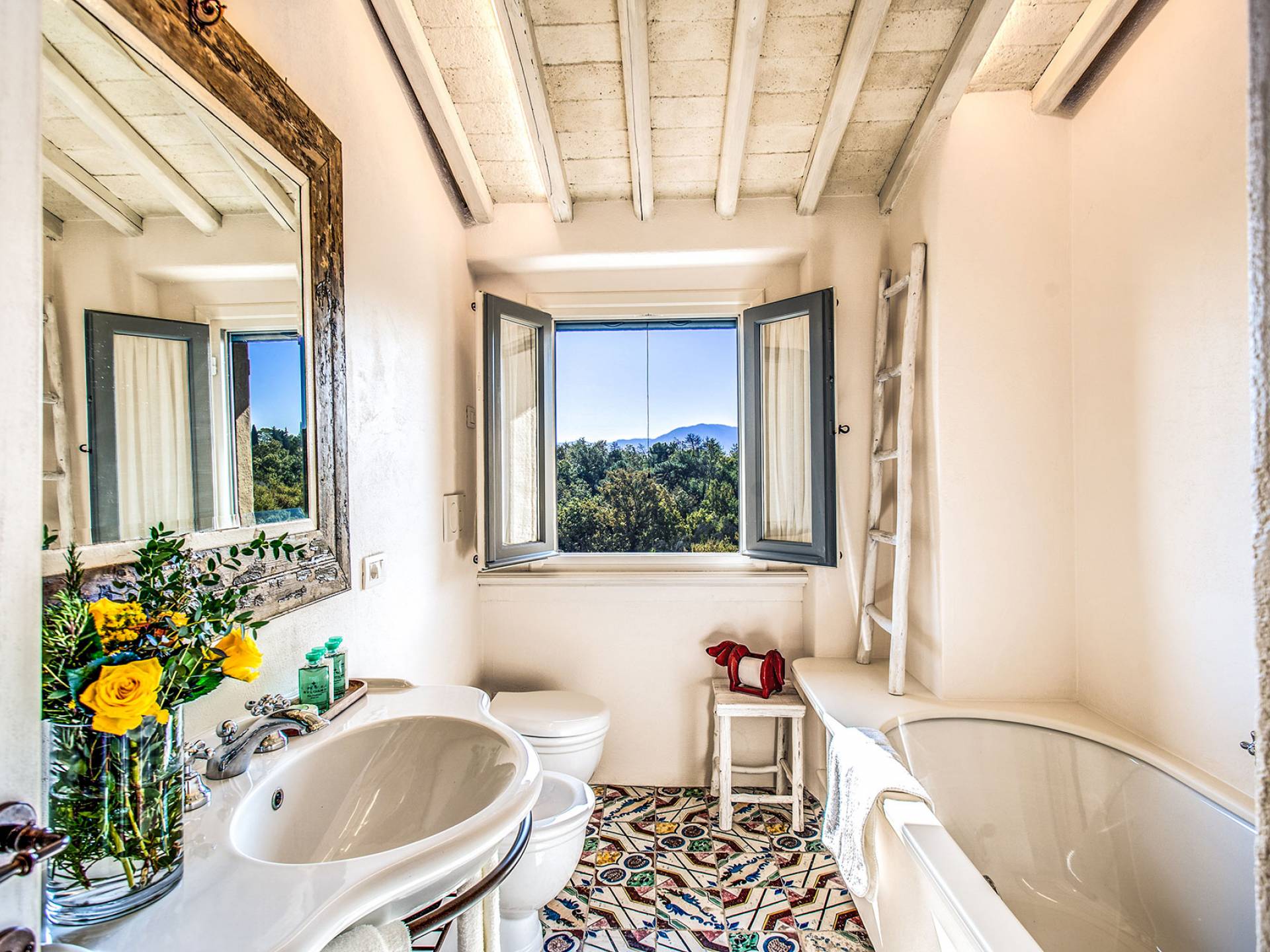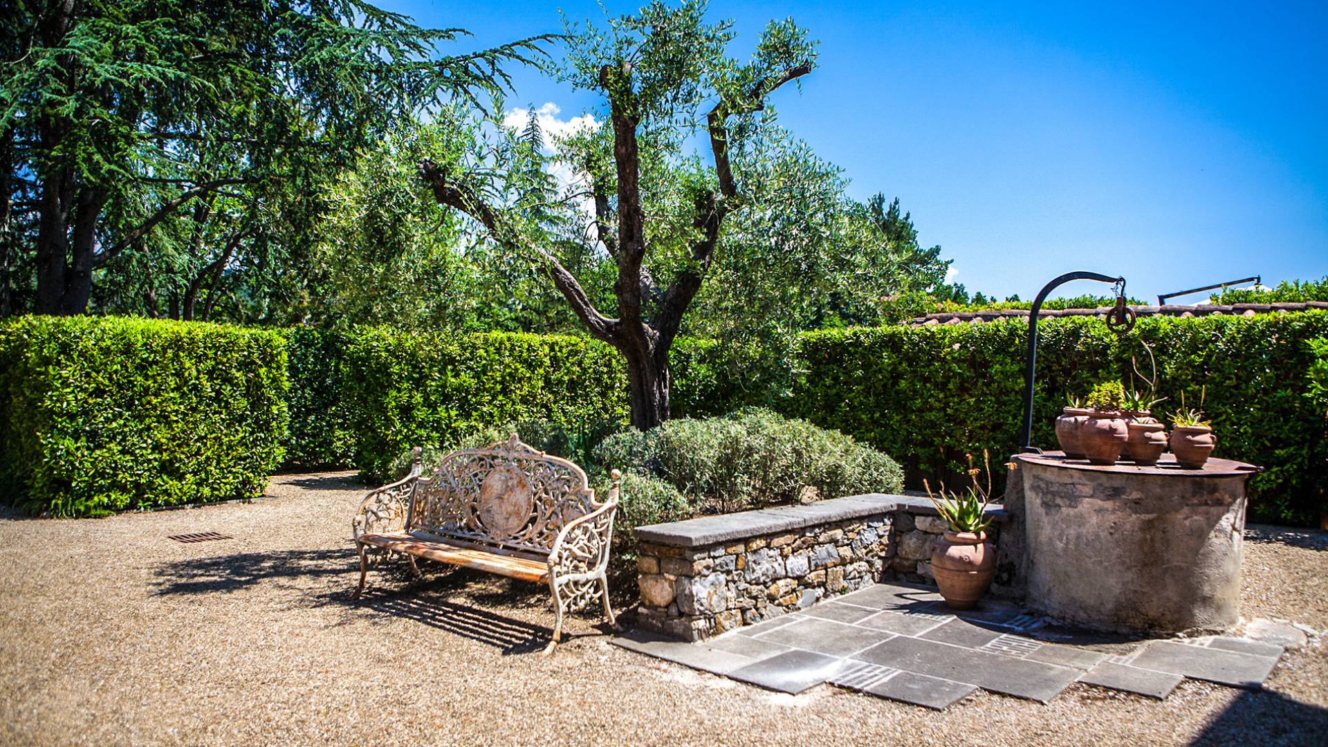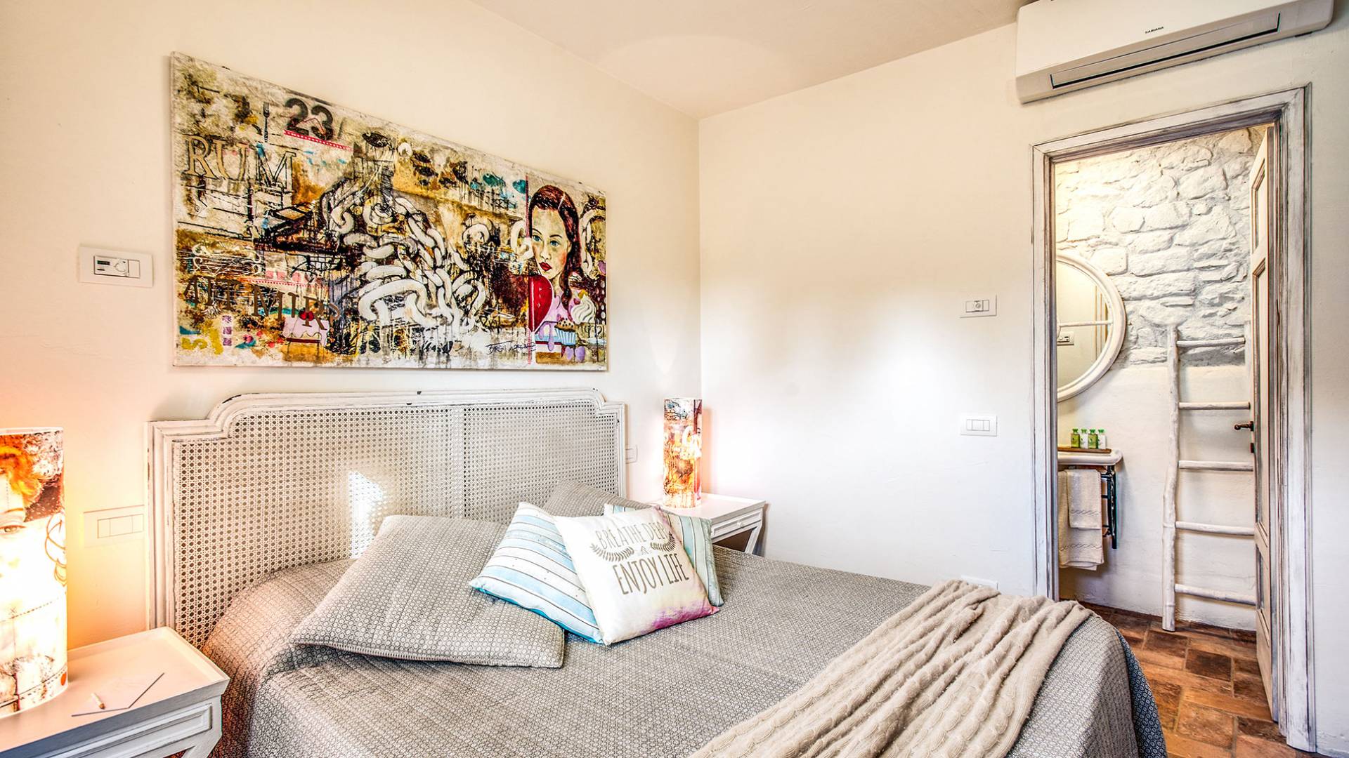 It is decorated in new-classic style with washed walls in pale shades, pietra serena and Italian wood. Countrymodern, the bohemian aesthetic of the property reflects its light and welcoming vibe: fresh and vintage, it oozes tranquillity and a home-like feeling which was exactly the intention of the owners, a couple of young artists and entrepreneurs dividing their time between Lucca, Forte dei Marmi, Ibiza and Geneva. The style encompasses traditional elements brought into the now with updated add-on’s for today’s lifestyles, offering a tennis court, a soccer field, a helipad, a pizza woodenoven and a security system with controlled circuit. Environmentally friendly and ecorestored, it also features a twenty metres heated swimming pool with view on the estate vineyards.