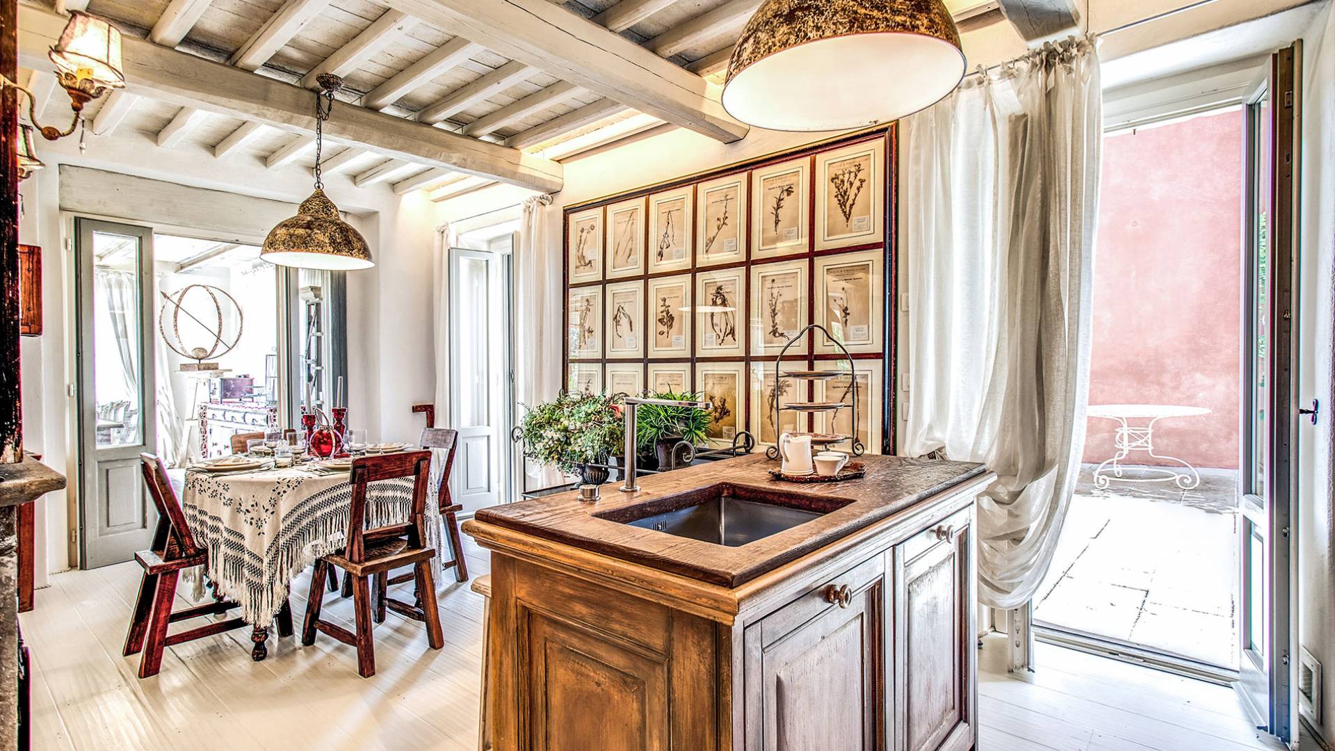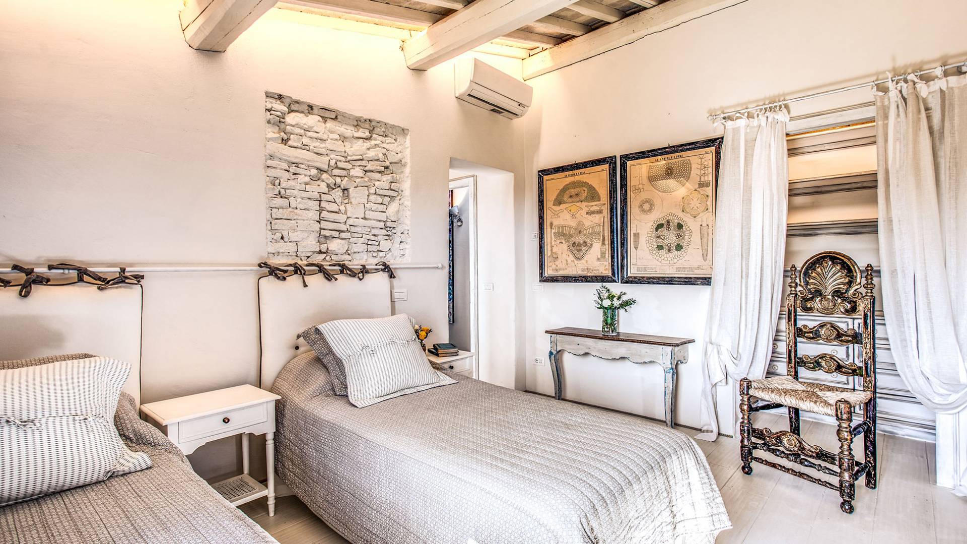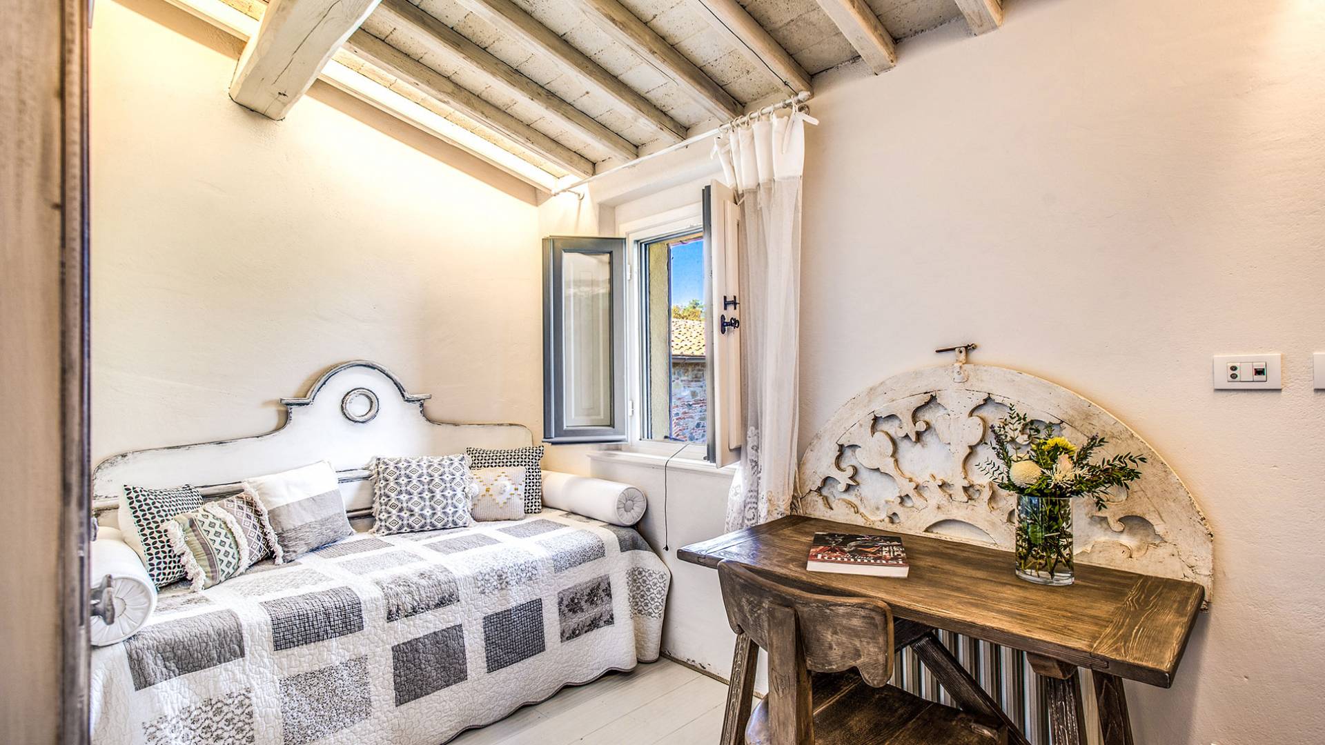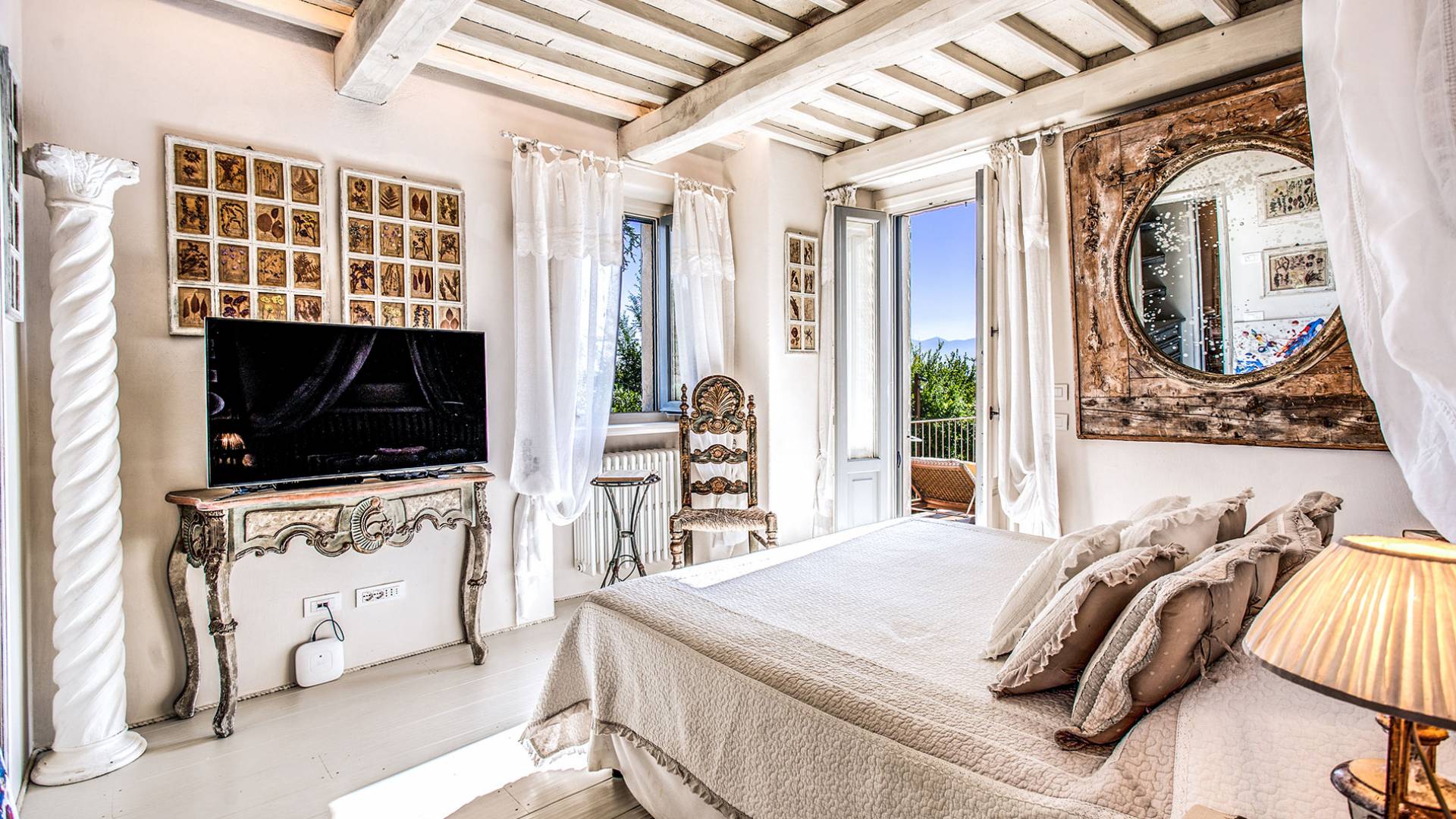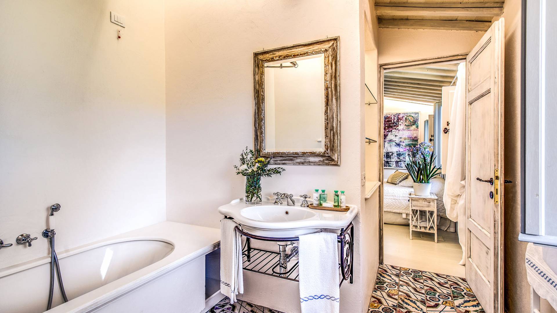 It is decorated in new-classic style with washed walls in pale shades, pietra serena and Italian wood. Countrymodern, the bohemian aesthetic of the property reflects its light and welcoming vibe: fresh and vintage, it oozes tranquillity and a home-like feeling which was exactly the intention of the owners, a couple of young artists and entrepreneurs dividing their time between Lucca, Forte dei Marmi, Ibiza and Geneva. The style encompasses traditional elements brought into the now with updated add-on’s for today’s lifestyles, offering a tennis court, a soccer field, a helipad, a pizza woodenoven and a security system with controlled circuit. Environmentally friendly and ecorestored, it also features a twenty metres heated swimming pool with view on the estate vineyards.